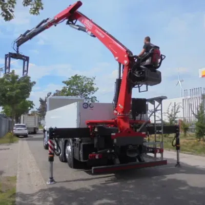 General information New: Yes Year of construction: 2026 Reference number: 6294 Drivetrain AdBlue system: Yes Axle configuration Front axle: Steering Rear axle 1: Double wheels Rear axle 2: Lift axle; Steering Weights Empty weight: 16.600 kg GVW: 26.000 kg Functional Mast: telescopic (3 parts) Crane: Yes Make of bodywork: FASSI F240 RS XP CE mark: yes Condition General condition: very good Technical condition: very good Visual appearance: very good = Dealer information = WWW.DENOTTERTRUCKS.COM