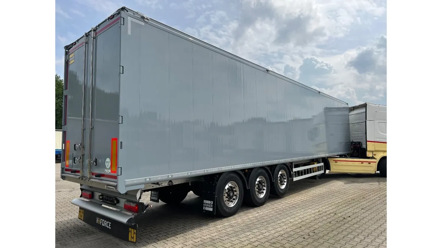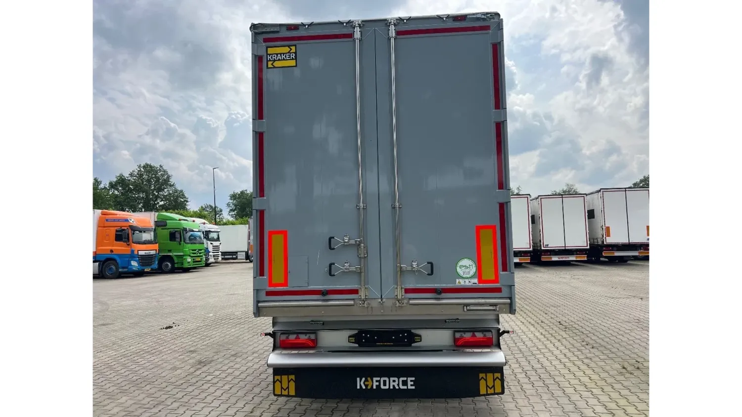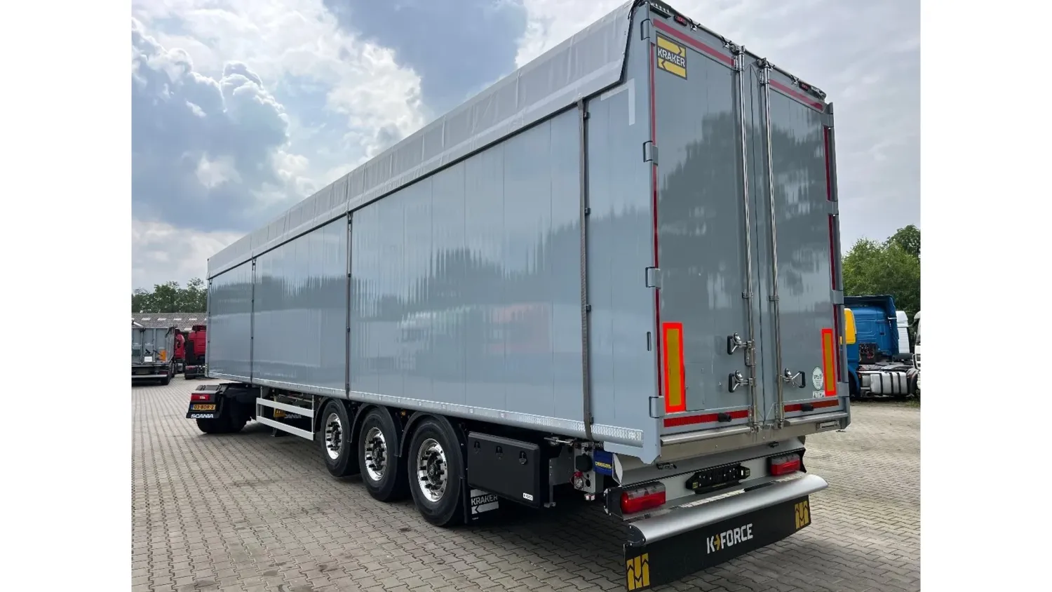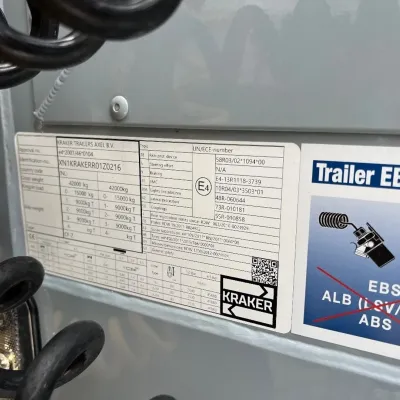 General information Year of construction: 2026 Reference number: Nieuw23 Axle configuration Tyre size: 385/65R22,5 Make axles: BPW HD Rear axle 1: Max. axle load: 9000 kg; Tyre profile left: 100%; Tyre profile right: 100% Rear axle 2: Max. axle load: 9000 kg; Tyre profile left: 100%; Tyre profile right: 100% Rear axle 3: Max. axle load: 9000 kg; Tyre profile left: 100%; Tyre profile right: 100% Weights Empty weight: 7.510 kg GVW: 42.000 kg Functional Cargo space capacity: 92.000 l Maintenance APK (MOT): New APK (MOT) upon delivery Condition General condition: very good Technical condition: very good Visual appearance: very good Additional information Please contact Witek Kempa (+31651223758, info@hesselink-trucks.nl) for more information Nieuw - Direct leverbaar! Kraker K-Force - 92m3 - BPW 9 ton HD schijfrem assen - RAL 7001 Grijs + zilvergrijs zeil - 10MM Cargo Floor - Liftas op AS 1 - Asontlasting op AS 3 - Gereedschapskist - Bezem/gereedschap houder bestuurderszijde - Bovenbalk opendraaibaar t.b.v. stro laden - LED achterlichten - 4x LED werklampen - Bedienbox t.b.v. luchtvering met aslastweging