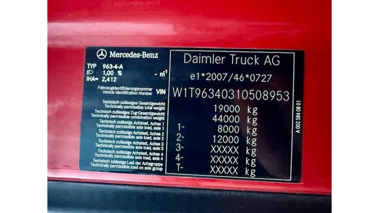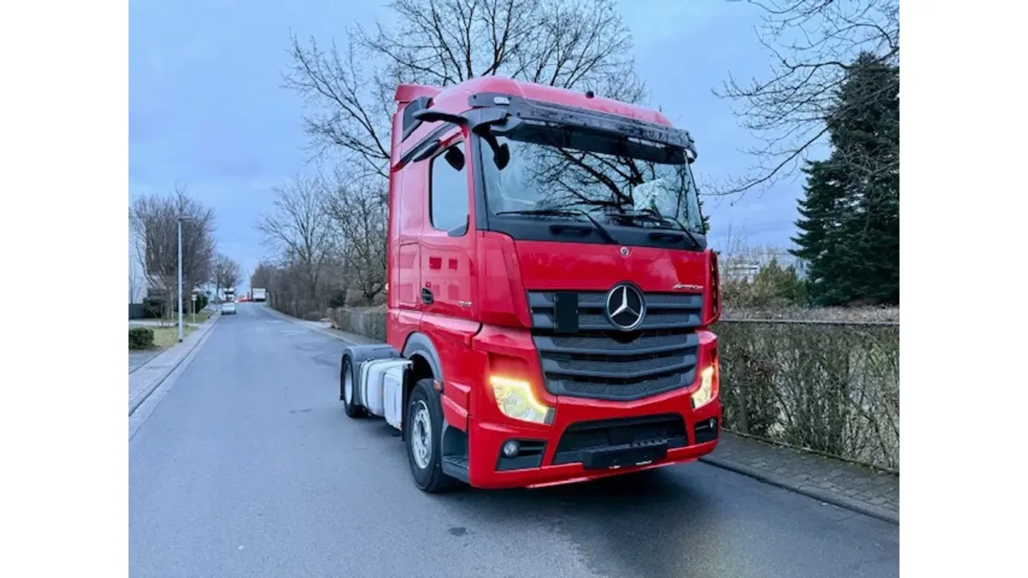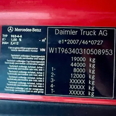 General information Bodywork: Standard tractor Year of construction: 2021 Reference number: 1845 Technical information AdBlue system: Yes Front axle: Steering Empty weight: 8.290 kg GVW: 19.000 kg Maintenance APK (MOT): tested until 03/2026 Condition General condition: good Technical condition: good Visual appearance: good Fahrzeugnummer: Mercedes Benz Actros 5 / 1845 StreamSpace / 2 x Tank / Eu6d Fgst.Nr.: W1T96340310508953 Federung: Blatt / Luft Getriebe: Automatik Klima Motorbremse Tempomat Standheizung Abstandshalte-Assistent Spurhalte-Assistent Abgasnorm EURO 6d Sonderausstattung: Achslast Vorderachse 8,0 t, Alarmanlage, Anhänger Elektro und Bremsanschluss hoch, Anhängersteckdose 15-polig 7+7-polig, Arbeitsscheinwerfer, Audiosystem: Digitalradio DAB / DAB+, Ausstattungs-Paket: Klima, Ausstattungs-Paket: Media, Ausstattungs-Paket: Safety, Drucklufthorn, Fahrerhaus: mit Luftfederung, Federung: Vorderfedern 8,0 t, 2 Blatt, Getriebe 12-Gang - Typ: G 211-12, Integralheck, Komfortliege oben, schmal, Kotflügel 3-teilig, Kraftstofftank: Kombitank Alu - 820 Ltr. Diesel + 90 Ltr. Harnstofflösung (AdBlue), Kraftstofftank: Zusatztank 360 Ltr. Aluminium, rechts, Kühlbox / Kühlschrank, Luftleitkörper Dach (rastbar) und seitlich, Montageplatte / Sattelplatte 12 mm für Sattelkupplung, Motorbremse verstärkt, Rahmenhöhe 25 mm abgesenkt, Rahmenüberhang 1050 mm, Raucher-Paket, Reserverad, Rückfahrwarner akustisch (Warnsignal außen), Sattelkupplung und Platte wartungsarm, Schlüssel zusätzlich (2), Schnittstelle Flottenmanagement-System, Schubladen unter Brüstung, Sitzbezug / Polsterung: Beifahrersitz Velours, Sitzbezug / Polsterung: Fahrersitz Velours, Sitze im Fahrerhaus: Fahrersitz Schwingsitz Komfort, Sonnenblende außen, Stahlfelgen 11.75x22.5 (an Vorderachse), Stauklappe außen links, Steckdose 12V / 15 A im Beifahrerfussraum zusätzlich, Steckdose Fahrerhaus 24V, Vorhang Schlafkabine Weitere Ausstattung: Abgasnorm EURO 6, Ablage über Frontscheibe mit Deckel, Achskonfiguration: 4x2, Actros 5, Actros Fahrerhaus L, Anfahr-/Frontspiegel beheizt, Anhängersteckdose 24V / 15-polig, Aufstieg an Fahrerhaus links, Auspuff nach rechts außen, Ausstattungs-Paket: Powertrain 2, Außenspiegelkamera MirrorCam, Batterien nebeneinander angeordnet, Differentialsperre Hinterachse, Drehmomenterhöhung 12. Gang, Druckluftanschluss im Fahrerhaus, Druckluftbehälter Stahl, Drucklufteinheit mit Kondenswasserüberwachung, Drucklufteinheit mittel, Einschaltautomatik für Fahrlicht (Lichtsensor), Fahrassistenz-System: Attention-Assist (Müdigkeitserkennungs-Sensor), Fahrassistenz-System: Autonomer Notbrems-Assistent (Active Brake-Assist 5), Fahrassistenz-System: Spurhalteassistent, Fahrerhaus: Fahrerhauseinstieg starr, Fahrerhaus: Interieur-Paket Chrom, Fahrerhaus: Kippeinrichtung hydraulisch, Fahrerhaus: L StreamSpace, 2,50 m, Boden eben, Fahrzeug-Umrissleuchten LED, Federung: Blatt / Luft, Fensterheber elektrisch, Fzg. ohne Rückwandfenster, Generator 100 A, geregelt, Geschwindigkeits-Begrenzeranlage, Hinterachse mit aktiver Schmierung, ungeregelt, Hinterachse Tellerrad 440, Karosserie/Aufbau: Sattelzugmaschine, Komfortliege unten, Komfortschließanlage, Lenkhelfpumpe elektronisch geregelt, Lenkrad mit Multifunktion, Luftansaugung hinter Fahrerhaus, Luftpresser 2-stufig, Lufttrockner
