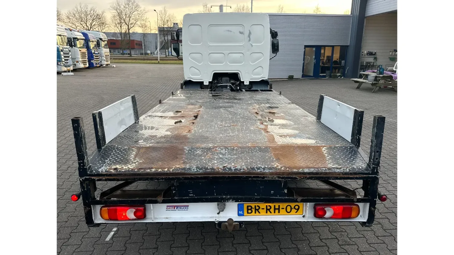 General information Year of construction: 2006 Cab: day Reference number: BR-RH-09 Registration number: BR-RH-09 Technical information Number of cylinders: 6 Axle configuration Tyre size: 235/75 R17.5 Front axle: Max. axle load: 4000 kg; Steering; Tyre profile left: 90%; Tyre profile right: 90% Rear axle: Double wheels; Max. axle load: 7200 kg; Tyre profile left inner: 70%; Tyre profile left outer: 70%; Tyre profile right outer: 70%; Tyre profile right outer: 70% Measures and weights Empty weight: 4.660 kg GVW: 10.000 kg Wheelbase: 355 cm Condition General condition: good Technical condition: good Visual appearance: good Additional information Please contact Dave Dorssers (+31611825518, dave@gasttrucks.com), Mike Broere (+31622221710, mike@gasttrucks.com) or Laurens Reiniers (+31646755610, laurens@gasttrucks.com) for more information