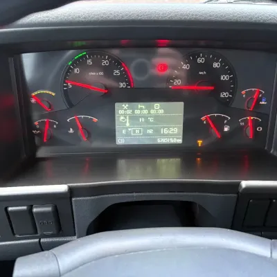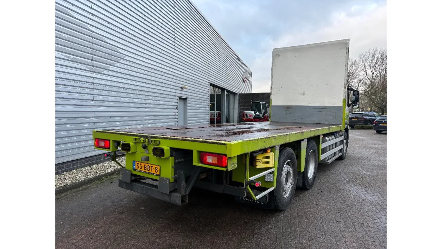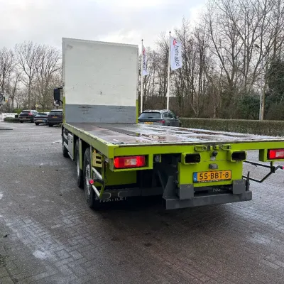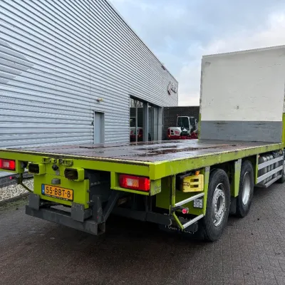 General information Year of construction: 2013 Cab: day Registration number: 55-BBT-8 Technical information Number of cylinders: 6 Axle configuration Brakes: disc brakes Front axle: Max. axle load: 8500 kg; Steering; Tyre profile left: 20%; Tyre profile right: 20% Rear axle 1: Double wheels; Max. axle load: 11500 kg; Tyre profile left inner: 15%; Tyre profile left outer: 15%; Tyre profile right outer: 15%; Tyre profile right outer: 15% Rear axle 2: Lift axle; Max. axle load: 7500 kg; Tyre profile left: 20%; Tyre profile right: 20% Measures and weights Empty weight: 10.560 kg GVW: 27.500 kg Wheelbase: 567 cm Functional Dimensions of cargo space: 725 x 255 cm Additional information Please contact Marnix kaan (+31653817873, mk@matrux.nl) for more information