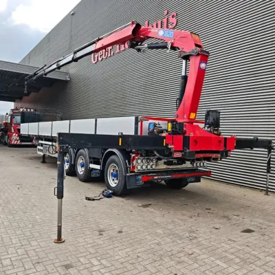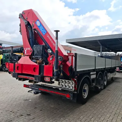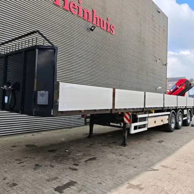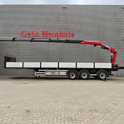Bodywork: Open body Year of construction: 2016 Empty weight: 9.140 kg GVW: 45.000 kg Reference number: 636 Konar JG10. Year: 2016. 9 tons BPW axles. Weight: 9140 kg. Load capacity: 35.860 kg. Max weight: 45.000 kg. Kingpin load: 18.000 kg. 3th axle steering axle. Airsuspension. RVS toolboxes. EBS. Tyres: 385/65R22,5 80%. Dimmensions floor: L: 12.700 mm. W: 2500 mm. H: 1450 mm. H: Allu boards: 600 mm. Kingpin height: 1250-1300 mm. Demontable Crane: HMF 1820-K5. Year: 2016. 5 x Hydr. extandable. 2 point outriggers. Radio Remote Control. Works on stationary engine. ID NR: 636. The General Terms and Conditions of Heinhuis are applicable to all adverts, offers and quotations by Heinhuis, all agreements entered into by Heinhuis and the negotiations preceding them. By any form of response you accept the applicability of the General Terms and Conditions of Heinhuis and you declare that you have taken note of these General Terms and Conditions. Our prices are export netto prices.