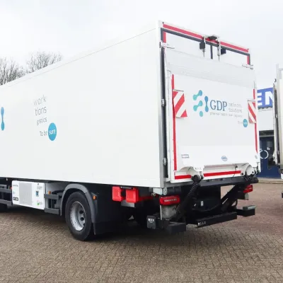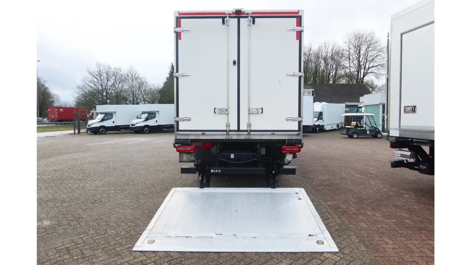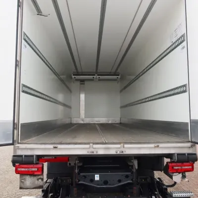 General information Year of construction: 2021 Cab: day Reference number: BD-853-D Registration number: BD-853-D Technical information Number of cylinders: 6 Front axle: Steering; Tyre profile left: 100%; Tyre profile right: 100%; Suspension: leaf suspension Rear axle: Double wheels; Tyre profile left inner: 70%; Tyre profile left outer: 70%; Tyre profile right outer: 70%; Tyre profile right outer: 70%; Suspension: air suspension Measures and weights Empty weight: 9.760 kg GVW: 18.000 kg Wheelbase: 545 cm Functional Dimensions of cargo space: 735 x 249 x 230 cm Tail lift: BAR, tail lift, 2000 kg Cooling engine: diesel and electric Maintenance APK (MOT): tested until 05/2026 Other information Cool unit make: Thermo King Cargo space outer length: 735 cm Cargo space outer width: 249 cm Cargo space outer height: 230 cm 2 x on stock Cool unit brand: Thermo King