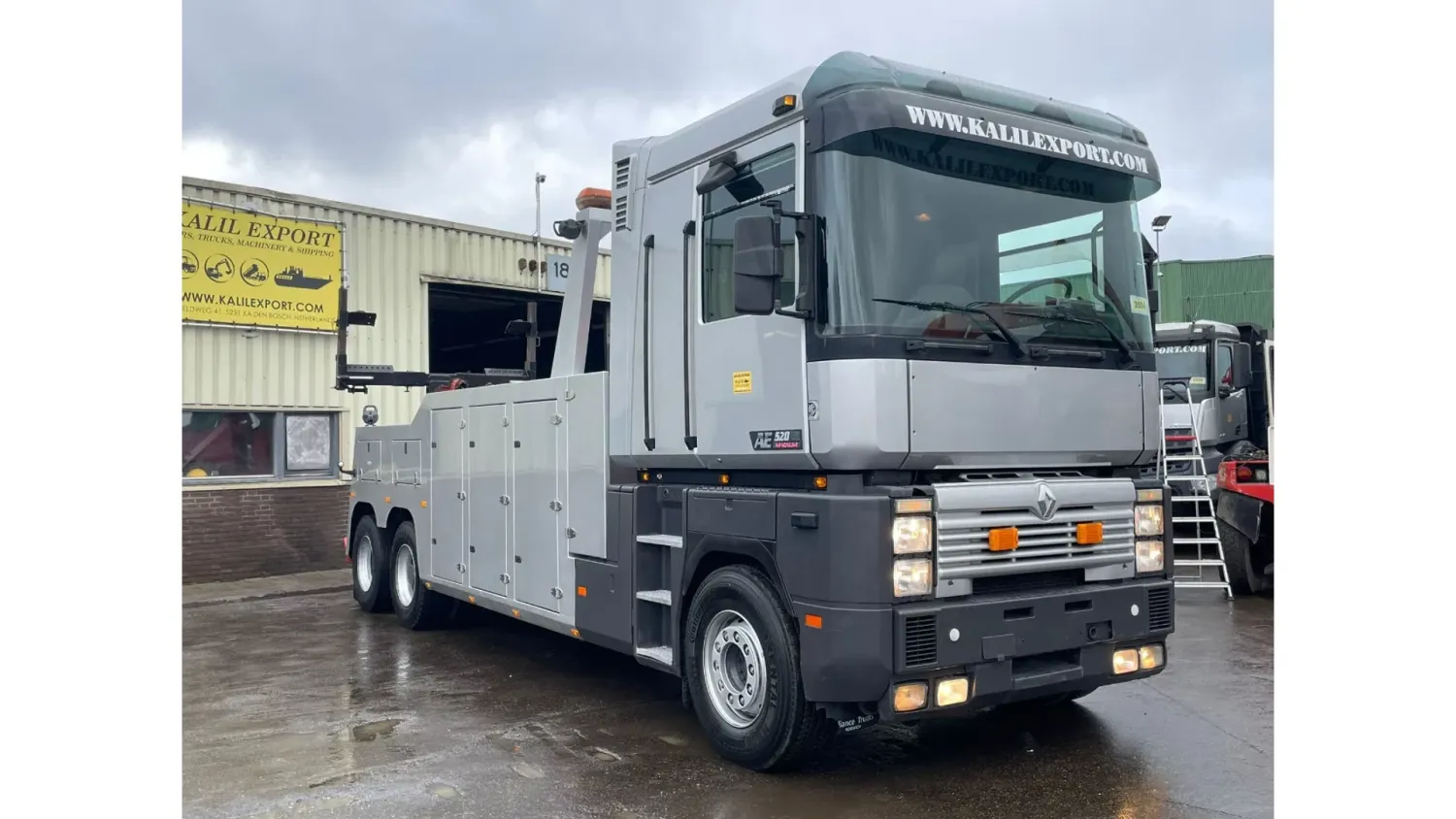General information Year of construction: 1994 Reference number: 2554 Technical information Number of cylinders: 6 Axle configuration Front axle: Steering Rear axle 1: Double wheels Rear axle 2: Double wheels Condition General condition: good Technical condition: good Visual appearance: good Additional information Please contact Sales Department (+31682062695, sales@kalilexport.com) for more information Renault Magnum 520 6x2 Tow Truck 2x Winch 520 HP Engine Manuel Gearbox Sleeping Cab 2 Beds Airconditioning Good Running Truck German Truck We can ship this truck to all destinations FOR MORE INFO: WWW.KALILEXPORT.COM Sales Department: 00 31 6 82 06 26 95