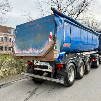 Year of construction: 2015 Empty weight: 6.400 kg GVW: 39.000 kg Tipper: Back APK (MOT): tested until 08/2026 General condition: good Technical condition: good Visual appearance: good Reference number: Auflieger - Kipper.: 35 Fahrzeugnummer: Auflieger - Kipper.: 35 Langendorf SKS-HS 24/30 Thermo-Stahl-Wanne Hardox / Liftachse / PBW / 26 m³ Fgst.Nr.: WLASKS339FWF65460 F.1 Technisch Zulässige gesamtmasse in kg: 39.000 G Leergewicht:. 6400 Kg Liftachse Stahl PBW 26 m³