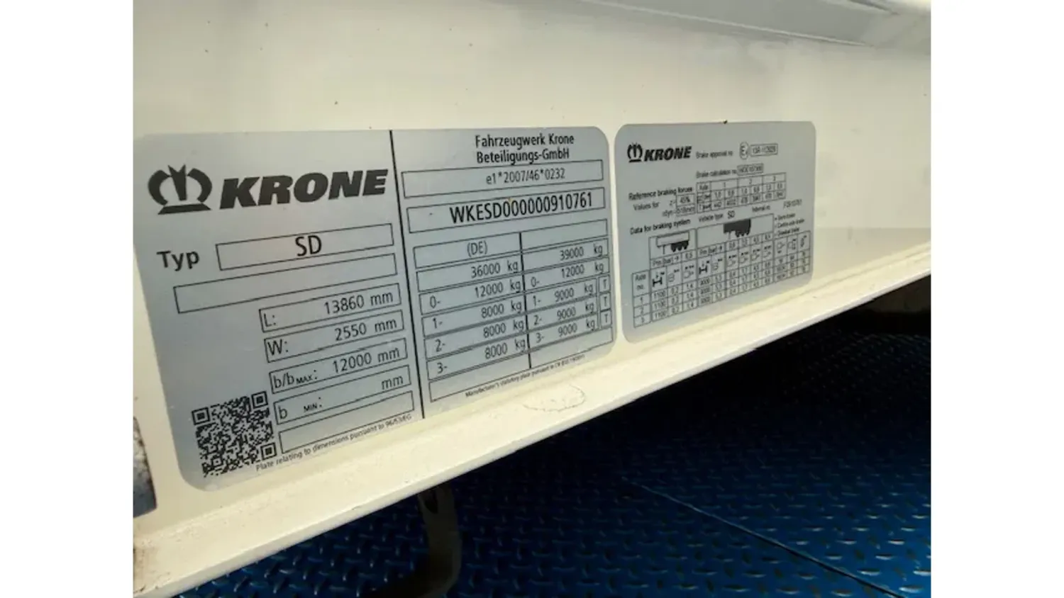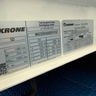 Year of construction: 2019 Empty weight: 6.780 kg GVW: 39.000 kg APK (MOT): tested until 09/2026 General condition: good Technical condition: good Visual appearance: good Reference number: Auflieger. 49 Fahrzeugnummer: Auflieger. 49 Krone / Edscha / 3 x Achsen / Liftachse Fgst.Nr.: WKESD000000910761 Edscha Scheibenbremsen Leergewicht: 6780 Gesamtgewicht: 39000 Innenmaße Länge: Breite: Höhe: