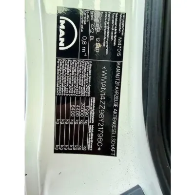 General information Bodywork: Open body Year of construction: 2008 Reference number: 41 Axle configuration Front axle: Steering; Suspension: leaf suspension Rear axle: Suspension: air suspension Weights Empty weight: 5.290 kg GVW: 11.990 kg Condition General condition: good Technical condition: good Visual appearance: good Additional information Please contact Emad Al Shogran (+49218282870, info@shogran-gmbh.de) for more information Fahrzeugnummer: 41 MAN TGL 12.240 / Pritsche / Klima / Eu4 Fgst.Nr.: WMAN14ZZ98Y217980 Federung: Blatt / Luft Getriebe: Schaltgetriebe Klima Motorbremse Abgasnorm EURO 4 Innenmaße: Länge: Breite: Höhe. Sonderausstattung: Abschlusstraverse, Anhängerkupplung: Ringfeder 2040 G 145 B, Anhängersteckdose ABS, Audiosystem: Radio MAN CD 24V, Außenspiegel Weitwinkel und elektr. verstell- und heizbar, links, Außenspiegel Weitwinkel und elektr. verstell- und heizbar, rechts, Batterie 140 Ah, Beifahrersitzbank, Bordsteinspiegel rechts elektr. verstell- und heizbar, Bremsanschluss 2 Leitung am Rahmenheck, Differentialsperre Hinterachse, Fahrtenschreiber inkl. Zusatz - + Drehzahlschreiber, Flammstartanlage, Frontscheibe getönt, Hebedach mechanisch, Kipphebel - Bremse EVB, Klimaautomatik, Lenkrad mit Multifunktion, Luftansaugung hochgezogen, Trockenluftfilter rechts unten, Luftzusatzheizung Eberspächer Airtronic D2, Sitzbezug / Polsterung: Komfortqualität, Türscheiben getönt Weitere Ausstattung: Achskonfiguration: 4x2, Bordrechner MAN-Tronic, Druckluftanschluss vorn, elektronisches Bremssystem MAN-Brakematic, EURO 4-Motor, Fahrerhaus: C (Compact), Federung: Blatt / Luft, Generator 28 V 80 A, Getriebe - Typ: Eaton 8309, Hinterachse HY-0925, Karosserie/Aufbau: Fahrgestell, Kraftstoff-Filter beheizt, Kraftstofftank: 150 Ltr., Lenksäule (Lenkrad) verstellbar, Motor 6,9 Ltr. - 176 kW Diesel, Motorbremse, Radstand 4850 mm, Reserveradhalter hinter Hinterachse, Scheibenbremse Hinterachse, Scheibenbremse Vorderachse, Stabilisator Hinterachse, Stoßfänger in Kunststoffausführung, Unterfahrschutz hinten, Unterfahrschutz vorn, Viscolüfter, Vorderachse VOK-05 gekröpft, Zul. Gesamtgewicht 11,99 t
