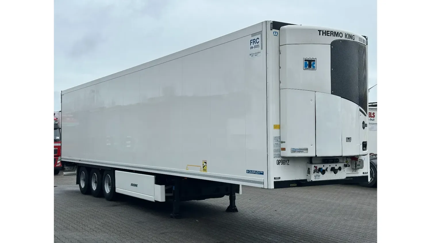 General information Year of construction: 2017 Reference number: 31715 Registration number: OP-98-YZ Axle configuration Tyre size: 385/65 R22.5 Make axles: BPW Brakes: drum brakes Rear axle 1: Max. axle load: 9000 kg Rear axle 2: Max. axle load: 9000 kg Rear axle 3: Max. axle load: 9000 kg Measures and weights Empty weight: 9.116 kg GVW: 41.000 kg Wheelbase: 919 cm Functional Dimensions of cargo space: 1329 x 250 x 265 cm Cooling: 29 °C to 27 °C Make of bodywork: THERMO KING SLXi Spectrum Cooling engine: diesel and electric (15914 operating hours diesel; 3057 electric) Maintenance APK (MOT): tested until 03/2026 Condition General condition: good Technical condition: good Visual appearance: good Damages: none Other information Cool unit make: Thermo King Additional information Please contact Dave Dorssers (+31611825518, dave@gasttrucks.com), Mike Broere (+31622221710, mike@gasttrucks.com) or Laurens Reiniers (+31646755610, laurens@gasttrucks.com) for more information Cool unit brand: Thermo King