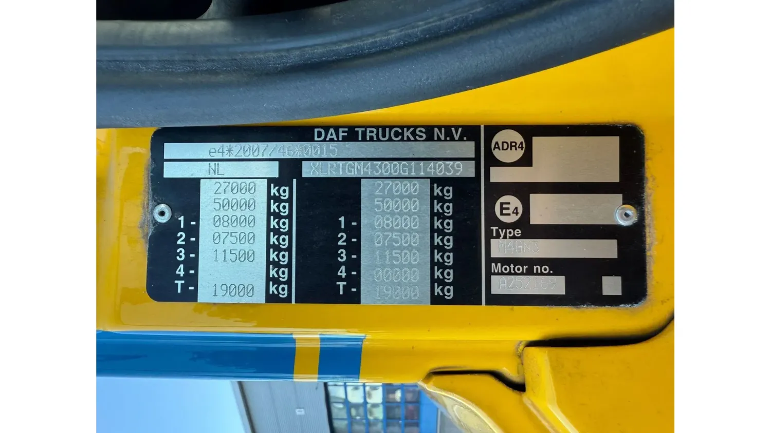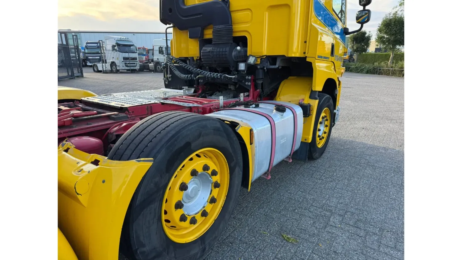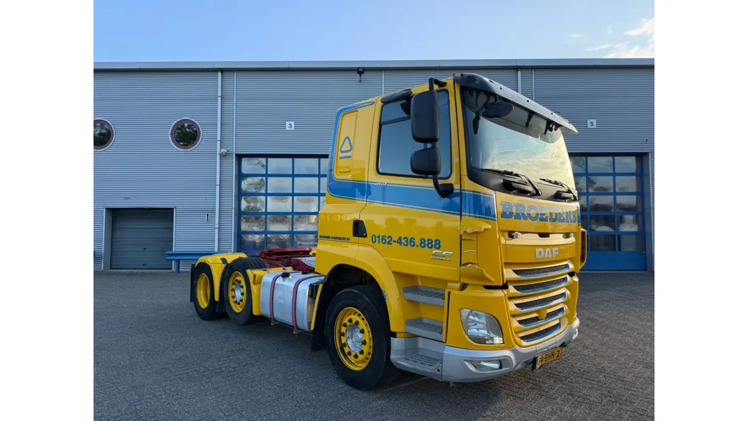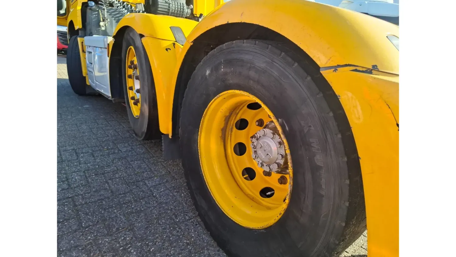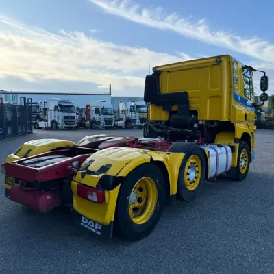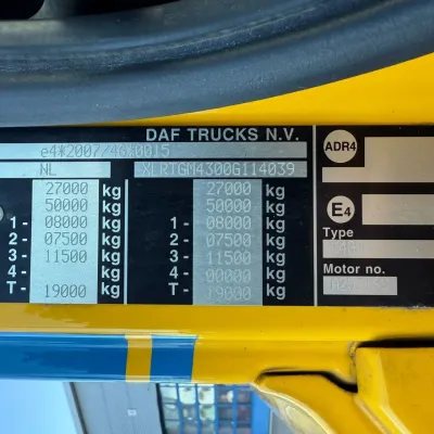 General information Bodywork: Standard tractor Year of construction: 2016 Reference number: T254903040 Registration number: 64-BHH-2 Technical information Number of cylinders: 6 Drivetrain AdBlue system: Yes Transmission Transmission: ZF12AS2330TD, Automatic Axle configuration Brakes: disc brakes Front axle: Tyre size: 385/55*R22.5; Max. axle load: 8000 kg; Steering; Tyre profile left: 20%; Tyre profile right: 20% Rear axle 1: Tyre size: 385/55*R22.5; Max. axle load: 7500 kg; Steering; Tyre profile left: 30%; Tyre profile right: 30% Rear axle 2: Tyre size: 315/70*R22.5; Double wheels; Differential lock; Max. axle load: 11500 kg; Tyre profile left inner: 10%; Tyre profile left outer: 10%; Tyre profile right outer: 10%; Tyre profile right outer: 10% Measures and weights Empty weight: 8.561 kg GVW: 27.000 kg Wheelbase: 395 cm Condition General condition: good Technical condition: good Visual appearance: good Damages: none https://youtu.be/dBxWkIEPTWw?si=YJ6IP6KeMRSdnIeq TRUCK HAS LIGHT DAMAGE, SEE PHOTO'S