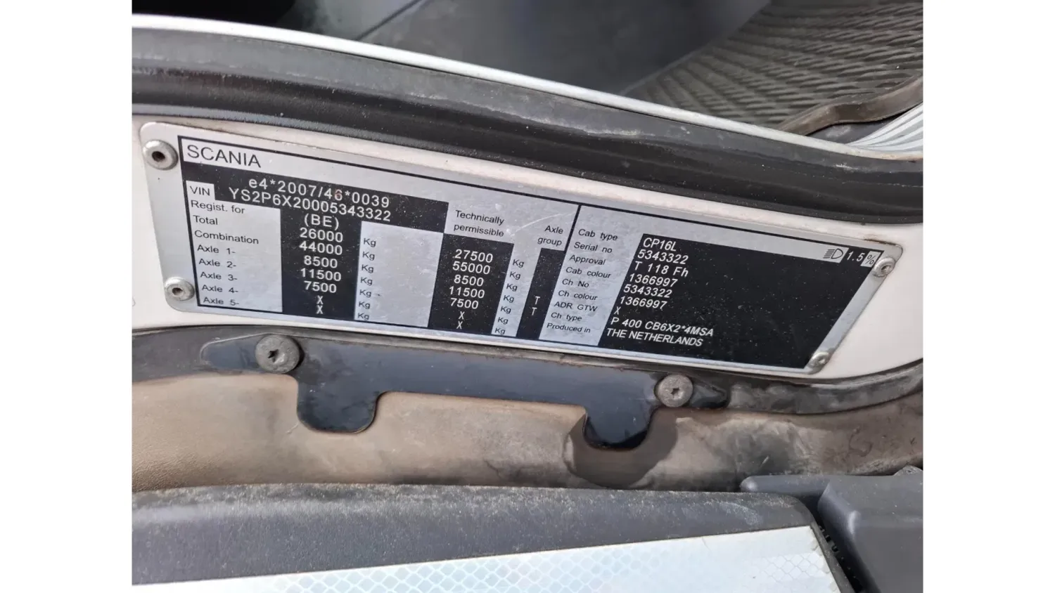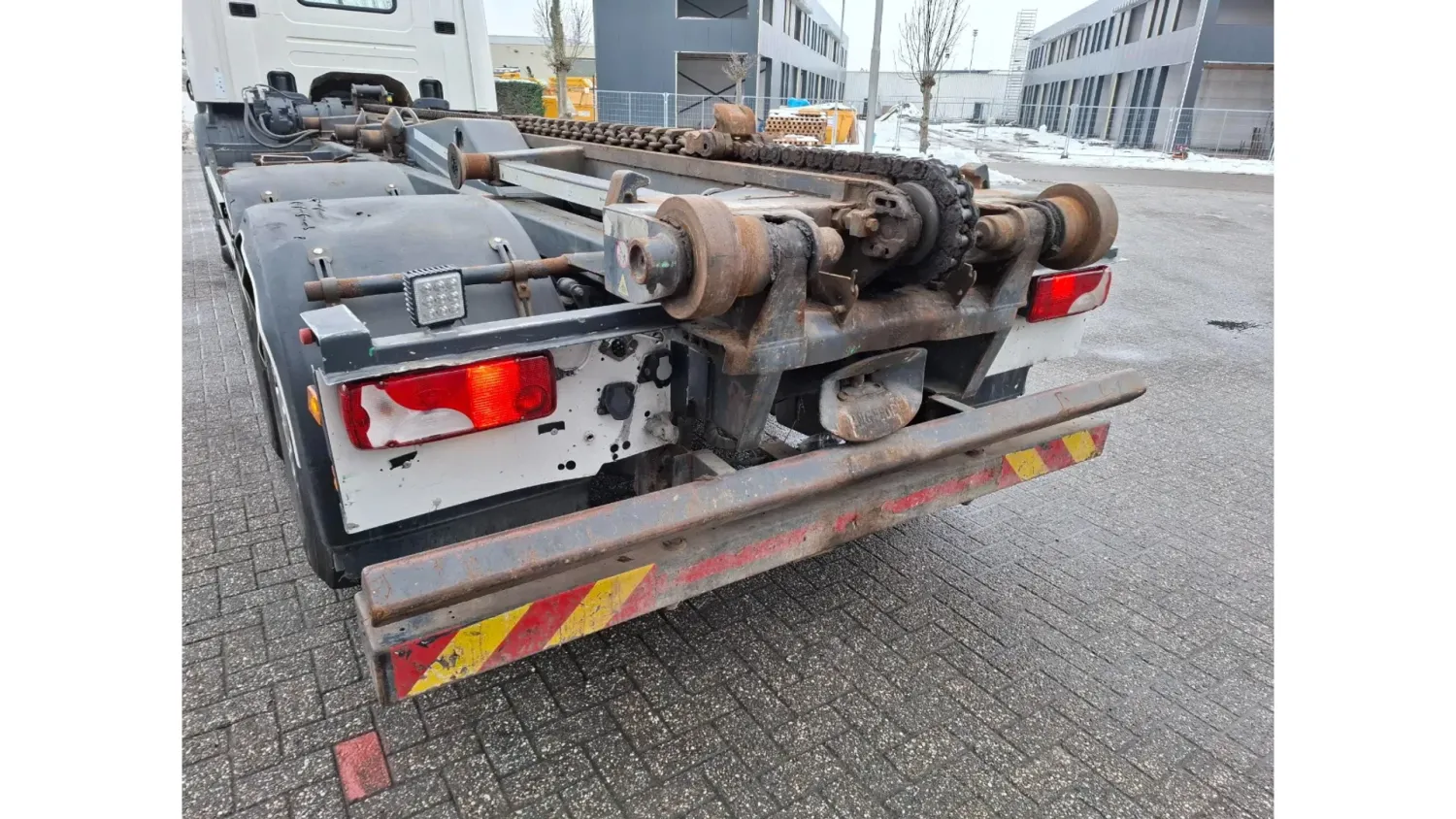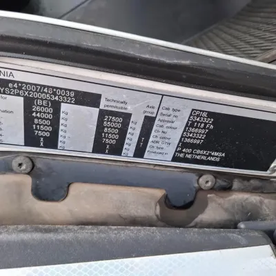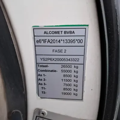 General information Year of construction: 2014 Cab: day Reference number: T258083236 Drivetrain AdBlue system: Yes Transmission Transmission: GRS-905 O, Automatic Axle configuration Brakes: disc brakes Front axle: Tyre size: 385/65*R22.5; Steering; Tyre profile left: 40%; Tyre profile right: 40% Rear axle 1: Tyre size: 315/80*R22.5; Double wheels; Differential lock; Tyre profile left inner: 20%; Tyre profile left outer: 20%; Tyre profile right outer: 20%; Tyre profile right outer: 20% Rear axle 2: Tyre size: 385/65*R22.5; Steering; Tyre profile left: 30%; Tyre profile right: 30% Measures and weights Empty weight: 11.190 kg GVW: 26.000 kg Wheelbase: 470 cm Functional Pump: Yes Maintenance APK (MOT): tested until 06/2026 Condition General condition: good Technical condition: good Visual appearance: good Damages: none https://youtu.be/fs4EOBGnALg?si=i4ZKFZeMLRLeE5PJ