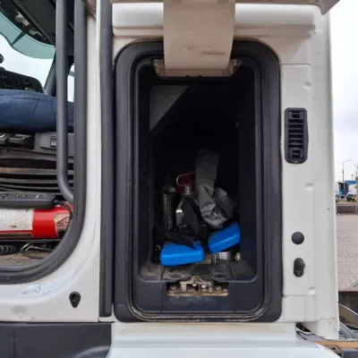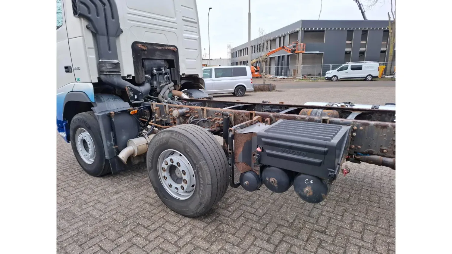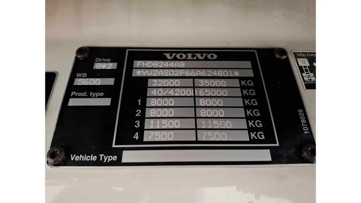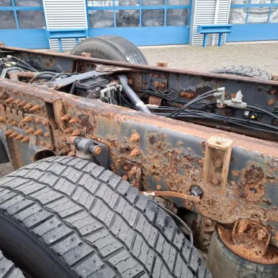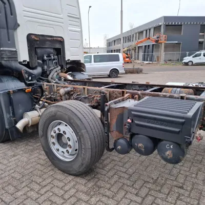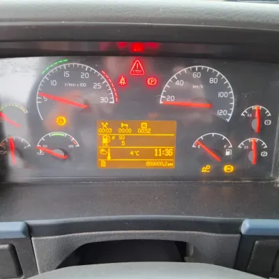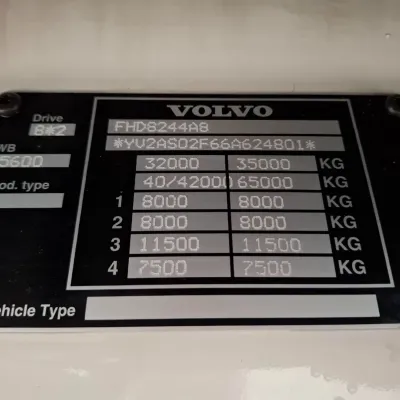 General information Year of construction: 2006 Cab: day Reference number: T256132636 Transmission Transmission: VT-2214-B R, Manual gearbox Axle configuration Brakes: disc brakes Front axle 1: Tyre size: 385/65*R22.5; Max. axle load: 8000 kg; Steering; Tyre profile left: 30%; Tyre profile right: 30% Front axle 2: Tyre size: 385/65*R22.5; Max. axle load: 8000 kg; Steering; Tyre profile left: 20%; Tyre profile right: 20% Rear axle 1: Tyre size: 315/80*R22.5; Double wheels; Differential lock; Max. axle load: 11500 kg; Tyre profile left inner: 30%; Tyre profile left outer: 30%; Tyre profile right outer: 30%; Tyre profile right outer: 30% Rear axle 2: Tyre size: 385/65*R22.5; Max. axle load: 7500 kg; Steering; Tyre profile left: 20%; Tyre profile right: 20% Measures and weights GVW: 32.250 kg Wheelbase: 560 cm Condition General condition: good Technical condition: good Visual appearance: good Damages: none https://youtu.be/pZEn7gFI6k0?si=y_e1ALnjFn9jJAN2 CHASSIS LENGTH:818 LAST STEERING AXLE NOT WORKING