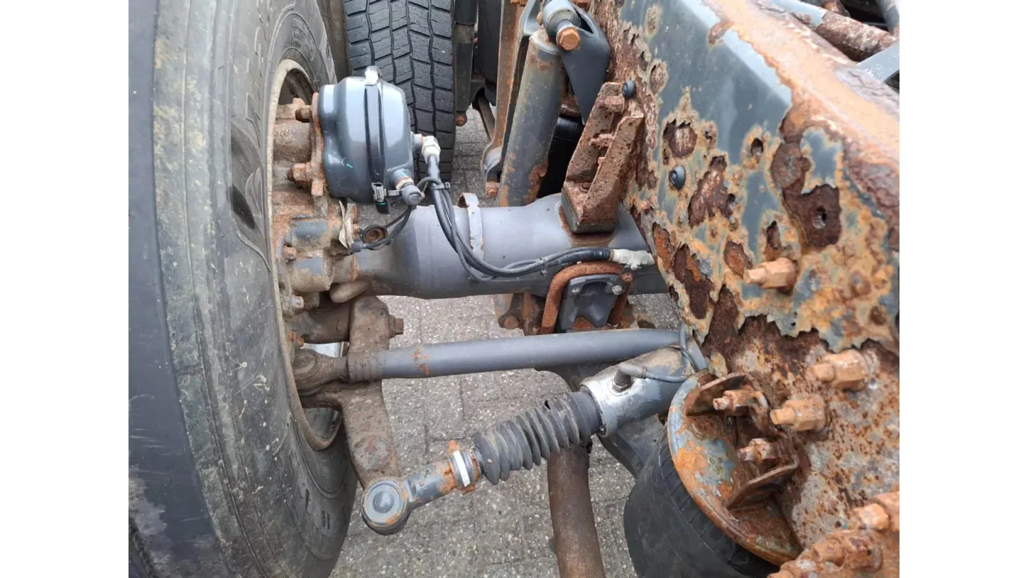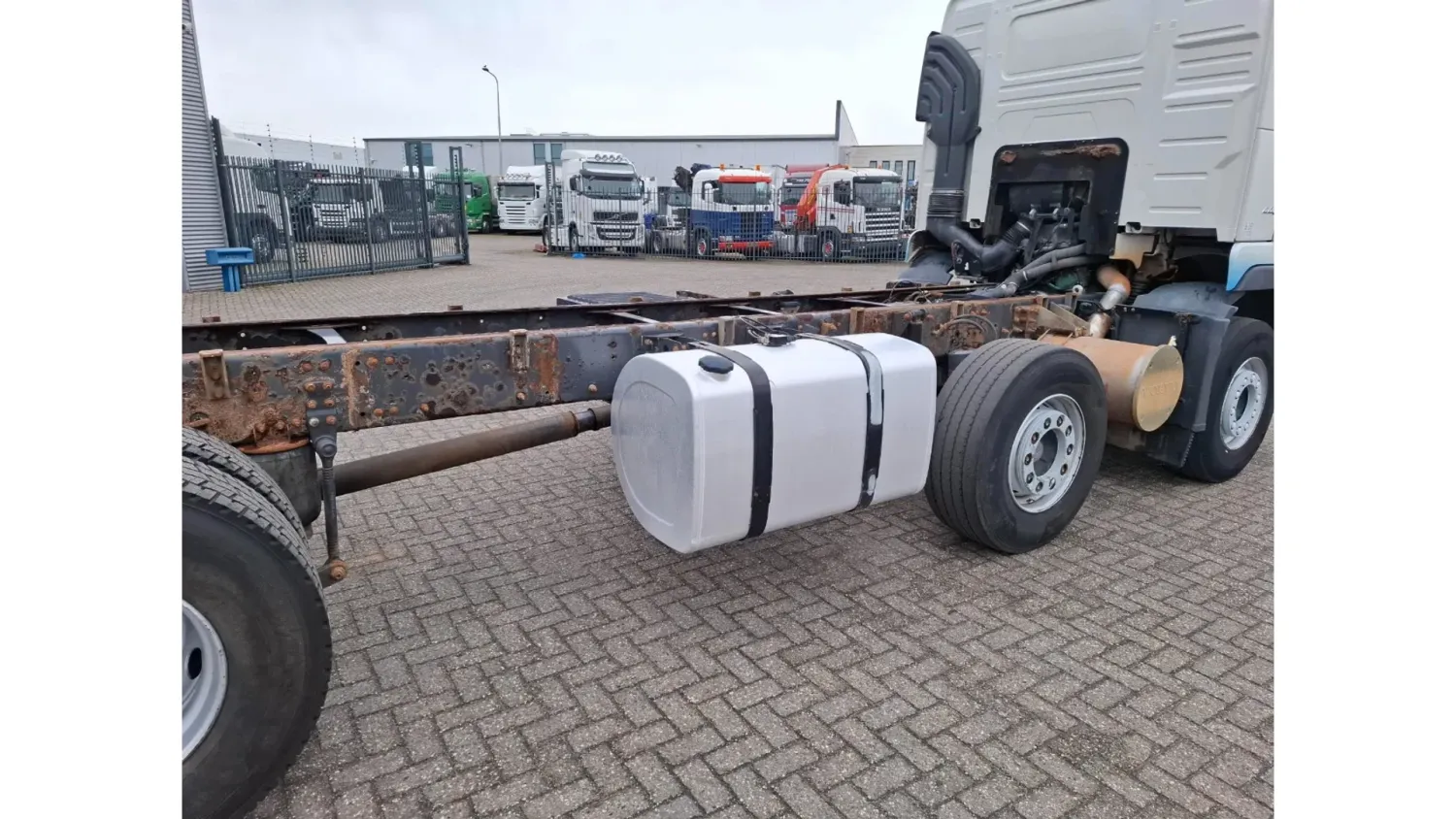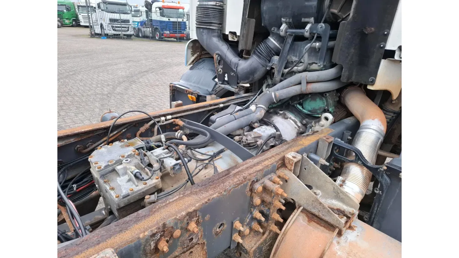 General information Year of construction: 2006 Cab: day Reference number: T256132636 Transmission Transmission: VT-2214-B R, Manual gearbox Axle configuration Brakes: disc brakes Front axle 1: Tyre size: 385/65*R22.5; Max. axle load: 8000 kg; Steering; Tyre profile left: 30%; Tyre profile right: 30% Front axle 2: Tyre size: 385/65*R22.5; Max. axle load: 8000 kg; Steering; Tyre profile left: 20%; Tyre profile right: 20% Rear axle 1: Tyre size: 315/80*R22.5; Double wheels; Differential lock; Max. axle load: 11500 kg; Tyre profile left inner: 30%; Tyre profile left outer: 30%; Tyre profile right outer: 30%; Tyre profile right outer: 30% Rear axle 2: Tyre size: 385/65*R22.5; Max. axle load: 7500 kg; Steering; Tyre profile left: 20%; Tyre profile right: 20% Measures and weights GVW: 32.250 kg Wheelbase: 560 cm Condition General condition: good Technical condition: good Visual appearance: good Damages: none https://youtu.be/pZEn7gFI6k0?si=y_e1ALnjFn9jJAN2 CHASSIS LENGTH:818 LAST STEERING AXLE NOT WORKING