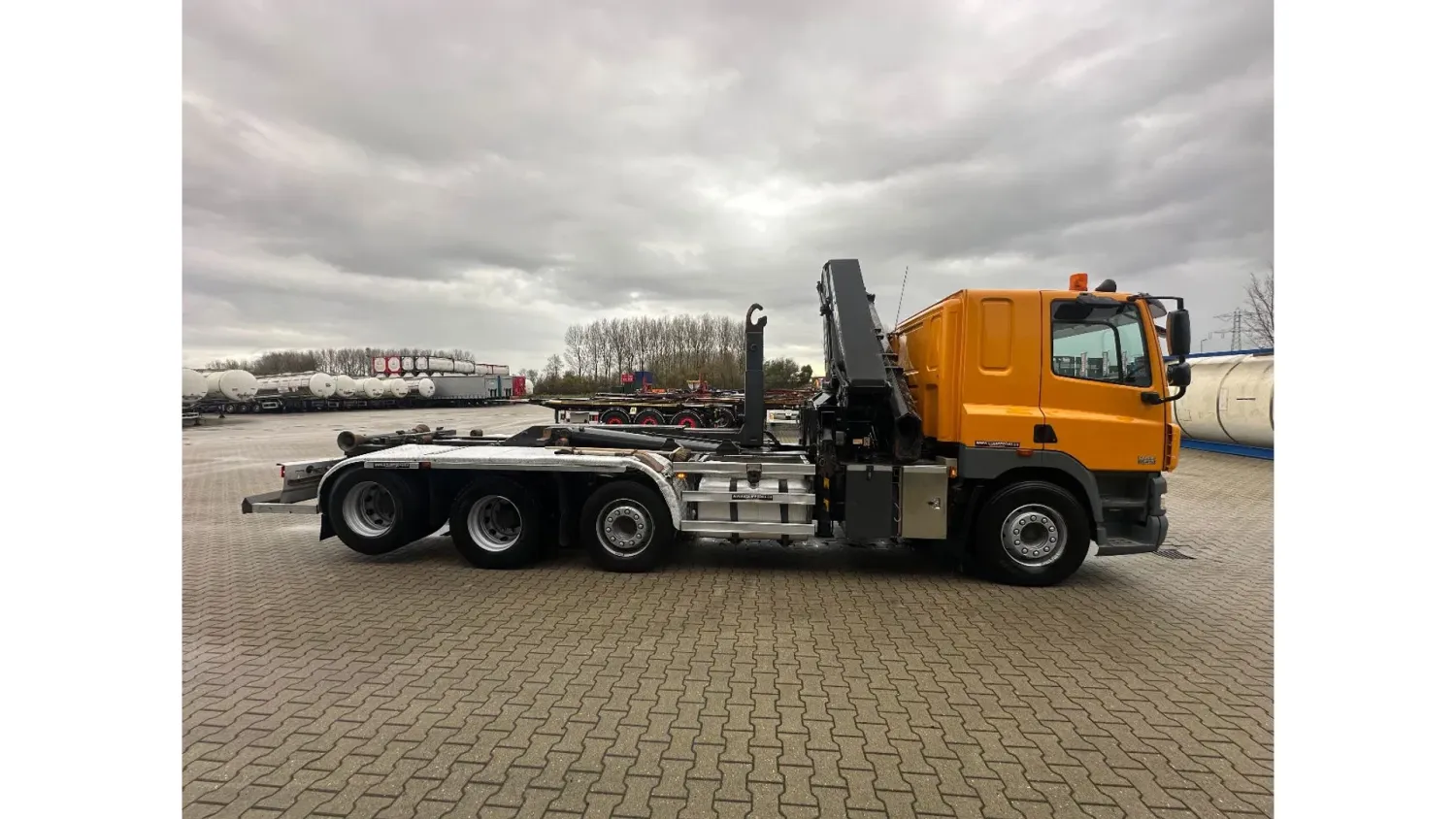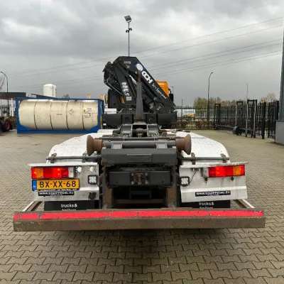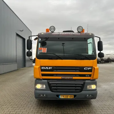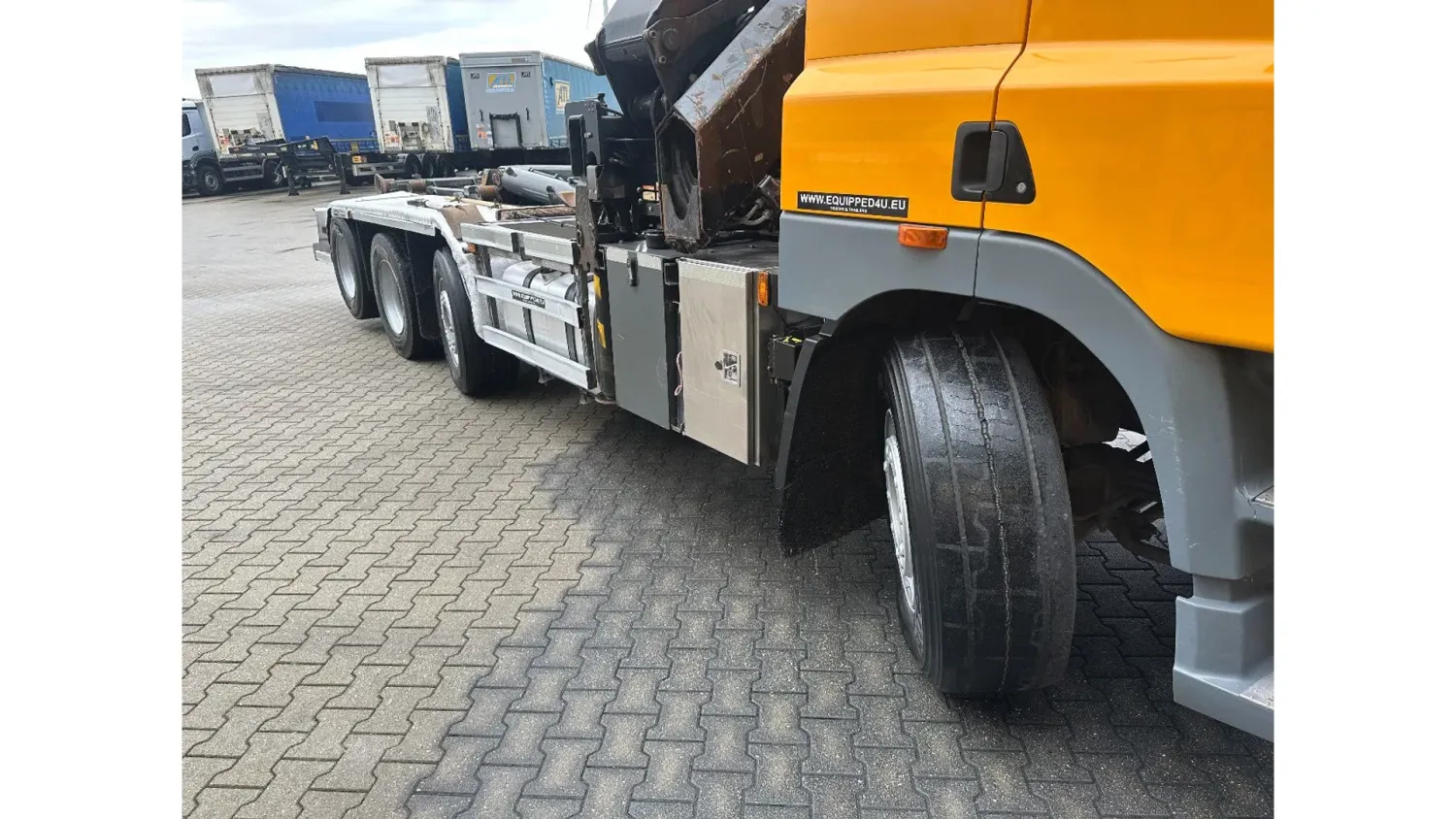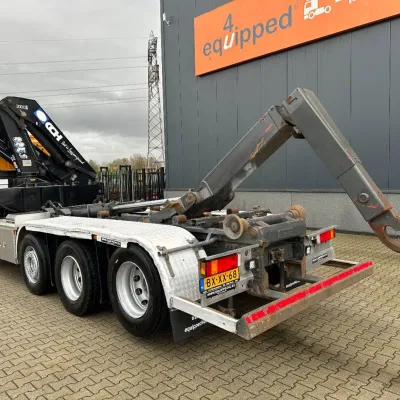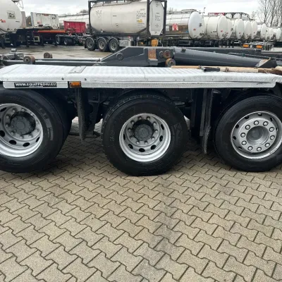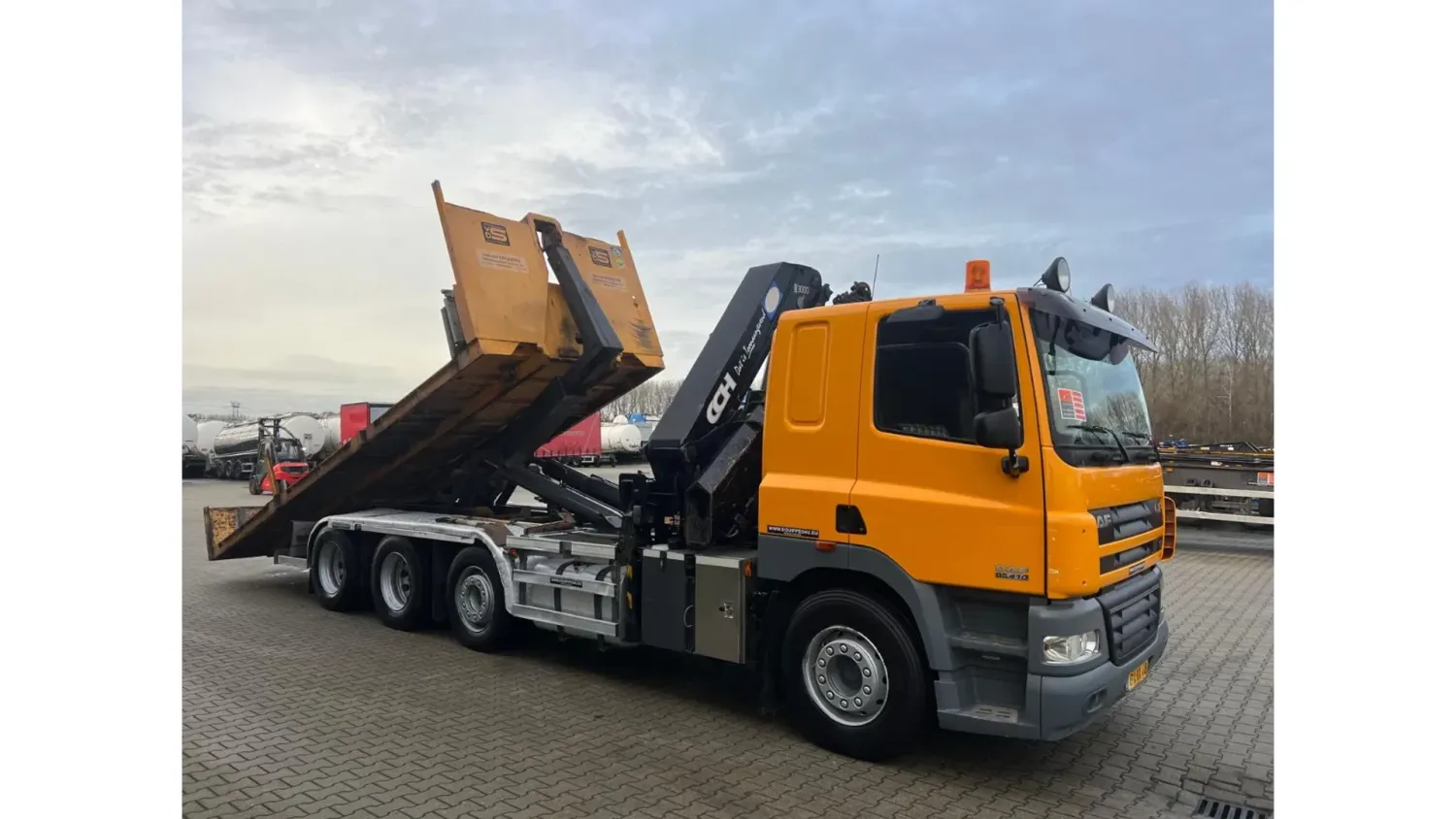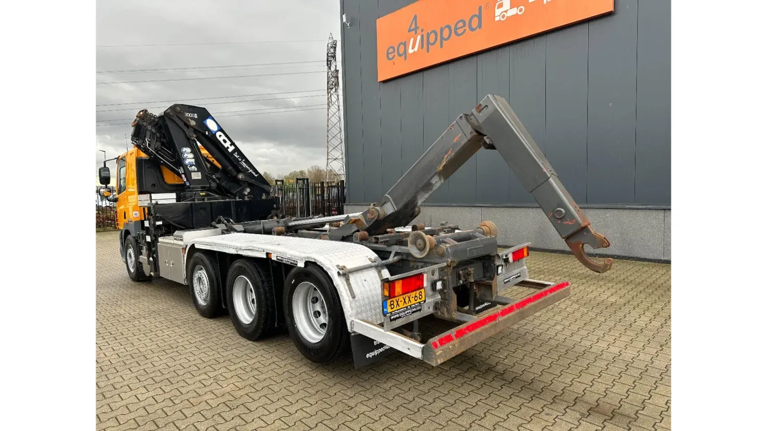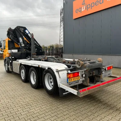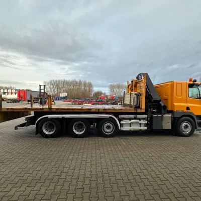 General information Bodywork: Hook arm system Year of construction: 2011 Reference number: BXXX68.PF Registration number: BX-XX-68 Technical information Number of cylinders: 6 Drivetrain AdBlue system: Yes Axle configuration Brakes: disc brakes Front axle: Tyre size: 385/65-R22.5; Max. axle load: 9000 kg; Steering; Tyre profile left: 30%; Tyre profile right: 50% Rear axle 1: Tyre size: 385/55-R22.5; Lift axle; Max. axle load: 7500 kg; Steering; Tyre profile left: 30%; Tyre profile right: 60% Rear axle 2: Tyre size: 315/70-R22.5; Double wheels; Max. axle load: 11500 kg; Tyre profile left inner: 25%; Tyre profile left outer: 30%; Tyre profile right outer: 50%; Tyre profile right outer: 40% Rear axle 3: Tyre size: 315/70-R22.5; Double wheels; Lift axle; Max. axle load: 7500 kg; Tyre profile left inner: 40%; Tyre profile left outer: 45%; Tyre profile right outer: 60%; Tyre profile right outer: 60% Measures and weights Empty weight: 17.830 kg GVW: 35.500 kg Wheelbase: 670 cm Functional Lifting capacity: 30.000 kg Lift height: 2.000 cm Crane: HMF 3000 K6, year of manufacture 2010, behind the cab Make of bodywork: DAF CE mark: yes Condition General condition: very good Technical condition: very good Visual appearance: very good Additional information Please contact Arne Honingh (+31654262504, sales@equipped4u.eu) for more information 2011 DAF CF85.410 with HMF 3000 K6 crane (6x extendable) + radio remote control (incl. charger / spare battery), HYVALIFT 26 ton hook + flat roll-off container with sideboards and stake pots, 798,895 km, automatic gearbox, air conditioning, 1x bed, radio / CD, Dutch registration with valid technical inspection (APK) until 12-01-2026.