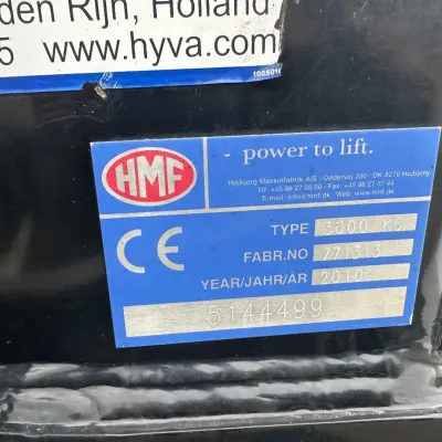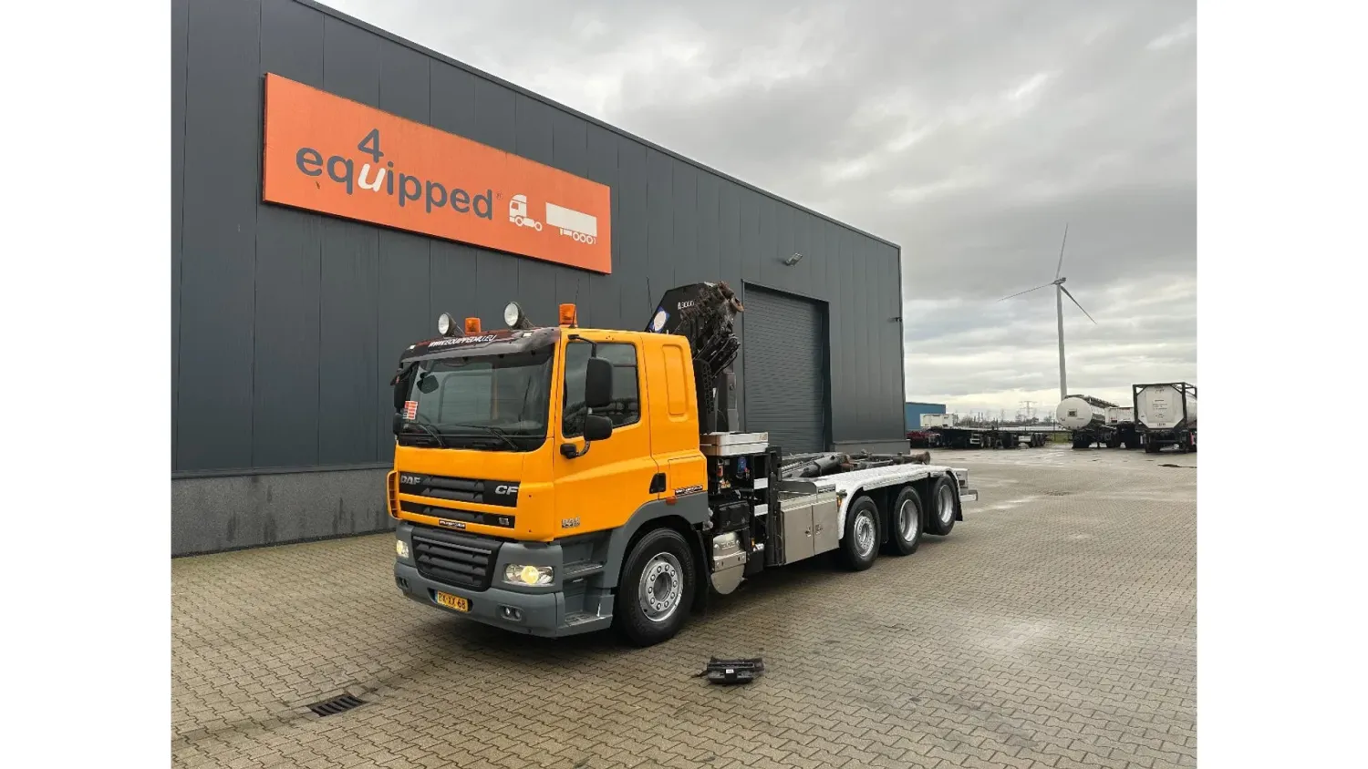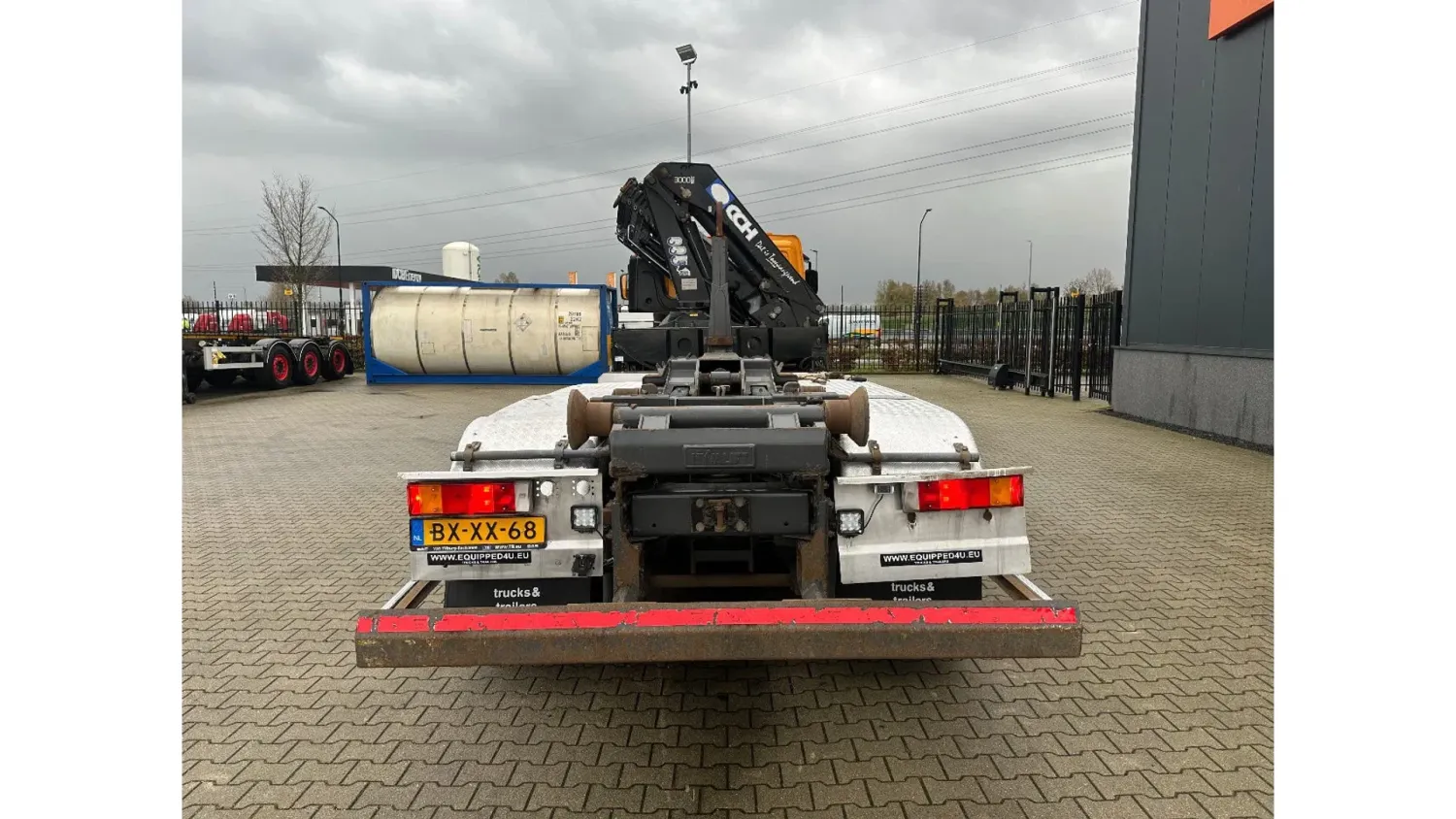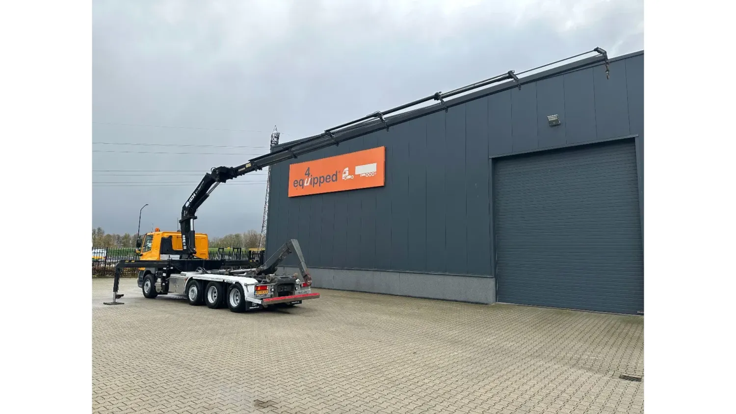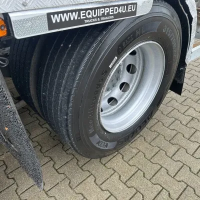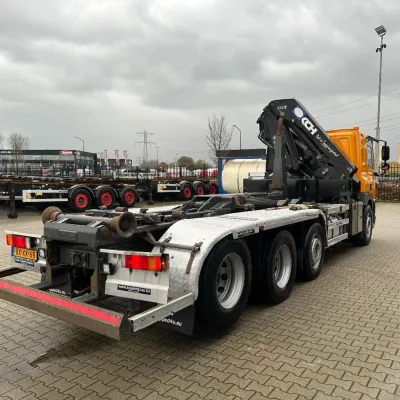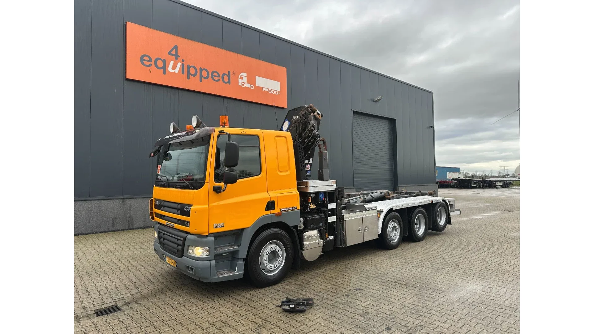 General information Bodywork: Hook arm system Year of construction: 2011 Reference number: BXXX68.PF Registration number: BX-XX-68 Technical information Number of cylinders: 6 Drivetrain AdBlue system: Yes Axle configuration Brakes: disc brakes Front axle: Tyre size: 385/65-R22.5; Max. axle load: 9000 kg; Steering; Tyre profile left: 30%; Tyre profile right: 50% Rear axle 1: Tyre size: 385/55-R22.5; Lift axle; Max. axle load: 7500 kg; Steering; Tyre profile left: 30%; Tyre profile right: 60% Rear axle 2: Tyre size: 315/70-R22.5; Double wheels; Max. axle load: 11500 kg; Tyre profile left inner: 25%; Tyre profile left outer: 30%; Tyre profile right outer: 50%; Tyre profile right outer: 40% Rear axle 3: Tyre size: 315/70-R22.5; Double wheels; Lift axle; Max. axle load: 7500 kg; Tyre profile left inner: 40%; Tyre profile left outer: 45%; Tyre profile right outer: 60%; Tyre profile right outer: 60% Measures and weights Empty weight: 17.830 kg GVW: 35.500 kg Wheelbase: 670 cm Functional Lifting capacity: 30.000 kg Lift height: 2.000 cm Crane: HMF 3000 K6, year of manufacture 2010, behind the cab Make of bodywork: DAF CE mark: yes Condition General condition: very good Technical condition: very good Visual appearance: very good Additional information Please contact Arne Honingh (+31654262504, sales@equipped4u.eu) for more information 2011 DAF CF85.410 with HMF 3000 K6 crane (6x extendable) + radio remote control (incl. charger / spare battery), HYVALIFT 26 ton hook + flat roll-off container with sideboards and stake pots, 798,895 km, automatic gearbox, air conditioning, 1x bed, radio / CD, Dutch registration with valid technical inspection (APK) until 12-01-2026.