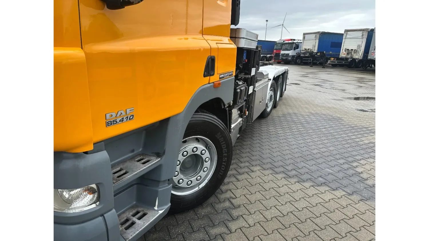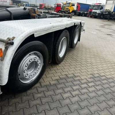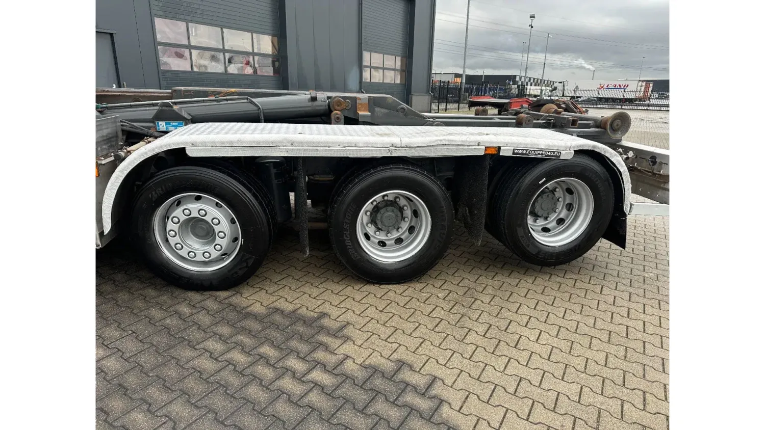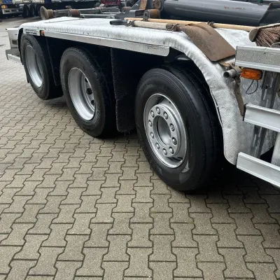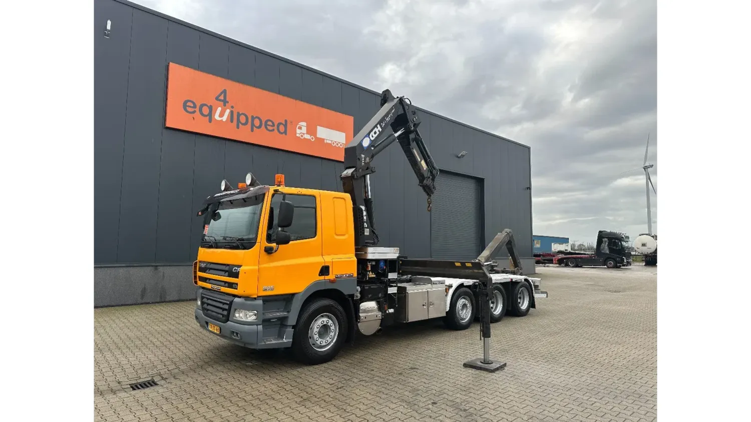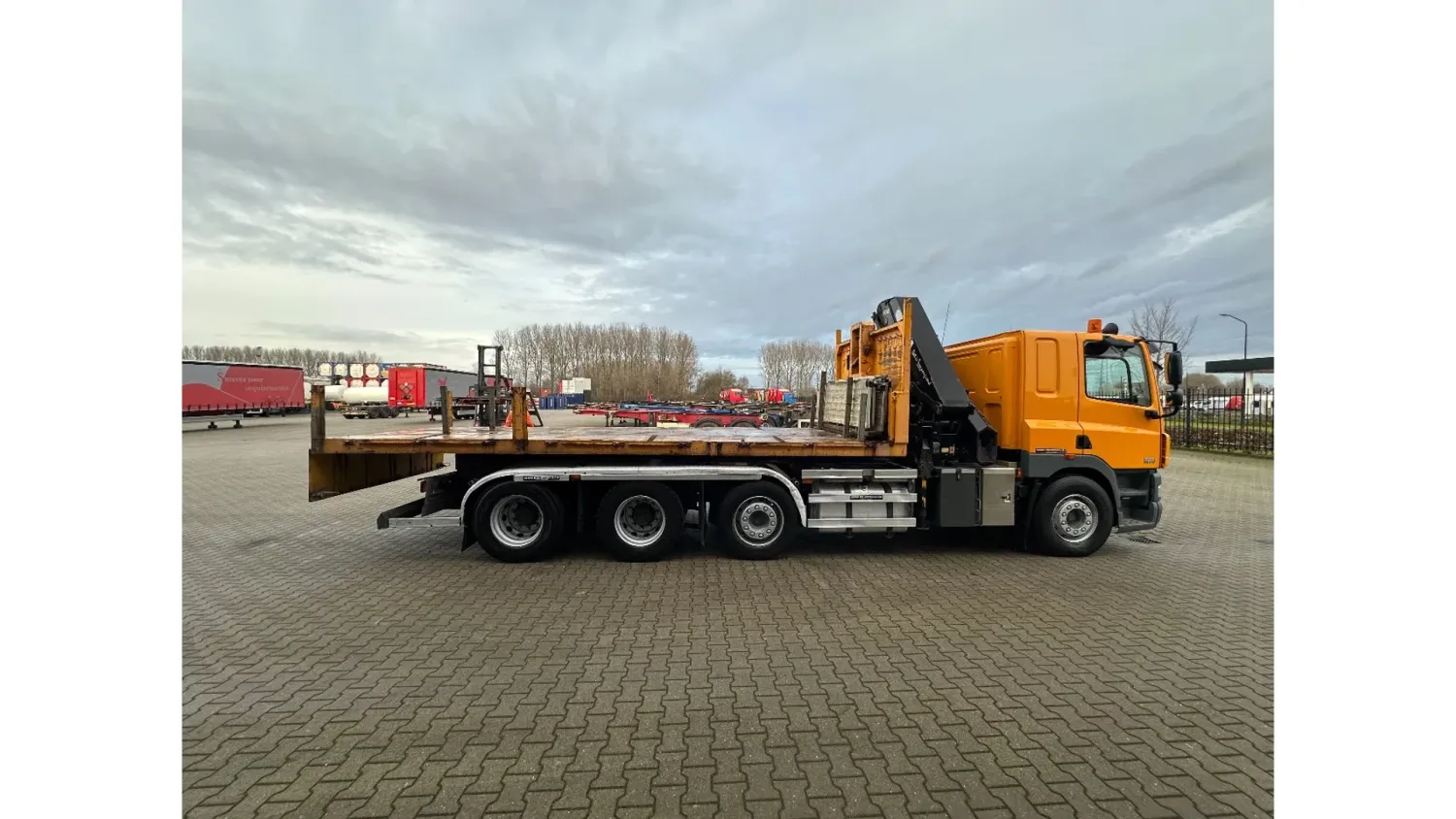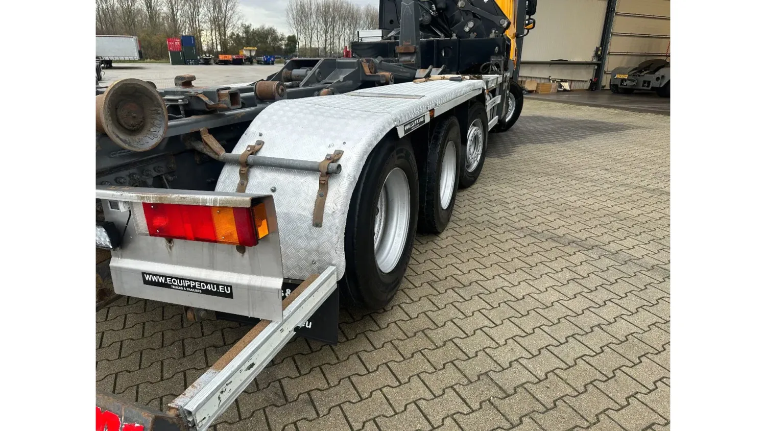 General information Bodywork: Hook arm system Year of construction: 2011 Reference number: BXXX68.PF Registration number: BX-XX-68 Technical information Number of cylinders: 6 Drivetrain AdBlue system: Yes Axle configuration Brakes: disc brakes Front axle: Tyre size: 385/65-R22.5; Max. axle load: 9000 kg; Steering; Tyre profile left: 30%; Tyre profile right: 50% Rear axle 1: Tyre size: 385/55-R22.5; Lift axle; Max. axle load: 7500 kg; Steering; Tyre profile left: 30%; Tyre profile right: 60% Rear axle 2: Tyre size: 315/70-R22.5; Double wheels; Max. axle load: 11500 kg; Tyre profile left inner: 25%; Tyre profile left outer: 30%; Tyre profile right outer: 50%; Tyre profile right outer: 40% Rear axle 3: Tyre size: 315/70-R22.5; Double wheels; Lift axle; Max. axle load: 7500 kg; Tyre profile left inner: 40%; Tyre profile left outer: 45%; Tyre profile right outer: 60%; Tyre profile right outer: 60% Measures and weights Empty weight: 17.830 kg GVW: 35.500 kg Wheelbase: 670 cm Functional Lifting capacity: 30.000 kg Lift height: 2.000 cm Crane: HMF 3000 K6, year of manufacture 2010, behind the cab Make of bodywork: DAF CE mark: yes Condition General condition: very good Technical condition: very good Visual appearance: very good Additional information Please contact Arne Honingh (+31654262504, sales@equipped4u.eu) for more information 2011 DAF CF85.410 with HMF 3000 K6 crane (6x extendable) + radio remote control (incl. charger / spare battery), HYVALIFT 26 ton hook + flat roll-off container with sideboards and stake pots, 798,895 km, automatic gearbox, air conditioning, 1x bed, radio / CD, Dutch registration with valid technical inspection (APK) until 12-01-2026.