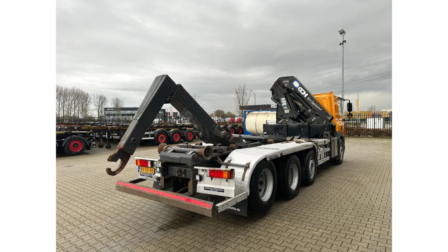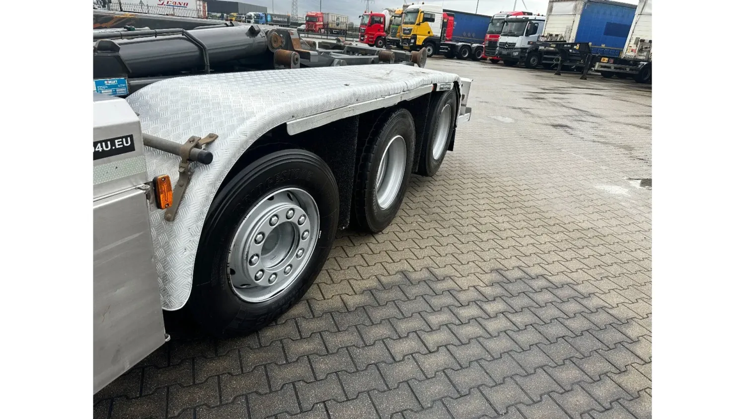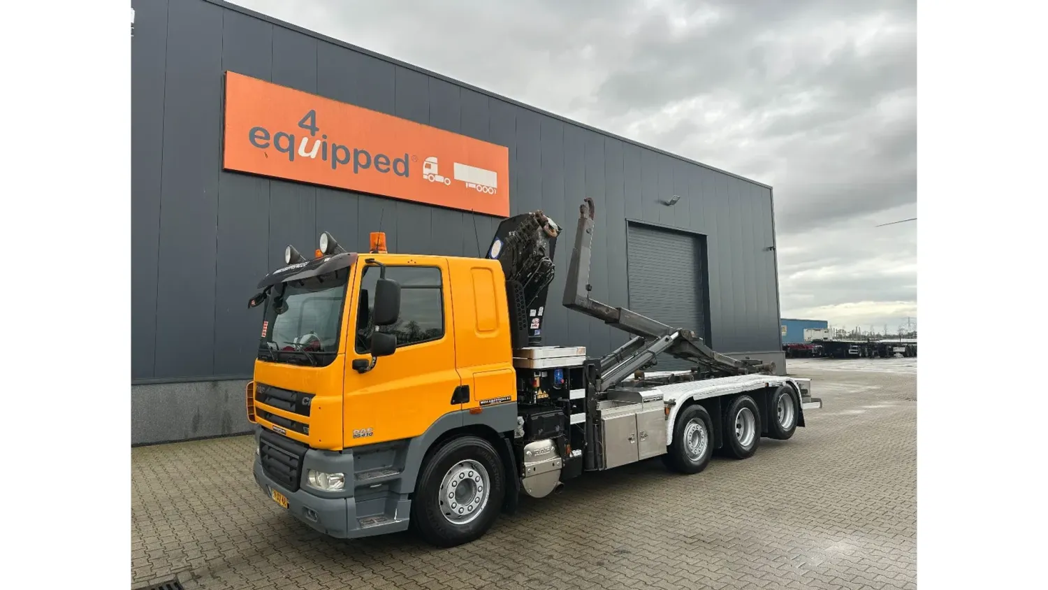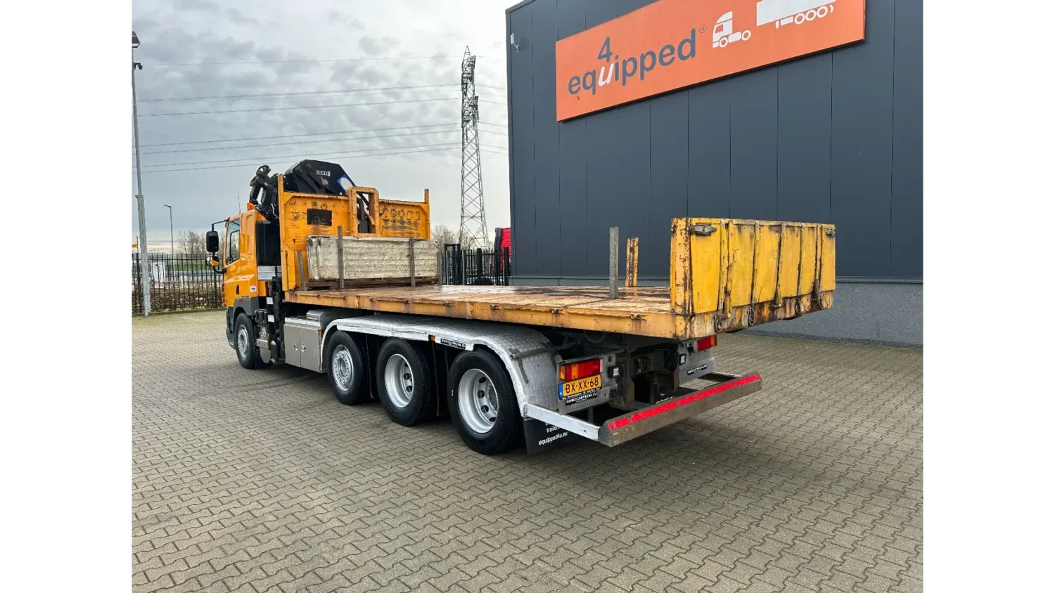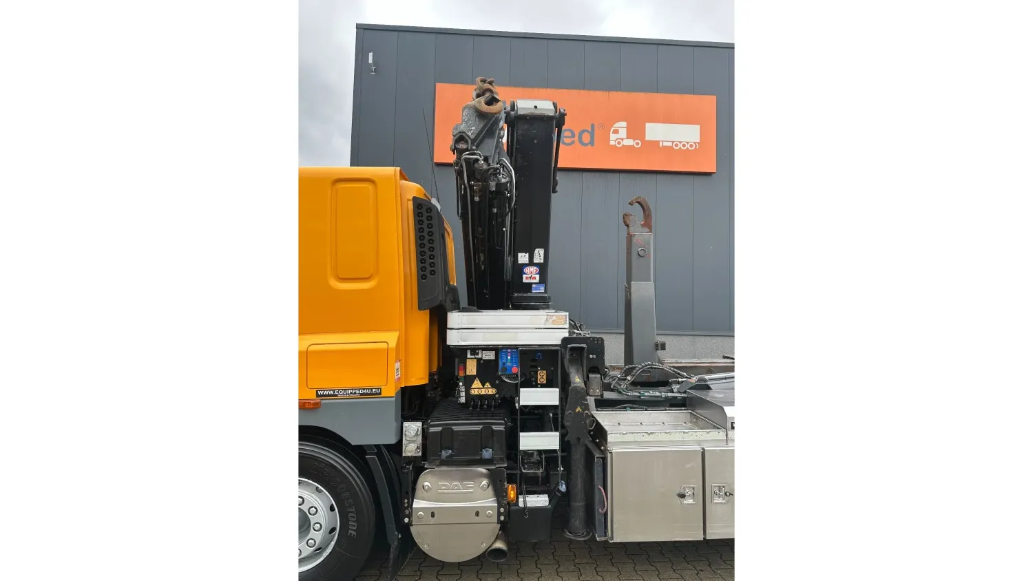 General information Bodywork: Hook arm system Year of construction: 2011 Reference number: BXXX68.PF Registration number: BX-XX-68 Technical information Number of cylinders: 6 Drivetrain AdBlue system: Yes Axle configuration Brakes: disc brakes Front axle: Tyre size: 385/65-R22.5; Max. axle load: 9000 kg; Steering; Tyre profile left: 30%; Tyre profile right: 50% Rear axle 1: Tyre size: 385/55-R22.5; Lift axle; Max. axle load: 7500 kg; Steering; Tyre profile left: 30%; Tyre profile right: 60% Rear axle 2: Tyre size: 315/70-R22.5; Double wheels; Max. axle load: 11500 kg; Tyre profile left inner: 25%; Tyre profile left outer: 30%; Tyre profile right outer: 50%; Tyre profile right outer: 40% Rear axle 3: Tyre size: 315/70-R22.5; Double wheels; Lift axle; Max. axle load: 7500 kg; Tyre profile left inner: 40%; Tyre profile left outer: 45%; Tyre profile right outer: 60%; Tyre profile right outer: 60% Measures and weights Empty weight: 17.830 kg GVW: 35.500 kg Wheelbase: 670 cm Functional Lifting capacity: 30.000 kg Lift height: 2.000 cm Crane: HMF 3000 K6, year of manufacture 2010, behind the cab Make of bodywork: DAF CE mark: yes Condition General condition: very good Technical condition: very good Visual appearance: very good Additional information Please contact Arne Honingh (+31654262504, sales@equipped4u.eu) for more information 2011 DAF CF85.410 with HMF 3000 K6 crane (6x extendable) + radio remote control (incl. charger / spare battery), HYVALIFT 26 ton hook + flat roll-off container with sideboards and stake pots, 798,895 km, automatic gearbox, air conditioning, 1x bed, radio / CD, Dutch registration with valid technical inspection (APK) until 12-01-2026.