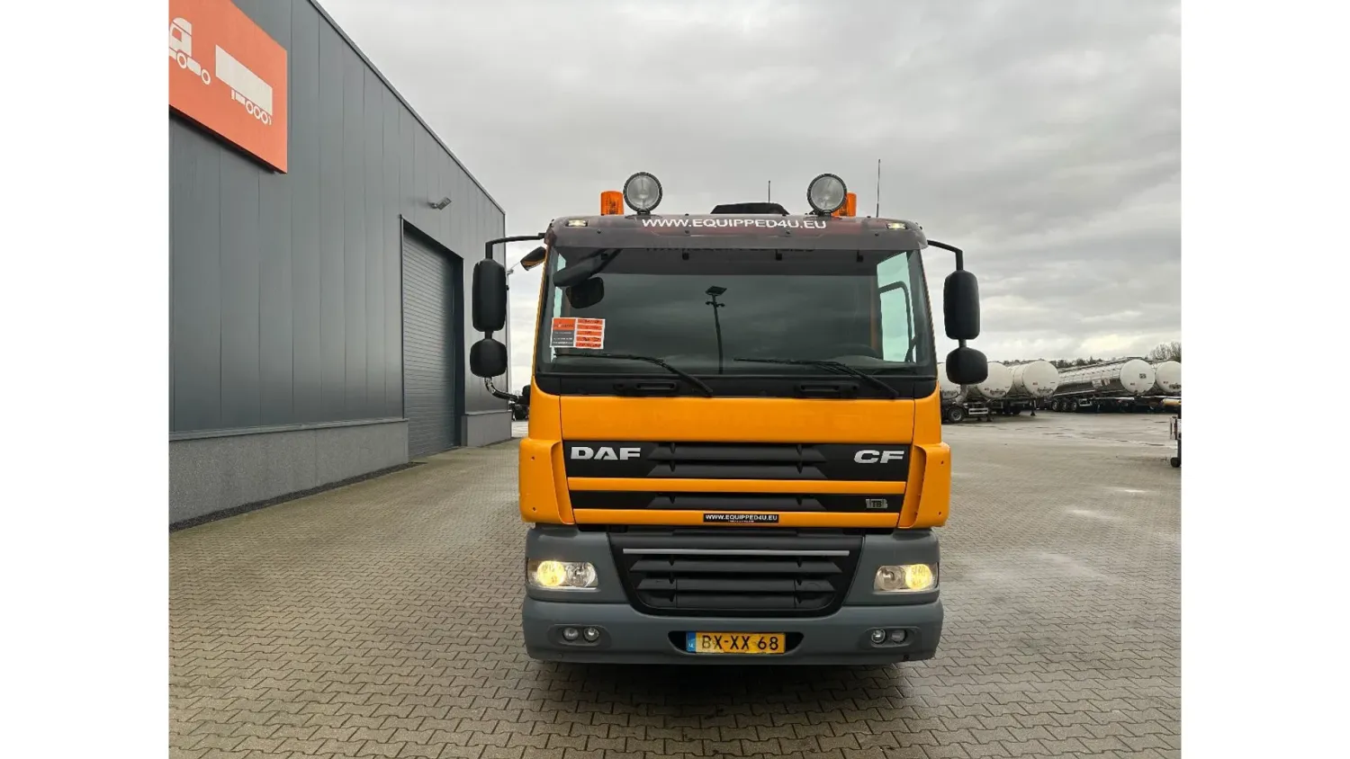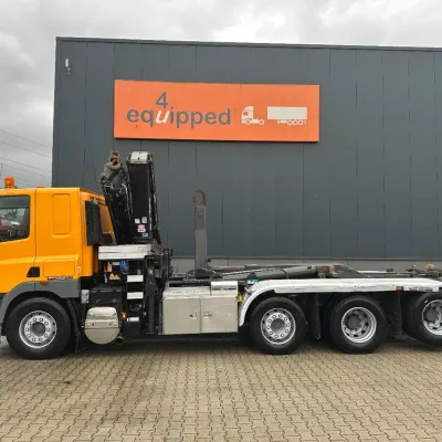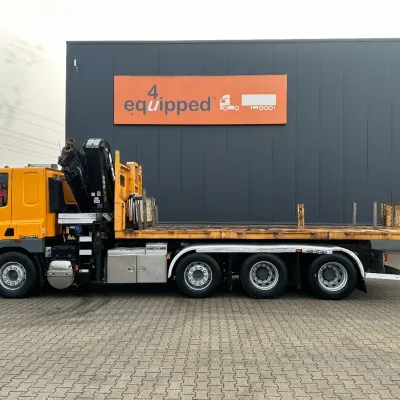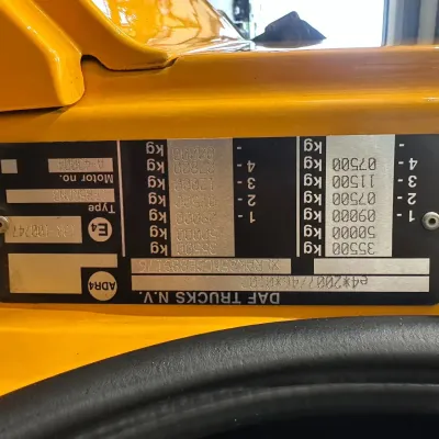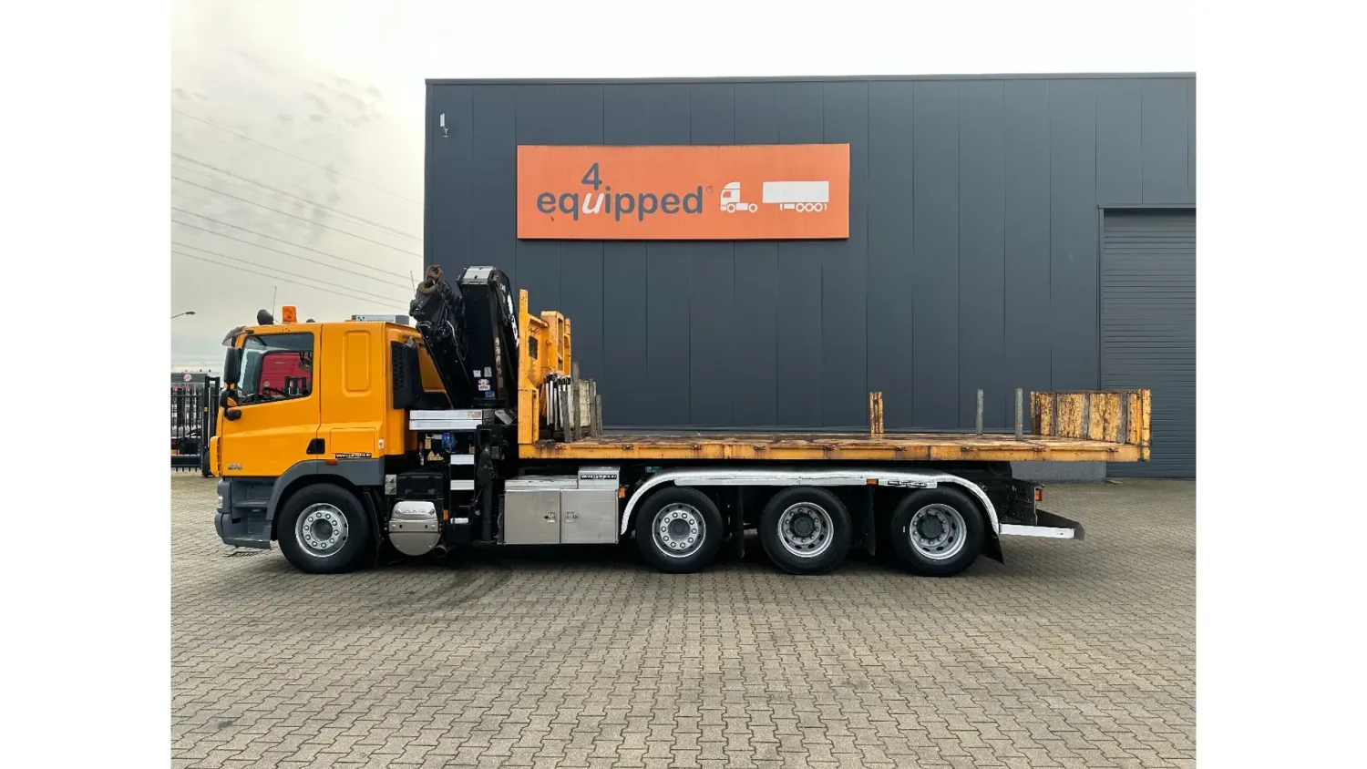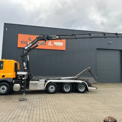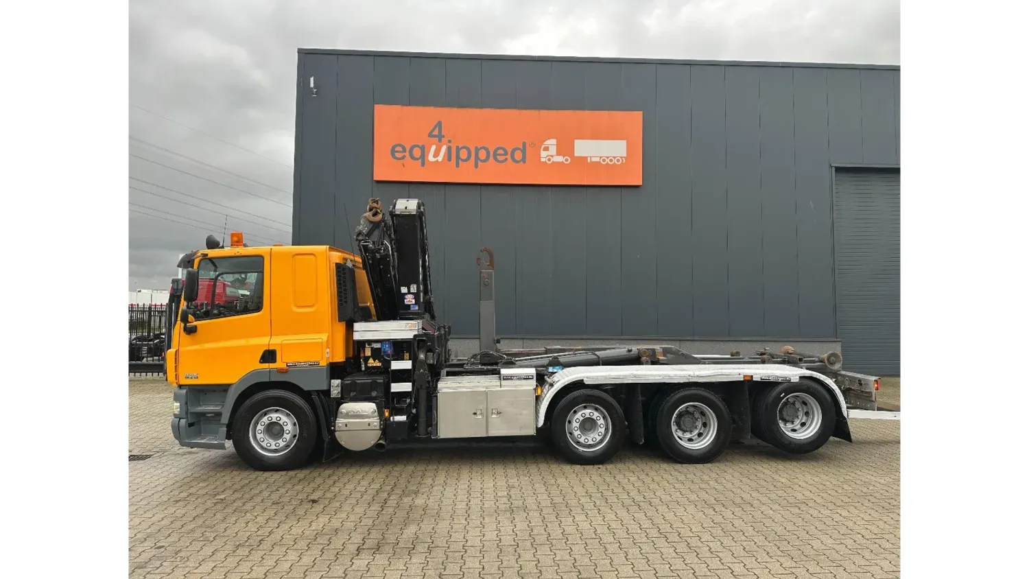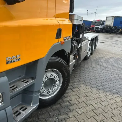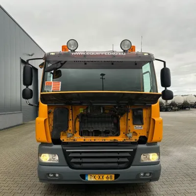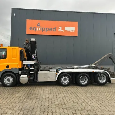 General information Bodywork: Hook arm system Year of construction: 2011 Reference number: BXXX68.PF Registration number: BX-XX-68 Technical information Number of cylinders: 6 Drivetrain AdBlue system: Yes Axle configuration Brakes: disc brakes Front axle: Tyre size: 385/65-R22.5; Max. axle load: 9000 kg; Steering; Tyre profile left: 30%; Tyre profile right: 50% Rear axle 1: Tyre size: 385/55-R22.5; Lift axle; Max. axle load: 7500 kg; Steering; Tyre profile left: 30%; Tyre profile right: 60% Rear axle 2: Tyre size: 315/70-R22.5; Double wheels; Max. axle load: 11500 kg; Tyre profile left inner: 25%; Tyre profile left outer: 30%; Tyre profile right outer: 50%; Tyre profile right outer: 40% Rear axle 3: Tyre size: 315/70-R22.5; Double wheels; Lift axle; Max. axle load: 7500 kg; Tyre profile left inner: 40%; Tyre profile left outer: 45%; Tyre profile right outer: 60%; Tyre profile right outer: 60% Measures and weights Empty weight: 17.830 kg GVW: 35.500 kg Wheelbase: 670 cm Functional Lifting capacity: 30.000 kg Lift height: 2.000 cm Crane: HMF 3000 K6, year of manufacture 2010, behind the cab Make of bodywork: DAF CE mark: yes Condition General condition: very good Technical condition: very good Visual appearance: very good Additional information Please contact Arne Honingh (+31654262504, sales@equipped4u.eu) for more information 2011 DAF CF85.410 with HMF 3000 K6 crane (6x extendable) + radio remote control (incl. charger / spare battery), HYVALIFT 26 ton hook + flat roll-off container with sideboards and stake pots, 798,895 km, automatic gearbox, air conditioning, 1x bed, radio / CD, Dutch registration with valid technical inspection (APK) until 12-01-2026.