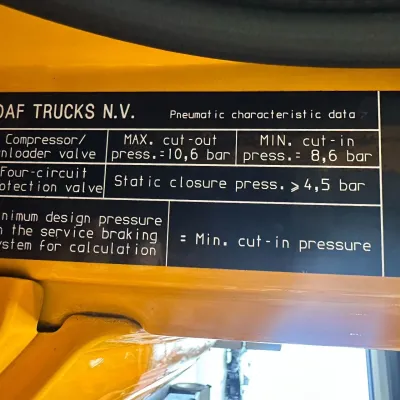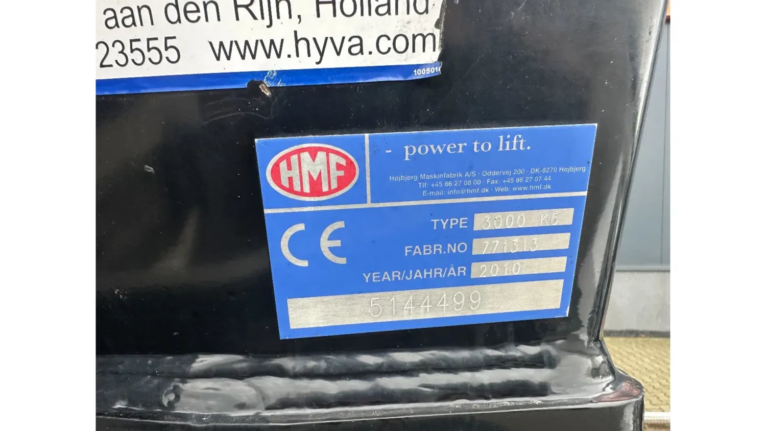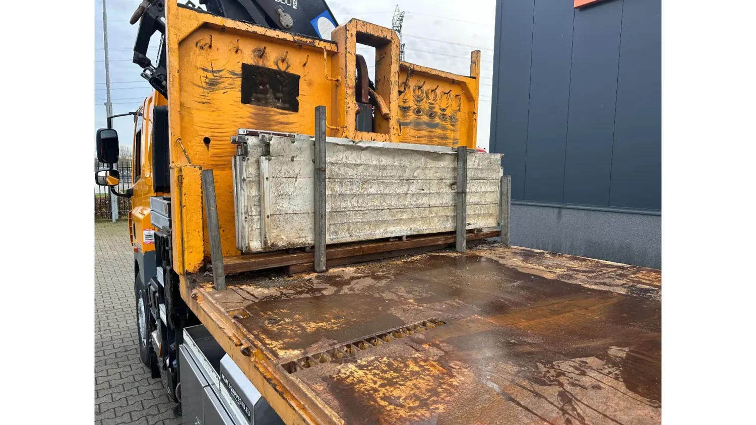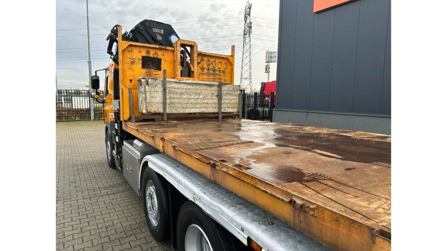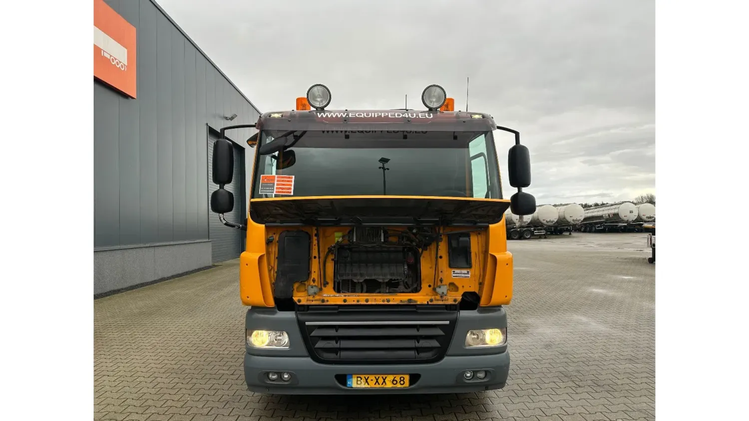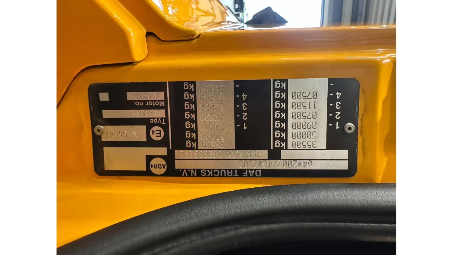 General information Bodywork: Hook arm system Year of construction: 2011 Reference number: BXXX68.PF Registration number: BX-XX-68 Technical information Number of cylinders: 6 Drivetrain AdBlue system: Yes Axle configuration Brakes: disc brakes Front axle: Tyre size: 385/65-R22.5; Max. axle load: 9000 kg; Steering; Tyre profile left: 30%; Tyre profile right: 50% Rear axle 1: Tyre size: 385/55-R22.5; Lift axle; Max. axle load: 7500 kg; Steering; Tyre profile left: 30%; Tyre profile right: 60% Rear axle 2: Tyre size: 315/70-R22.5; Double wheels; Max. axle load: 11500 kg; Tyre profile left inner: 25%; Tyre profile left outer: 30%; Tyre profile right outer: 50%; Tyre profile right outer: 40% Rear axle 3: Tyre size: 315/70-R22.5; Double wheels; Lift axle; Max. axle load: 7500 kg; Tyre profile left inner: 40%; Tyre profile left outer: 45%; Tyre profile right outer: 60%; Tyre profile right outer: 60% Measures and weights Empty weight: 17.830 kg GVW: 35.500 kg Wheelbase: 670 cm Functional Lifting capacity: 30.000 kg Lift height: 2.000 cm Crane: HMF 3000 K6, year of manufacture 2010, behind the cab Make of bodywork: DAF CE mark: yes Condition General condition: very good Technical condition: very good Visual appearance: very good Additional information Please contact Arne Honingh (+31654262504, sales@equipped4u.eu) for more information 2011 DAF CF85.410 with HMF 3000 K6 crane (6x extendable) + radio remote control (incl. charger / spare battery), HYVALIFT 26 ton hook + flat roll-off container with sideboards and stake pots, 798,895 km, automatic gearbox, air conditioning, 1x bed, radio / CD, Dutch registration with valid technical inspection (APK) until 12-01-2026.