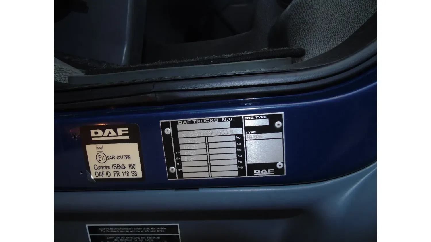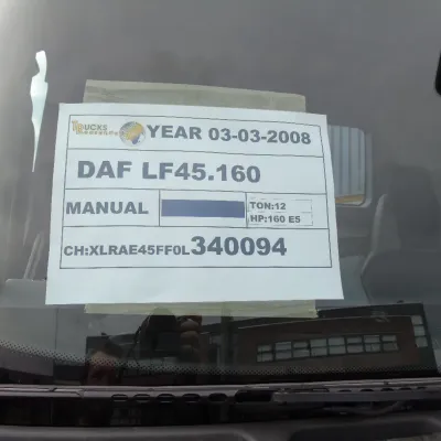 General information Year of construction: 2008 Cab: day Reference number: 340094 Registration number: BT-TD-36 Technical information Number of cylinders: 4 Drivetrain AdBlue system: Yes Axle configuration Brakes: disc brakes Suspension: leaf suspension Front axle: Max. axle load: 4480 kg; Steering Rear axle: Double wheels; Max. axle load: 8480 kg Measures and weights Empty weight: 4.500 kg GVW: 12.000 kg Wheelbase: 355 cm Functional Dimensions of cargo space: 500 x 227 x 94 cm Maintenance APK (MOT): tested until 01/2027 Condition General condition: very good Technical condition: very good Visual appearance: very good Additional information Please contact Sales (+31657945247, info@trucksroosendaal.nl) for more information XLRAE45FF0L340094