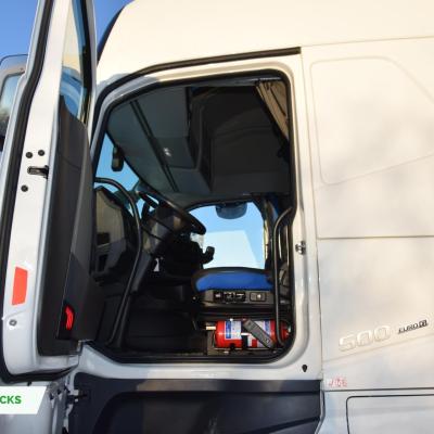 650 litre, left side fuel tank with steps. 65 litre AdBlue tank under/behind cab.