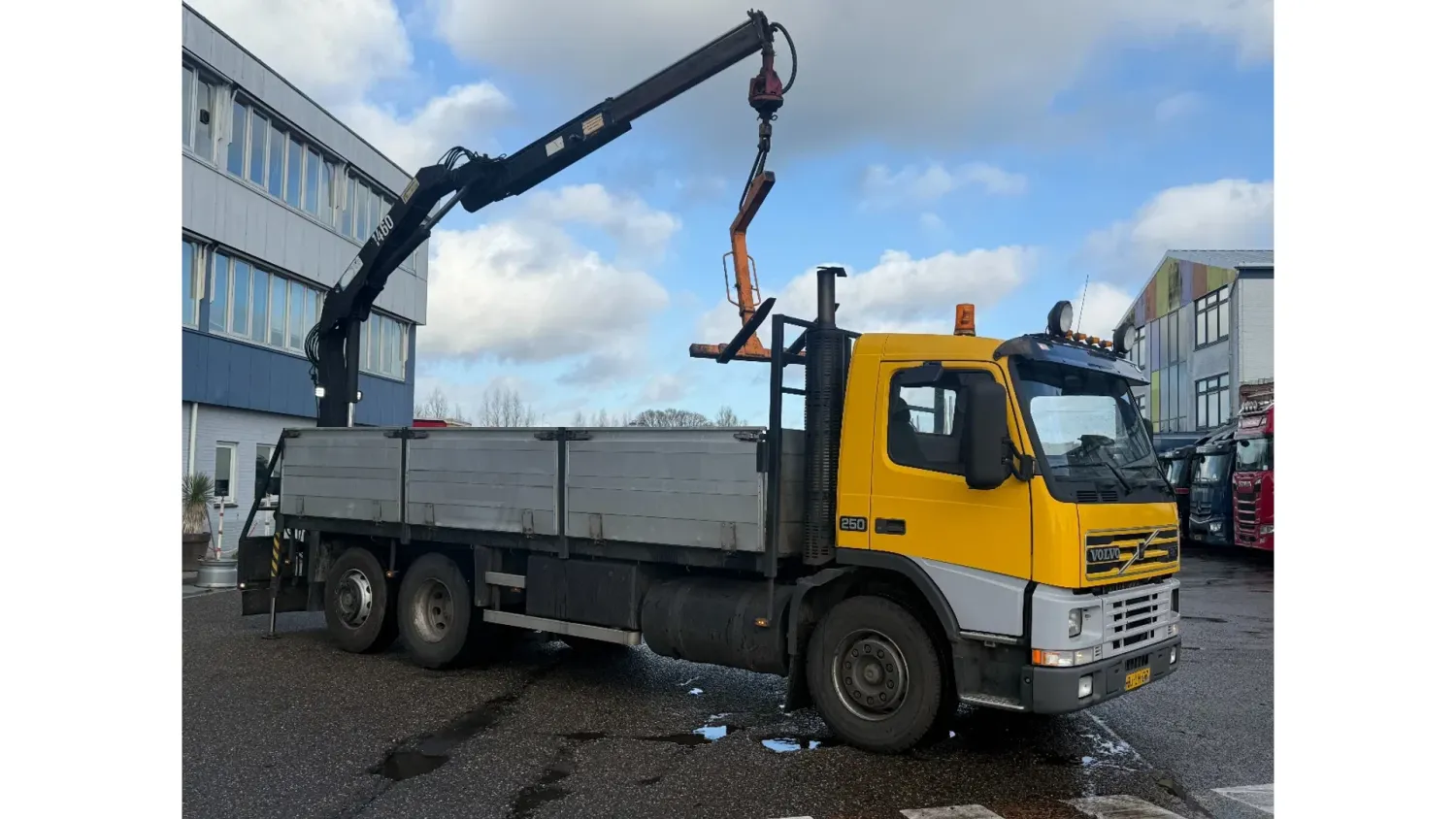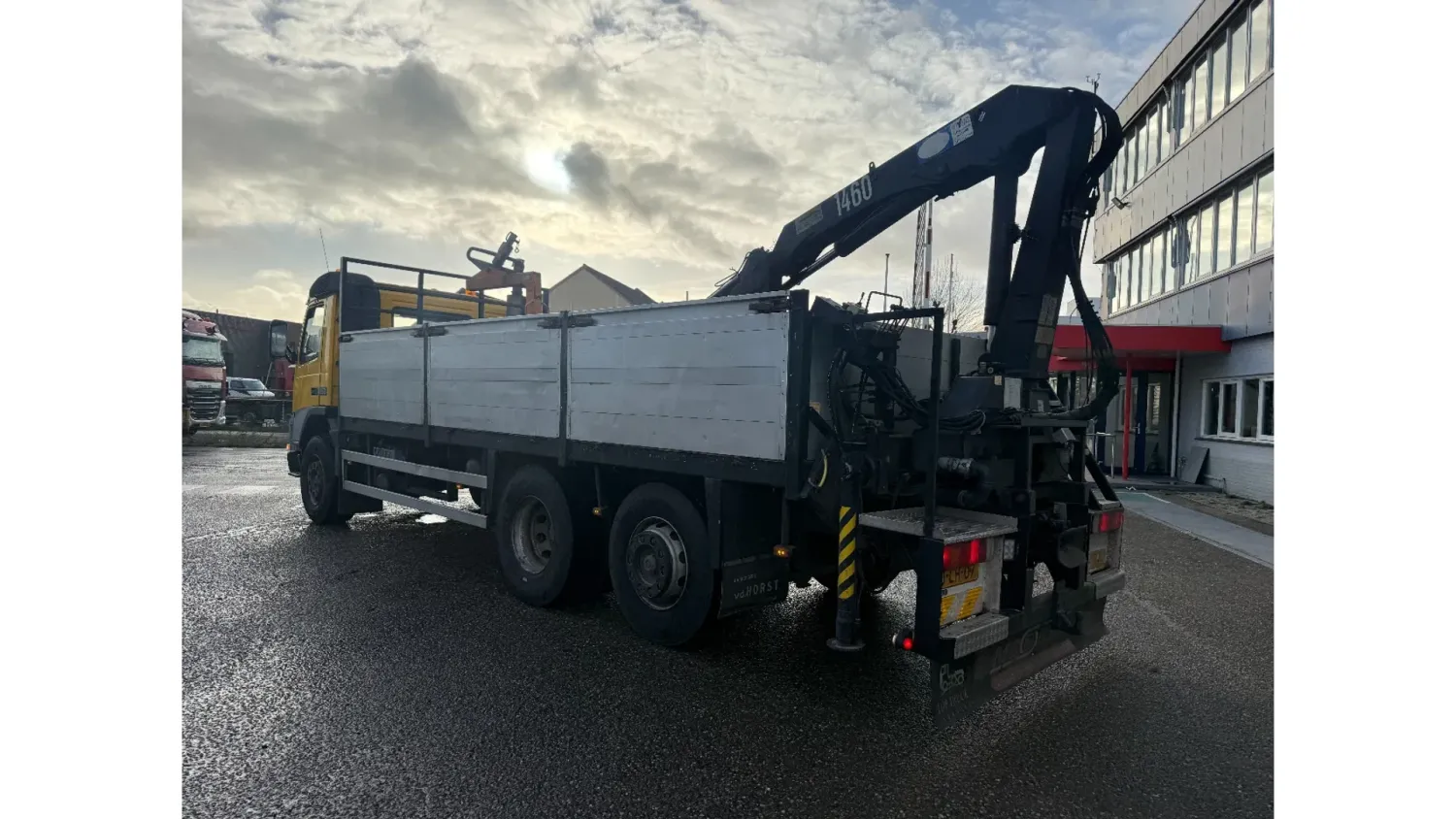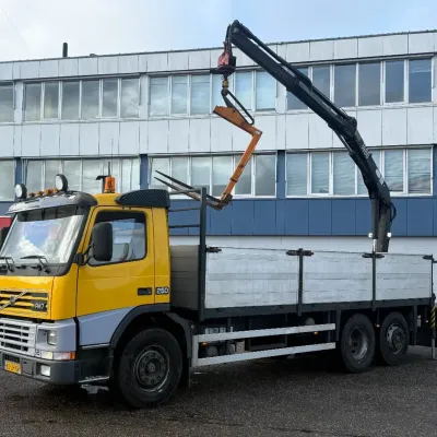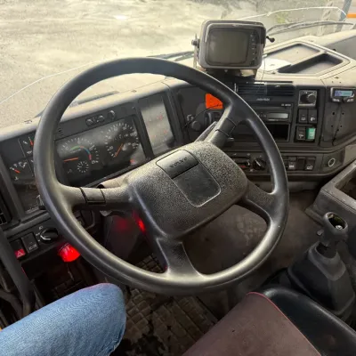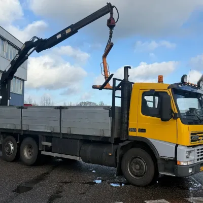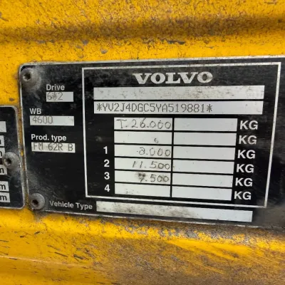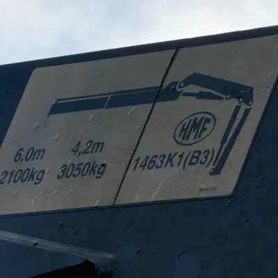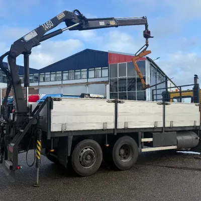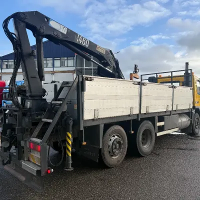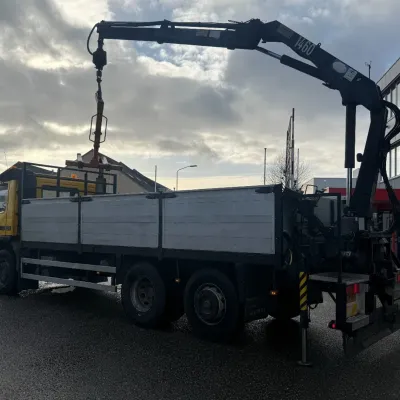 General information Bodywork: Open body Year of construction: 2000 Cab: day Reference number: RHT / VO519881 Registration number: BJ-LH-07 Technical information Number of cylinders: 6 Axle configuration Front axle: Tyre size: 385/65R22.5; Max. axle load: 8000 kg; Steering; Tyre profile left: 30%; Tyre profile right: 30%; Suspension: leaf suspension Rear axle 1: Tyre size: 315/80R22.5; Double wheels; Differential lock; Max. axle load: 11500 kg; Tyre profile left inner: 90%; Tyre profile left outer: 90%; Tyre profile right outer: 90%; Tyre profile right outer: 90%; Reduction: single reduction; Suspension: air suspension Rear axle 2: Tyre size: 315/80R22.5; Lift axle; Max. axle load: 7500 kg; Steering; Tyre profile left: 70%; Tyre profile right: 70%; Suspension: air suspension Measures and weights Empty weight: 12.240 kg GVW: 26.000 kg Wheelbase: 595 cm Functional Dimensions of cargo space: 629 x 252 x 90 cm Crane: HMF 1463K1GG, year of manufacture 2000, on rear of chassis Maintenance APK (MOT): tested until 10/2026 Additional information Please contact Frank de Jong (+31623157042, fj@rhtrucks.nl), Rene Jerphanion (+31612511348, rj@rhtrucks.nl) or Sven Rommens (+31614226034, sr@rhtrucks.nl) for more information