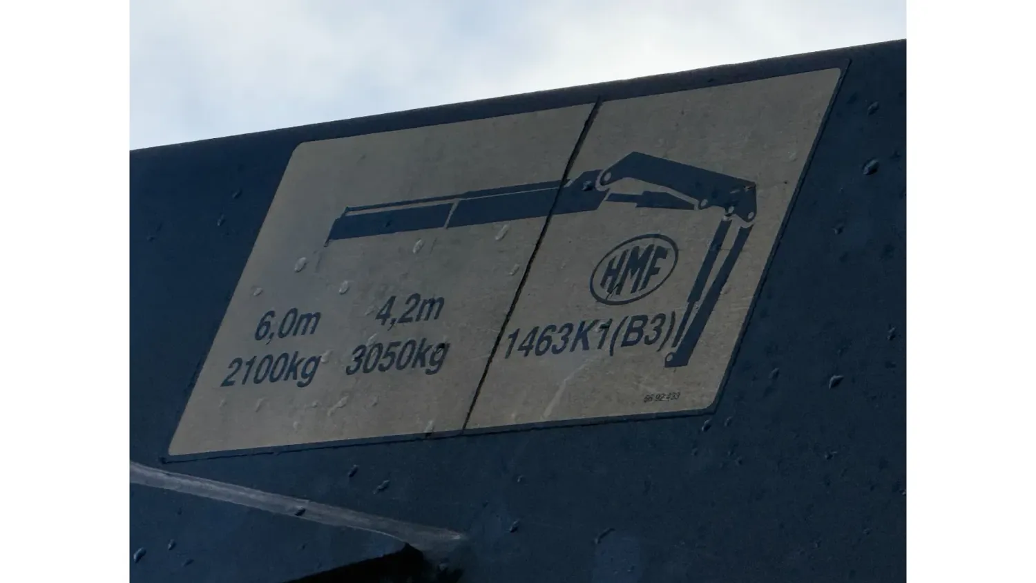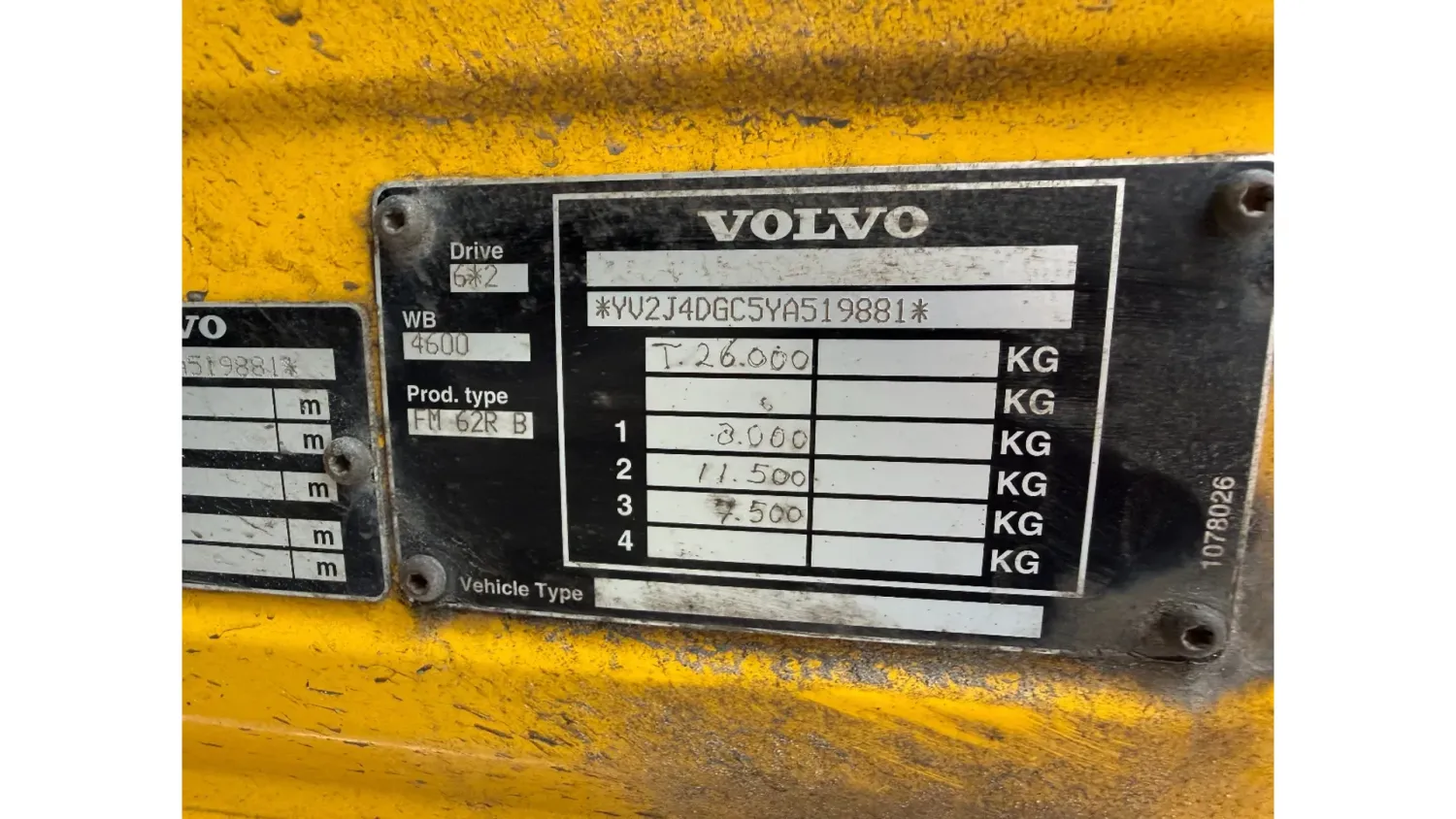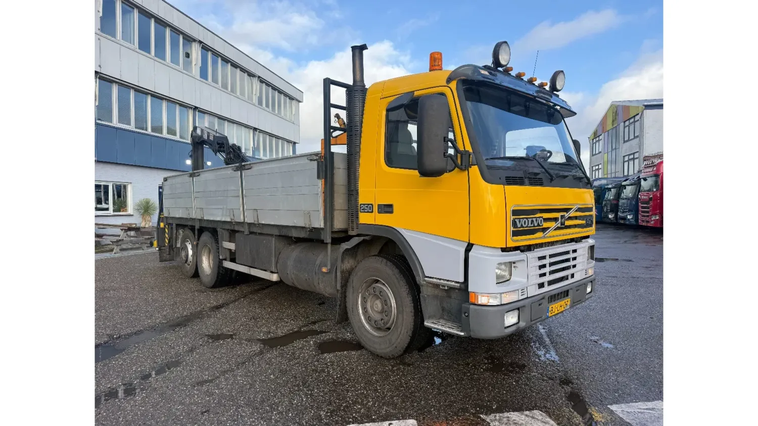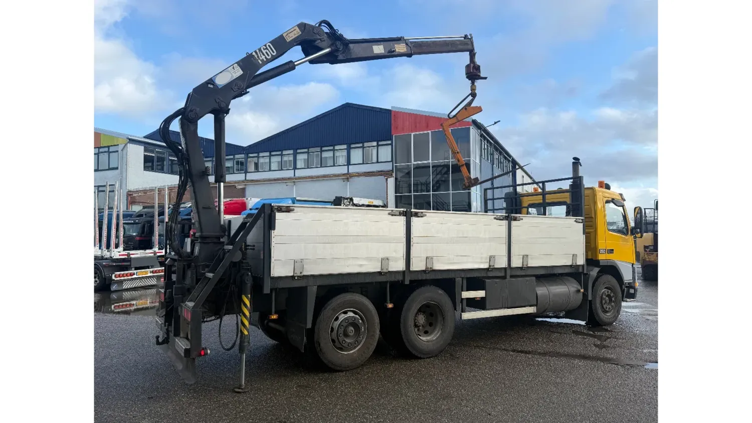 General information Bodywork: Open body Year of construction: 2000 Cab: day Reference number: RHT / VO519881 Registration number: BJ-LH-07 Technical information Number of cylinders: 6 Axle configuration Front axle: Tyre size: 385/65R22.5; Max. axle load: 8000 kg; Steering; Tyre profile left: 30%; Tyre profile right: 30%; Suspension: leaf suspension Rear axle 1: Tyre size: 315/80R22.5; Double wheels; Differential lock; Max. axle load: 11500 kg; Tyre profile left inner: 90%; Tyre profile left outer: 90%; Tyre profile right outer: 90%; Tyre profile right outer: 90%; Reduction: single reduction; Suspension: air suspension Rear axle 2: Tyre size: 315/80R22.5; Lift axle; Max. axle load: 7500 kg; Steering; Tyre profile left: 70%; Tyre profile right: 70%; Suspension: air suspension Measures and weights Empty weight: 12.240 kg GVW: 26.000 kg Wheelbase: 595 cm Functional Dimensions of cargo space: 629 x 252 x 90 cm Crane: HMF 1463K1GG, year of manufacture 2000, on rear of chassis Maintenance APK (MOT): tested until 10/2026 Additional information Please contact Frank de Jong (+31623157042, fj@rhtrucks.nl), Rene Jerphanion (+31612511348, rj@rhtrucks.nl) or Sven Rommens (+31614226034, sr@rhtrucks.nl) for more information