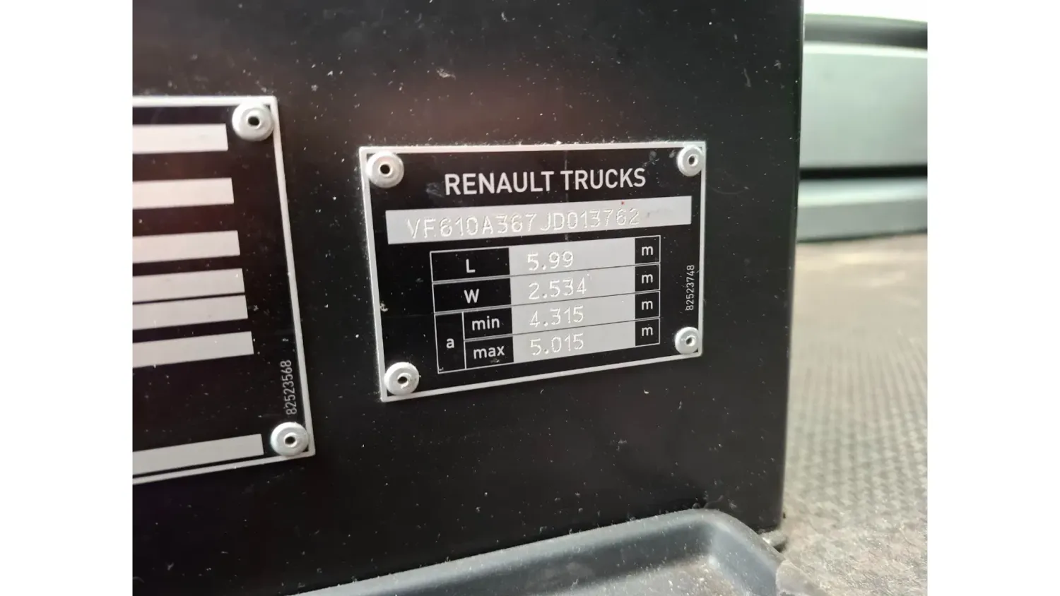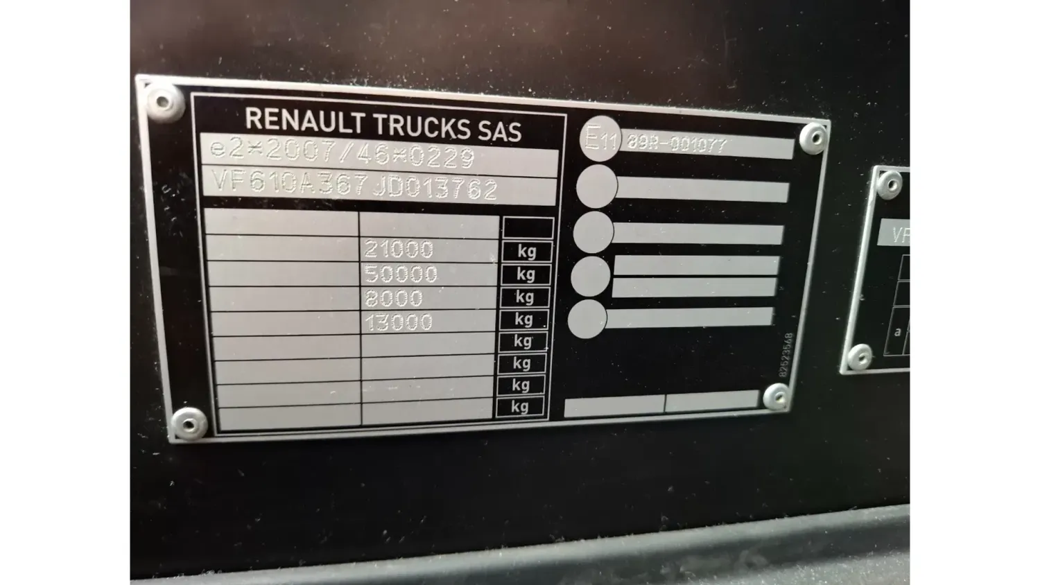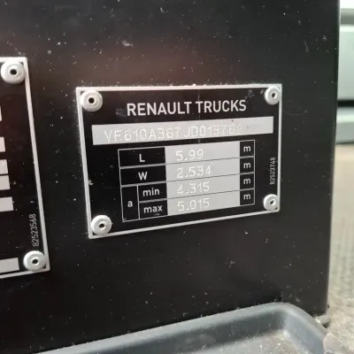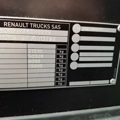 General information Bodywork: Standard tractor Year of construction: 2018 Reference number: T260935358 Drivetrain AdBlue system: Yes Axle configuration Tyre size: 315/70*R22.5 Brakes: disc brakes Front axle: Max. axle load: 8000 kg; Steering; Tyre profile left: 40%; Tyre profile right: 40% Rear axle: Double wheels; Differential lock; Max. axle load: 13000 kg; Tyre profile left inner: 30%; Tyre profile left outer: 30%; Tyre profile right outer: 30%; Tyre profile right outer: 30% Weights Empty weight: 8.274 kg GVW: 21.000 kg Maintenance APK (MOT): tested until 06/2026 Condition General condition: good Technical condition: good Visual appearance: good Damages: none