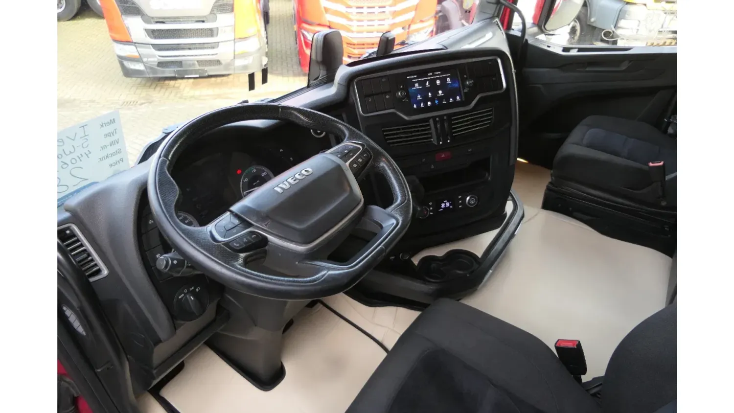 General information Bodywork: Standard tractor Year of construction: 2021 Technical information Number of cylinders: 6 Drivetrain AdBlue system: Yes Axle configuration Make axles: BRIDGESTONE Brakes: disc brakes Front axle: Tyre size: 385/65R22.5; Max. axle load: 8000 kg; Steering; Tyre profile left: 60%; Tyre profile right: 60% Rear axle: Tyre size: 315/70R22.5; Double wheels; Differential lock; Max. axle load: 13000 kg; Tyre profile left inner: 80%; Tyre profile left outer: 80%; Tyre profile right outer: 80%; Tyre profile right outer: 80%; Reduction: single reduction Measures and weights Empty weight: 8.553 kg GVW: 19.000 kg Wheelbase: 379 cm Condition General condition: very good Technical condition: very good Visual appearance: very good Additional information Please contact Olivier Geerts (+31619879049, info@geertstrucks.nl) or Edwin Geerts (+31619879049, edwin@geertstrucks.nl) for more information IVECO S-WAY 510 | Hydraulic | Retarder | 637466Km | 2021 | 2Tanks | Smart Tacho 2 | Alcoas | Full Spoiler | Stand Klima | Navi | 2 Fridges | 2 Sleeping Beds | Seat Heating/Cooling | A/C | ACC | Cruise Control | Automatic Gearbox | Euro6-D | 4X2 | Belgium Truck ViN: WJMM62AVZ0C440624 EXPORT: Transport services by road: Austrian Transit number plates with insurance for 21 days + €550,- Transport services by shipping: Transport to port (Antwerpen/Rotterdam/Amsterdam) + €300,- Transport to port Zeebrugge + €400,- More about the truck: Video of the truck (Youtube): https://youtu.be/HCtrVBXEN08 More about Geerts Trucks & Trailers: Youtube Channel Geerts Trucks & Trailers: https://www.youtube.com/channel/UCP6BJ3kV7kyhJz3p6nDvFzw Instagram Geerts Trucks & Trailers: https://www.instagram.com/geertstrucks.nl/ Facebook Geerts Trucks & Trailers: https://www.facebook.com/GeertsTrucks Tiktok Geerts Trucks & Trailers: https://www.tiktok.com/@geertstrucks.nl Linkedin Geerts Trucks & Trailers: https://www.linkedin.com/in/geerts-trucks-a4a34726b/ Like and Subscribe for our NEWEST stock **No rights can be derived from incorrect information in the advertisement .. GEERTS Trucks & Trailers does its best to ensure that all information is correct**