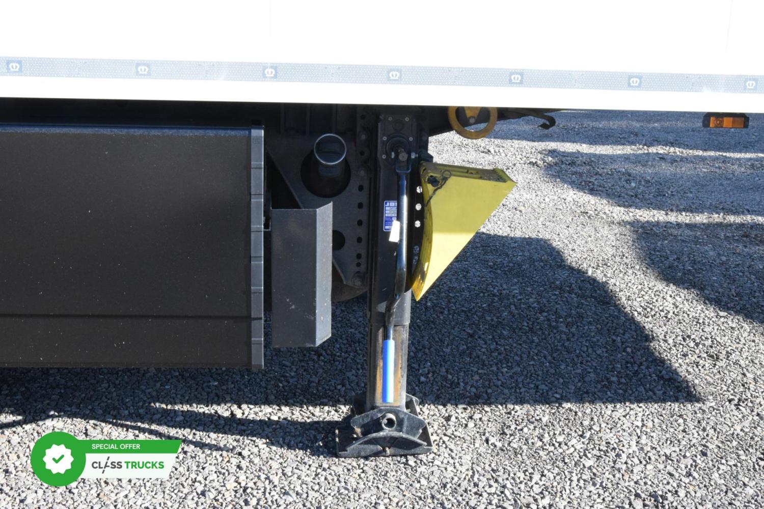 Tool box, PVC, left side behind the axles, dimensions approx. 650x490x450 mm.