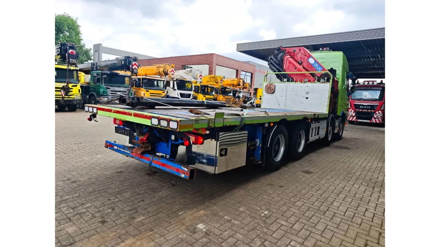 AdBlue system: Yes Year of construction: 2016 Empty weight: 26.565 kg GVW: 46.000 kg Crane: Yes CE mark: yes Reference number: 404 Volvo FH 540 8x4. Year: 2016. Milage: 364.067 KM. Automatic. Weight: 26.565 kg. Max weight: 46.000 kg. Axle load: 1: 10.000 kg. 2: 10.000 kg. 3: 13.000 kg. 4: 13.000 kg. Multifunctional steering wheel. Retarder / Intarder. Airconditioning. Nightheater. Electrical operated windows and mirrors. Fridge. Wheelbase: 1-2: 2000 mm. 1-3: 5100 mm. 1-4: 6450 mm. Sleeper cabin 1 bed. Camera. Audiodisplay. On the back airsuspension. Digital tacho. Hubreduction. VBG trailer coupling. Euro 6 Ad Blue. Dimmensions floor: L: 6550 mm. W: 2550 mm. H: 1180 mm. Tyres: Front: 385/65R22,5 80%. Rear: 315/70R22,5 80%. HMF 8520 K-7. Hours: 4494. 7 x Hydr. extandable. 4 x Mech. extandable. 5 point outriggers. Frontabstutzung. Winch. Radio remote control. ID 404. The General Terms and Conditions of Heinhuis are applicable to all adverts, offers and quotations by Heinhuis, all agreements entered into by Heinhuis and the negotiations preceding them. By any form of response you accept the applicability of the General Terms and Conditions of Heinhuis and you declare that you have taken note of these General Terms and Conditions. Our prices are export netto prices.
