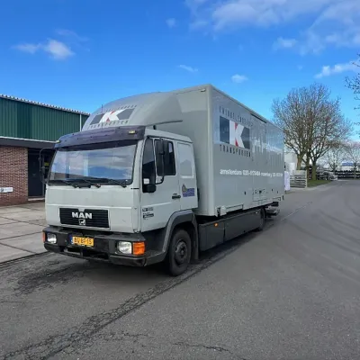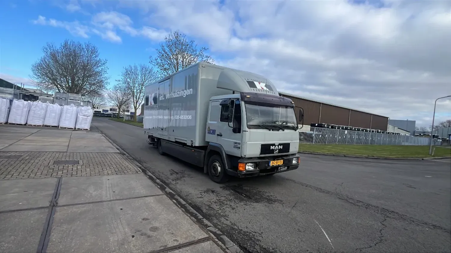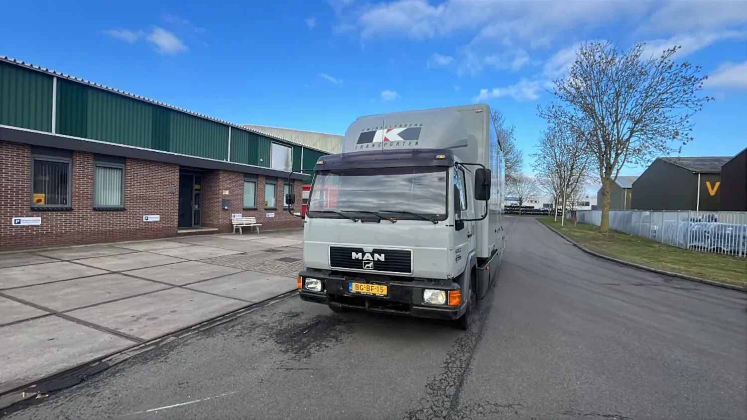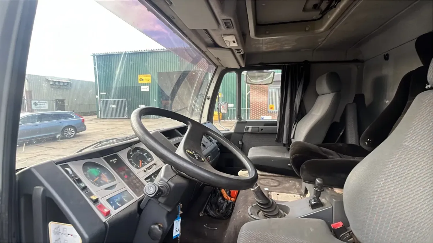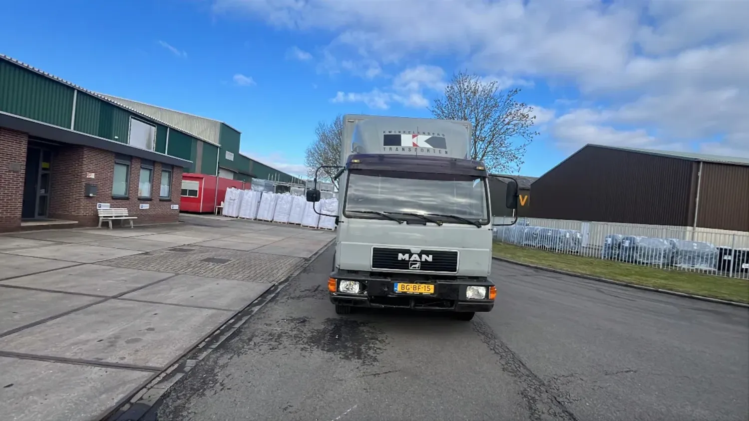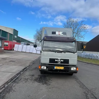 General information Year of construction: 1997 Registration number: BG-BF-15 Technical information Number of cylinders: 6 Front axle: Steering Rear axle: Double wheels Measures and weights Empty weight: 5.000 kg GVW: 11.990 kg Wheelbase: 458 cm Condition General condition: average Technical condition: good Visual appearance: average Truck with interchangeable body Make: MAN Type: 12.224 Engine: 6-cylinder MAN Transmission: Manual Aluminum interchangeable body/container Side door and rear door Damage: Headlight lens replaced. Air suspension intermittently malfunctions. Otherwise, the vehicle drives well. Can be driven unloaded.