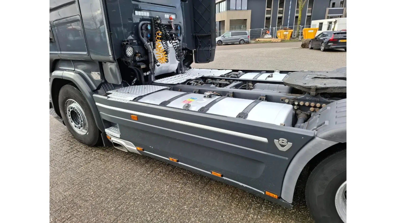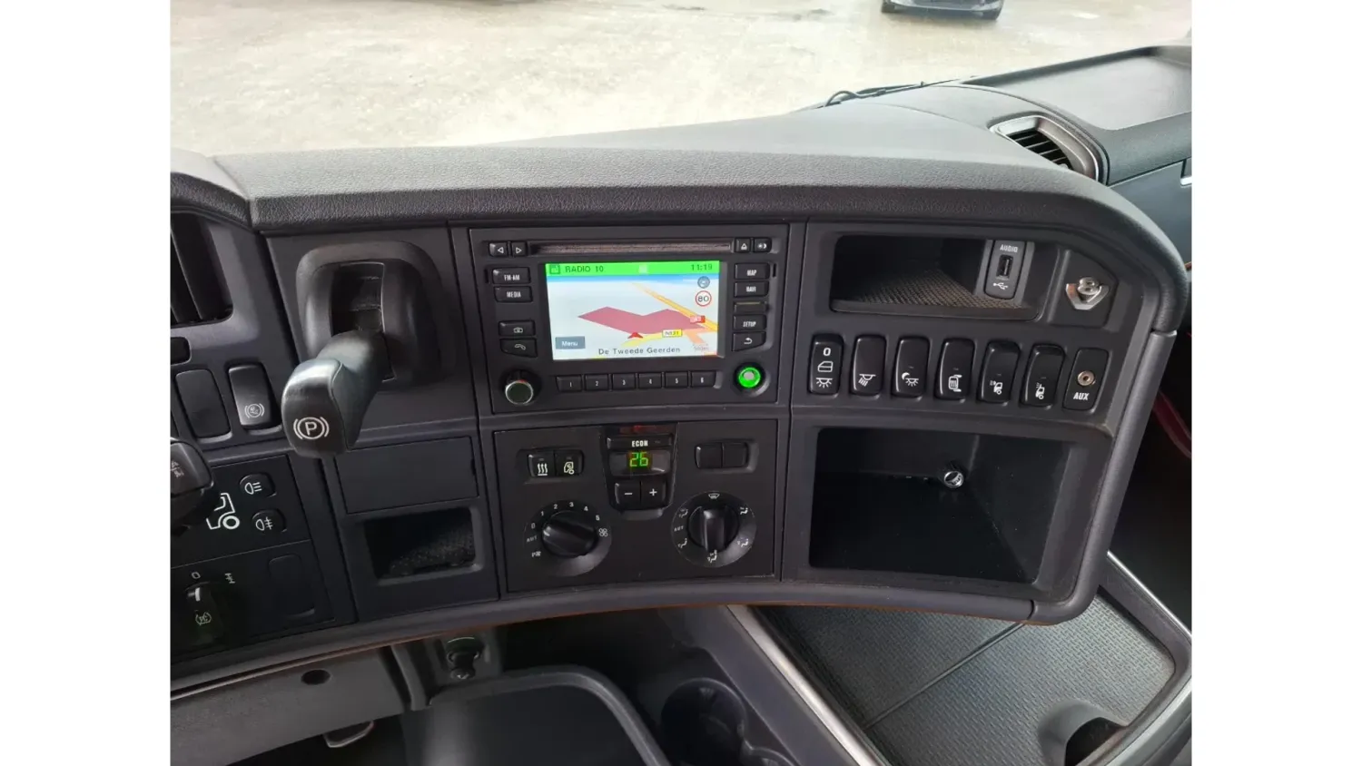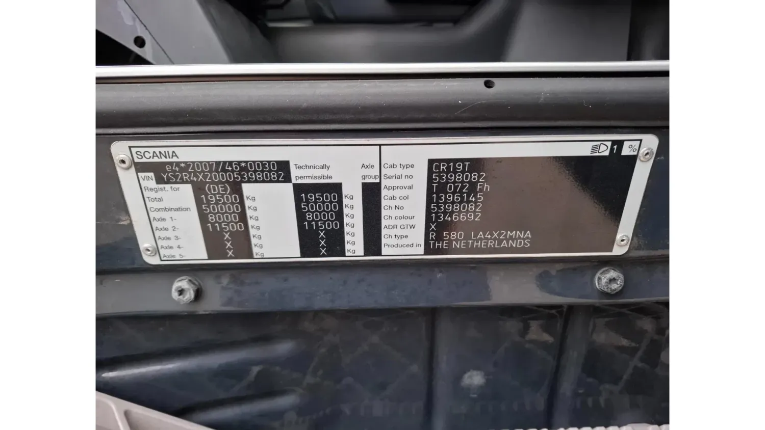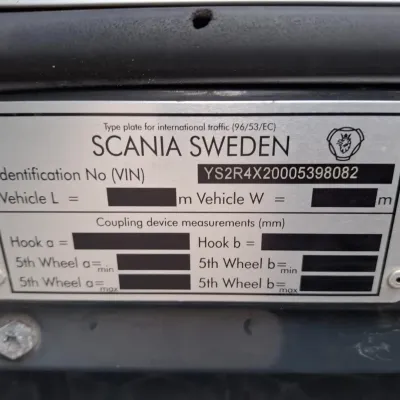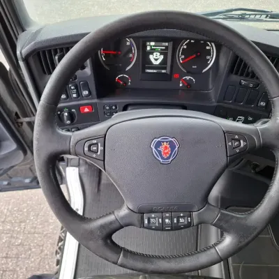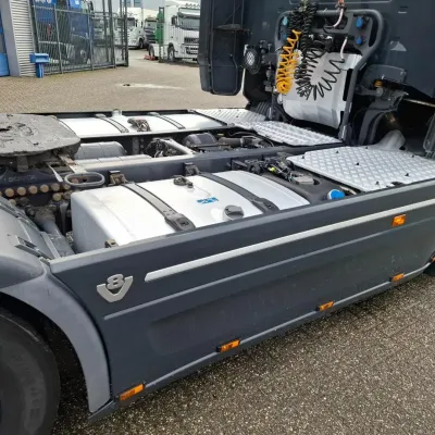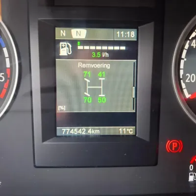 General information Bodywork: Standard tractor Year of construction: 2015 Reference number: T261075666 Registration number: 64-BPB-5 Technical information Number of cylinders: 8 Drivetrain AdBlue system: Yes Axle configuration Brakes: disc brakes Front axle: Tyre size: 385/65*R22.5; Max. axle load: 8000 kg; Steering; Tyre profile left: 30%; Tyre profile right: 30% Rear axle: Tyre size: 315/70*R22.5; Double wheels; Differential lock; Max. axle load: 11500 kg; Tyre profile left inner: 10%; Tyre profile left outer: 10%; Tyre profile right outer: 10%; Tyre profile right outer: 10% Measures and weights Empty weight: 9.100 kg GVW: 19.500 kg Wheelbase: 370 cm Maintenance APK (MOT): tested until 12/2026 Condition General condition: good Technical condition: good Visual appearance: good Damages: none https://youtu.be/07HTqx9NhaA?si=ANCYshGCElNqFSDx