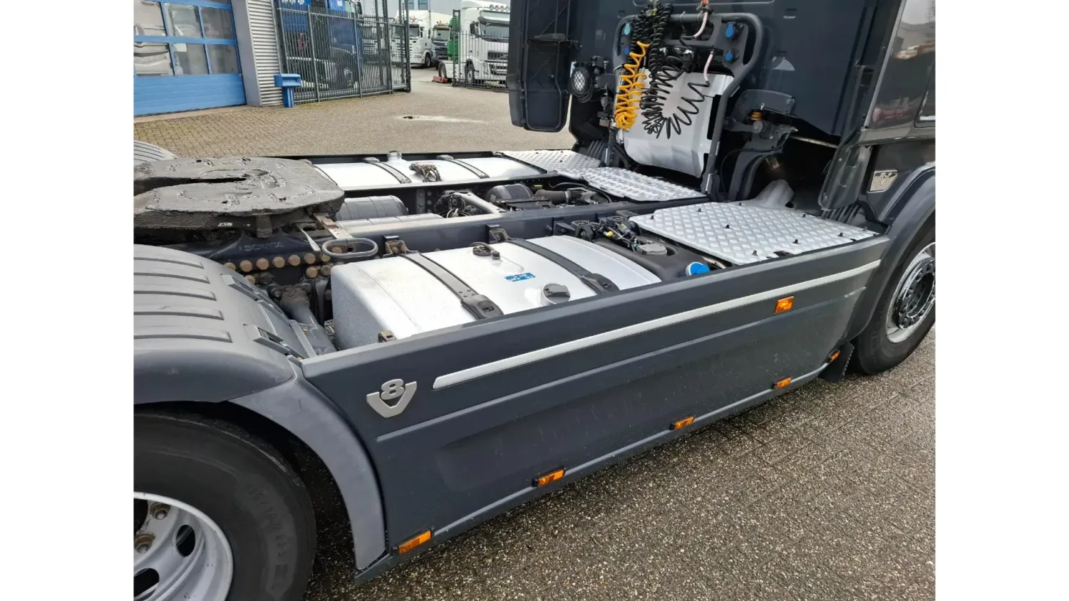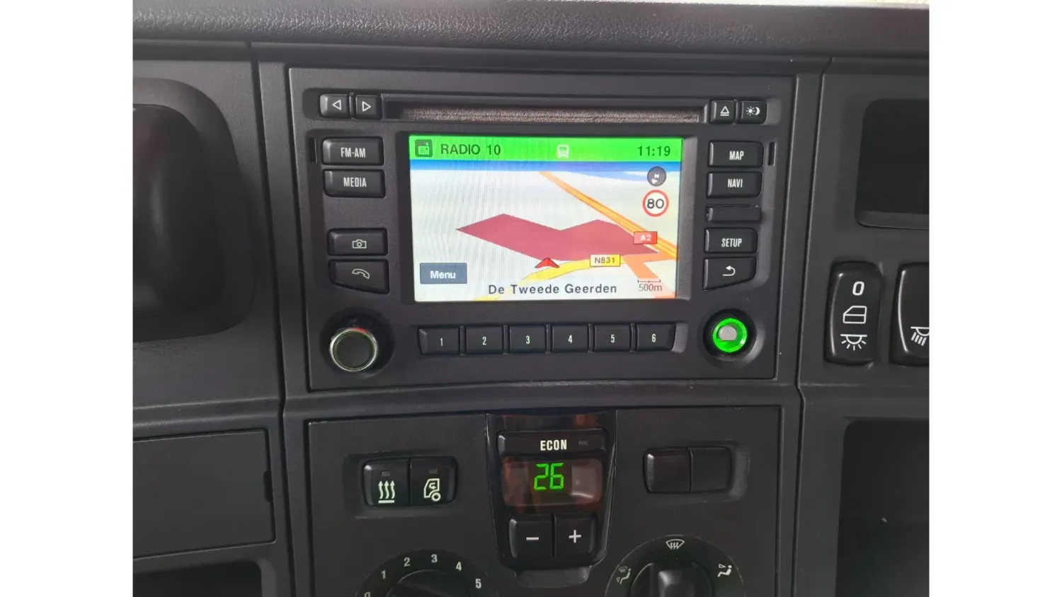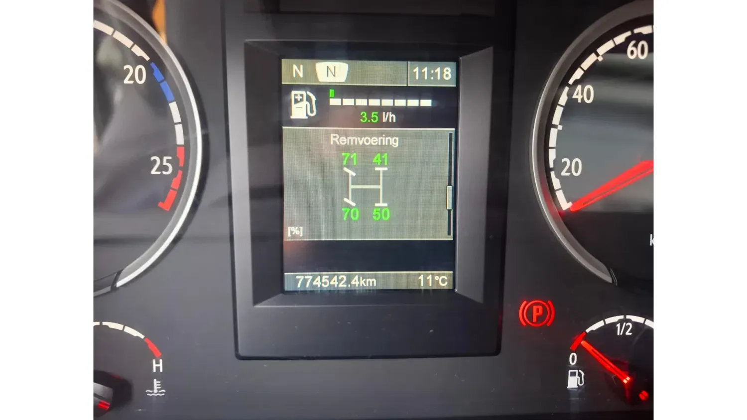 General information Bodywork: Standard tractor Year of construction: 2015 Reference number: T261075666 Registration number: 64-BPB-5 Technical information Number of cylinders: 8 Drivetrain AdBlue system: Yes Axle configuration Brakes: disc brakes Front axle: Tyre size: 385/65*R22.5; Max. axle load: 8000 kg; Steering; Tyre profile left: 30%; Tyre profile right: 30% Rear axle: Tyre size: 315/70*R22.5; Double wheels; Differential lock; Max. axle load: 11500 kg; Tyre profile left inner: 10%; Tyre profile left outer: 10%; Tyre profile right outer: 10%; Tyre profile right outer: 10% Measures and weights Empty weight: 9.100 kg GVW: 19.500 kg Wheelbase: 370 cm Maintenance APK (MOT): tested until 12/2026 Condition General condition: good Technical condition: good Visual appearance: good Damages: none https://youtu.be/07HTqx9NhaA?si=ANCYshGCElNqFSDx