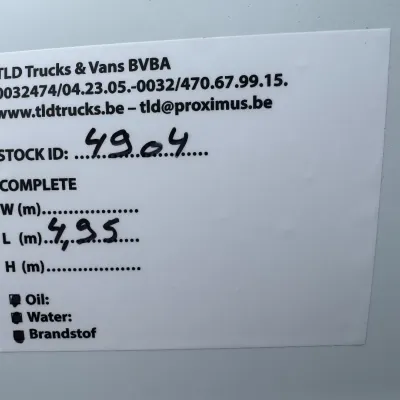 General information Type of body: Delivery van Year of construction: 2006 Cab: single Reference number: 4904 Drivetrain Type of fuel: Diesel Weights Empty weight: 2.055 kg GVW: 2.940 kg Condition General condition: very good Technical condition: very good Visual appearance: very good Financial information VAT/margin: VAT qualifying Additional information Please contact Thierry Leemans (+32474042305, tld@proximus.be) for more information BELGIAN VAN AIRCO VERRY CLEAN VAN