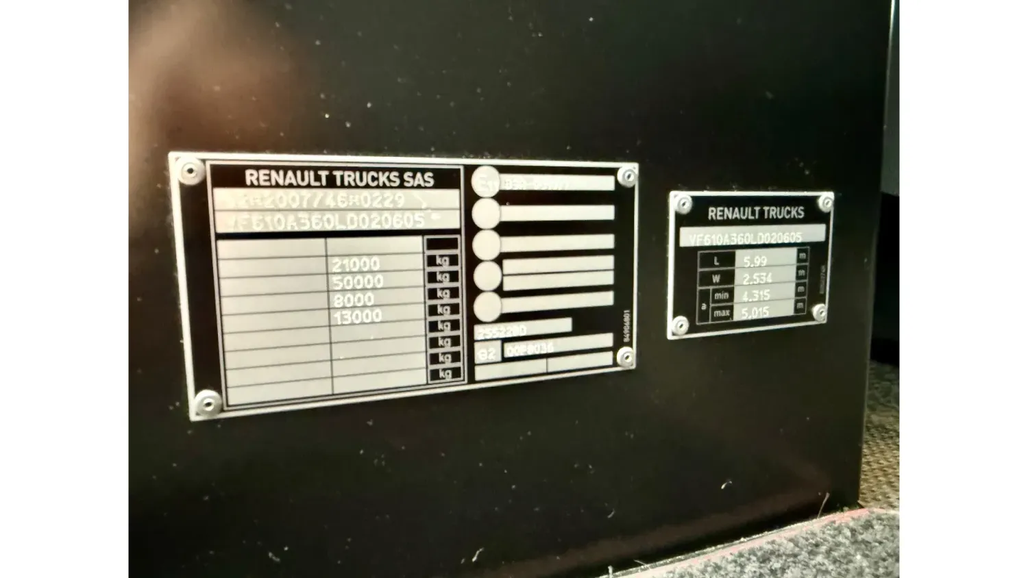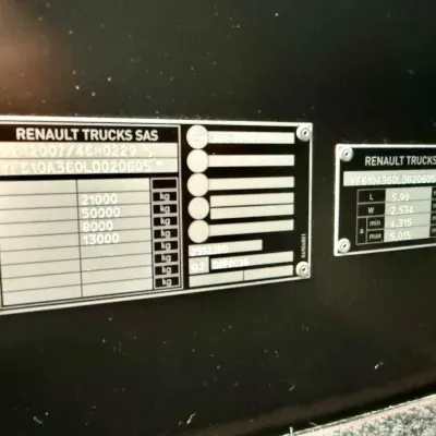 General information Bodywork: Standard tractor Year of construction: 2019 Reference number: T 520 Technical information AdBlue system: Yes Suspension: air suspension Front axle: Steering Empty weight: 8.520 kg GVW: 19.000 kg Condition General condition: good Technical condition: good Visual appearance: good Fahrzeugnummer: Renault T 520 HIGH / Standklima / Voll Luft / Retarder / Euro 6d Fgst.Nr.: VF610A360LD020605 Getriebe: Automatik Federung: Luft / Luft Klima Retarder Standklima Standheizung Kühlbox Abstandshalte-Assistent Spurhalte-Assistent 2 x Diesel tank Euro 6d