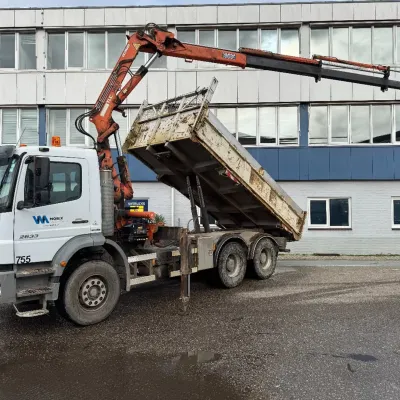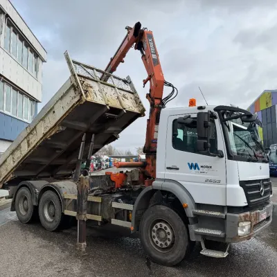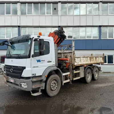 General information Year of construction: 2008 Cab: day Reference number: RHT / MB330177 Drivetrain AdBlue system: Yes Axle configuration Brakes: disc brakes Front axle: Steering Rear axle 1: Double wheels; Differential lock; Reduction: hub reduction Rear axle 2: Double wheels; Differential lock; Reduction: hub reduction Weights Empty weight: 13.560 kg GVW: 26.000 kg Functional Crane: TEREX 145.2-A3, year of manufacture 2008, behind the cab Tipper: Back Maintenance APK (MOT): tested until 10/2026 Additional information Please contact Frank de Jong (+31623157042, fj@rhtrucks.nl), Rene Jerphanion (+31612511348, rj@rhtrucks.nl) or Sven Rommens (+31614226034, sr@rhtrucks.nl) for more information VIDEO AVAILABLE