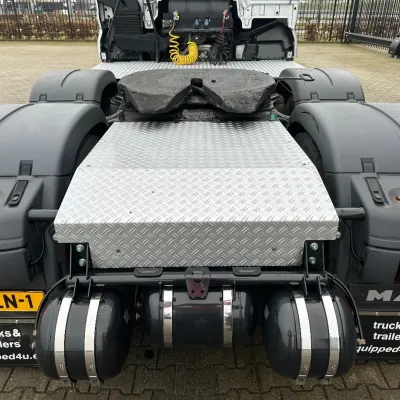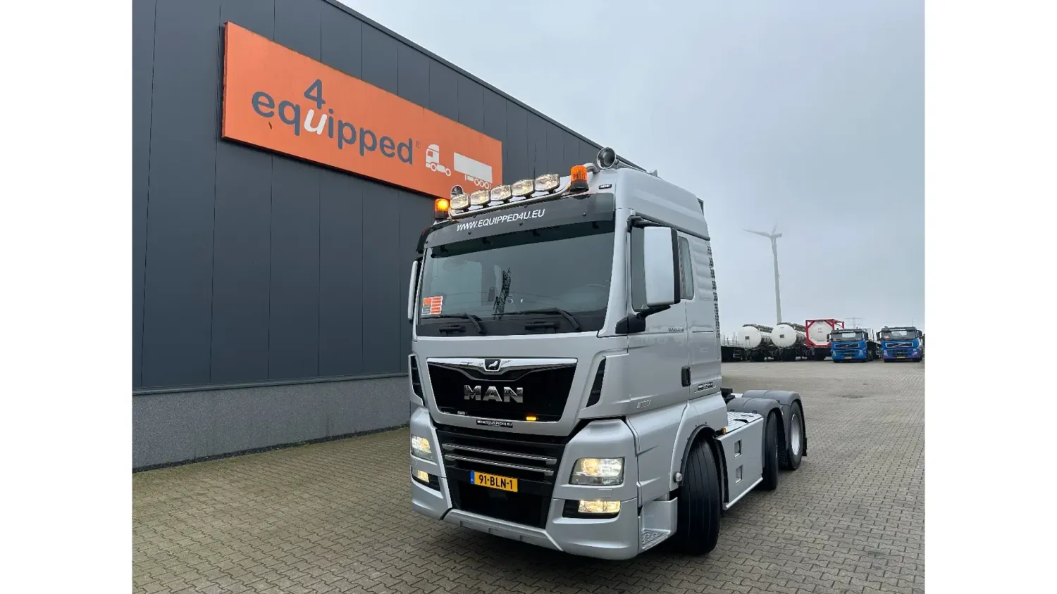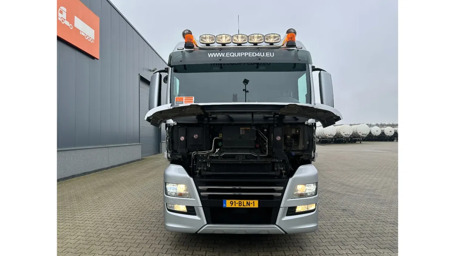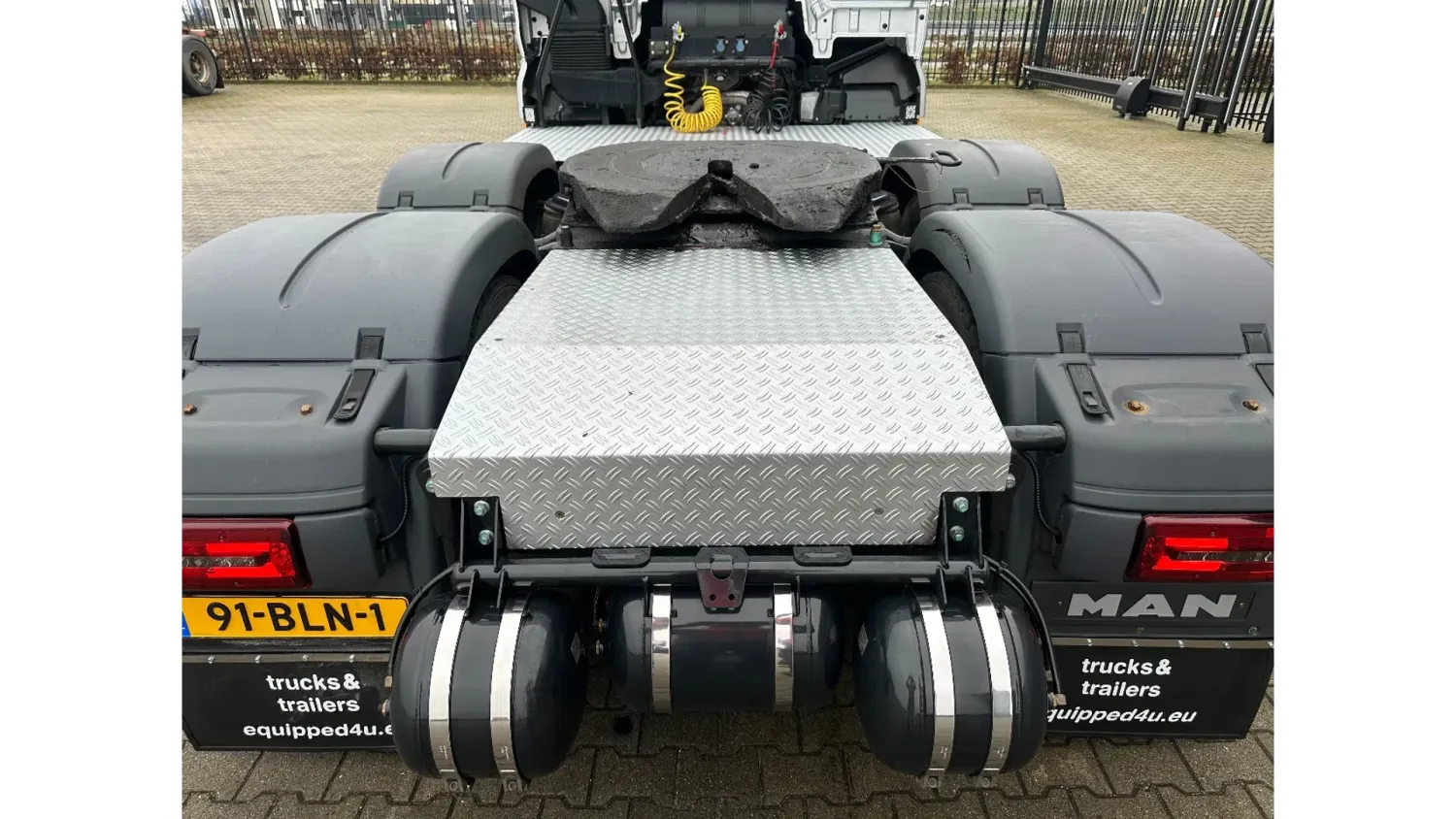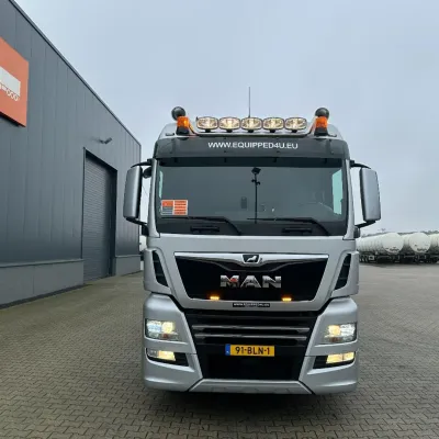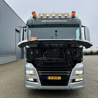 General information Bodywork: Standard tractor Year of construction: 2018 Reference number: 91BLN1 Registration number: 91-BLN-1 Technical information Number of cylinders: 6 Drivetrain AdBlue system: Yes Axle configuration Brakes: disc brakes Front axle: Tyre size: 385/65-R22.5; Max. axle load: 8000 kg; Steering; Tyre profile left: 30%; Tyre profile right: 45% Rear axle 1: Tyre size: 385/55 R22,5; Lift axle; Max. axle load: 7500 kg; Steering; Tyre profile left: 25%; Tyre profile right: 55% Rear axle 2: Tyre size: 315/70-R22.5; Double wheels; Max. axle load: 11500 kg; Tyre profile left inner: 45%; Tyre profile left outer: 30%; Tyre profile right outer: 30%; Tyre profile right outer: 40% Measures and weights Empty weight: 8.687 kg GVW: 28.000 kg Wheelbase: 395 cm Maintenance APK (MOT): tested until 09/2026 Condition General condition: very good Technical condition: very good Visual appearance: very good Additional information Please contact Arne Honingh (+31654262504, sales@equipped4u.eu) for more information very nice 2018 MAN TGX 26.640 6x2 with only original 291.331km, PTO, NATO, 1x bed, radio + navi, camera front + rear, MAN BrakeMatic, flashing lights, spotlights, air horns, sun visor, refrigerator, automatic air conditioning, empty weight: 8.687kg, max mass: 26.000kg, tires front axle: 385/65-R22.5 (profile left: 5mm; profile right: 7mm), tires center axle: 385/55-R22.5 (profile left: 4mm; profile right: 9mm), tires rear axle: 315/80-R22.5 tires (profile left: 5/7mm; profile left, 5/7mm; profile right: 6/5mm), VIN: WMA24XZZ2KP116949, Dutch registration with valid technical inspection (APK )until 01-09-2026