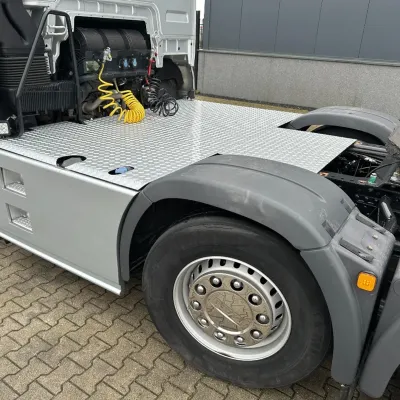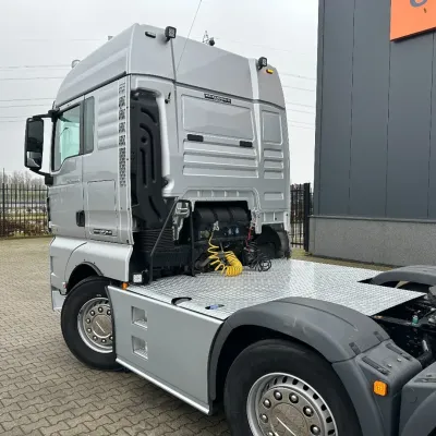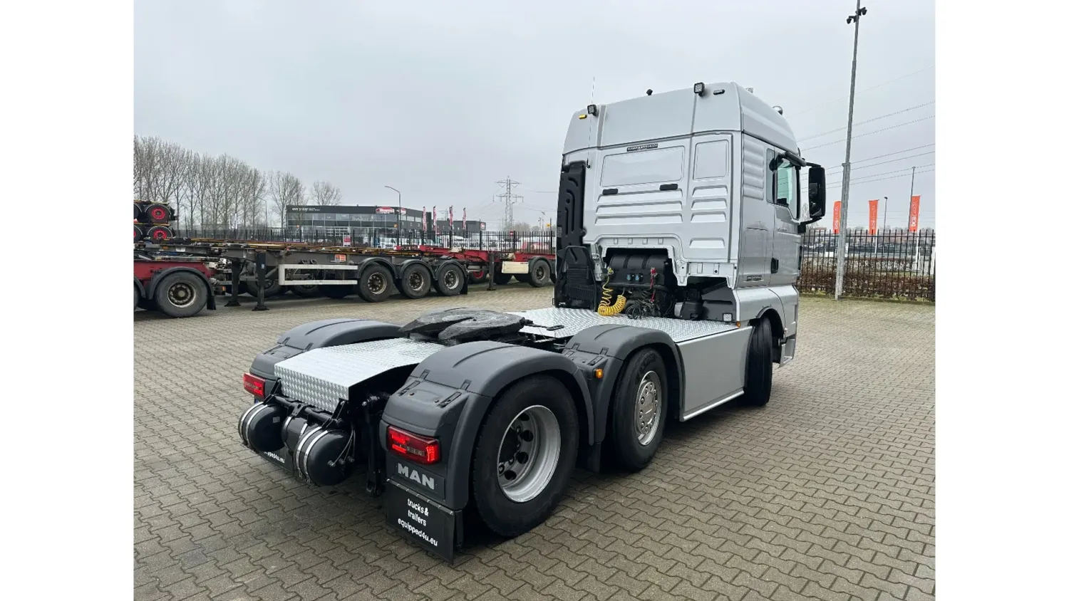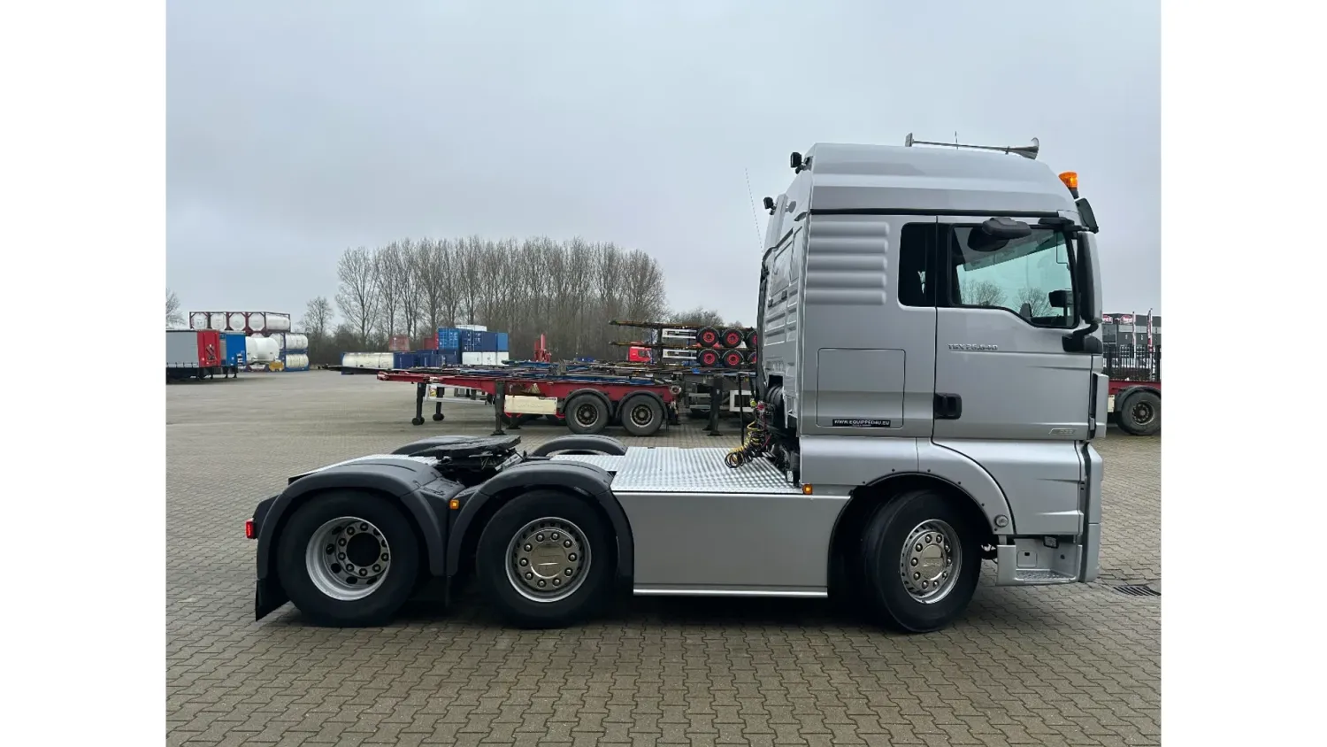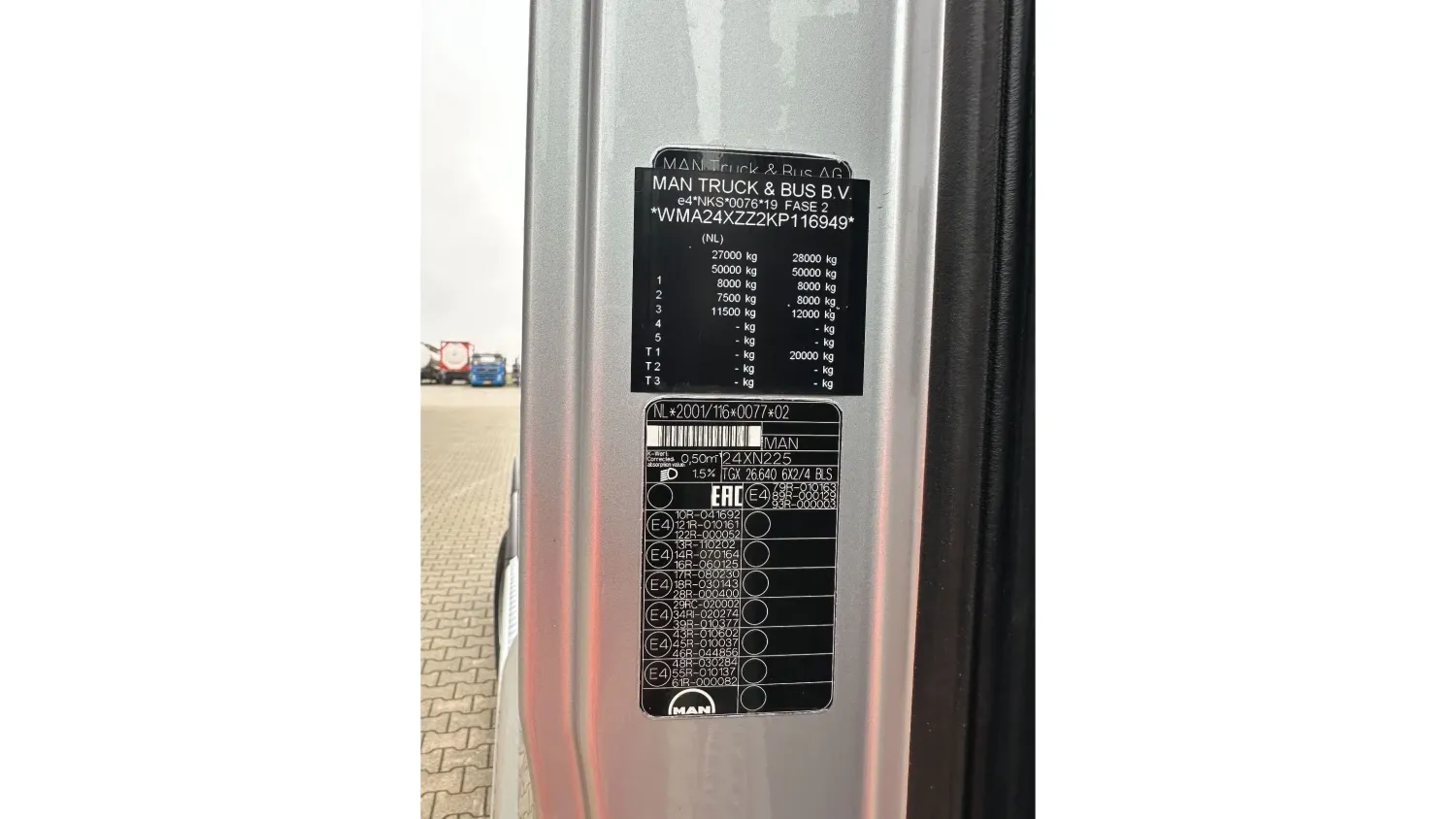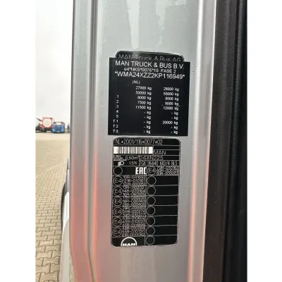 General information Bodywork: Standard tractor Year of construction: 2018 Reference number: 91BLN1 Registration number: 91-BLN-1 Technical information Number of cylinders: 6 Drivetrain AdBlue system: Yes Axle configuration Brakes: disc brakes Front axle: Tyre size: 385/65-R22.5; Max. axle load: 8000 kg; Steering; Tyre profile left: 30%; Tyre profile right: 45% Rear axle 1: Tyre size: 385/55 R22,5; Lift axle; Max. axle load: 7500 kg; Steering; Tyre profile left: 25%; Tyre profile right: 55% Rear axle 2: Tyre size: 315/70-R22.5; Double wheels; Max. axle load: 11500 kg; Tyre profile left inner: 45%; Tyre profile left outer: 30%; Tyre profile right outer: 30%; Tyre profile right outer: 40% Measures and weights Empty weight: 8.687 kg GVW: 28.000 kg Wheelbase: 395 cm Maintenance APK (MOT): tested until 09/2026 Condition General condition: very good Technical condition: very good Visual appearance: very good Additional information Please contact Arne Honingh (+31654262504, sales@equipped4u.eu) for more information very nice 2018 MAN TGX 26.640 6x2 with only original 291.331km, PTO, NATO, 1x bed, radio + navi, camera front + rear, MAN BrakeMatic, flashing lights, spotlights, air horns, sun visor, refrigerator, automatic air conditioning, empty weight: 8.687kg, max mass: 26.000kg, tires front axle: 385/65-R22.5 (profile left: 5mm; profile right: 7mm), tires center axle: 385/55-R22.5 (profile left: 4mm; profile right: 9mm), tires rear axle: 315/80-R22.5 tires (profile left: 5/7mm; profile left, 5/7mm; profile right: 6/5mm), VIN: WMA24XZZ2KP116949, Dutch registration with valid technical inspection (APK )until 01-09-2026