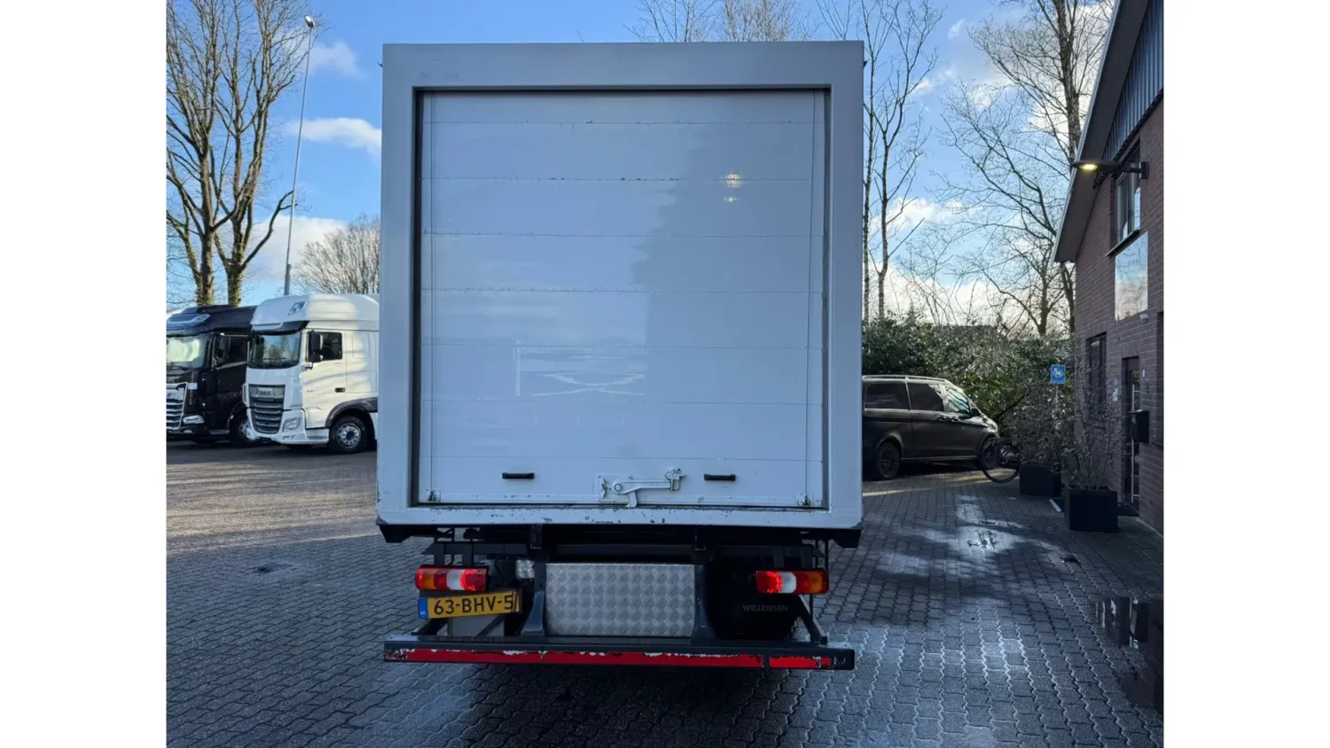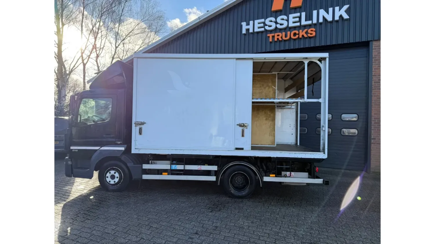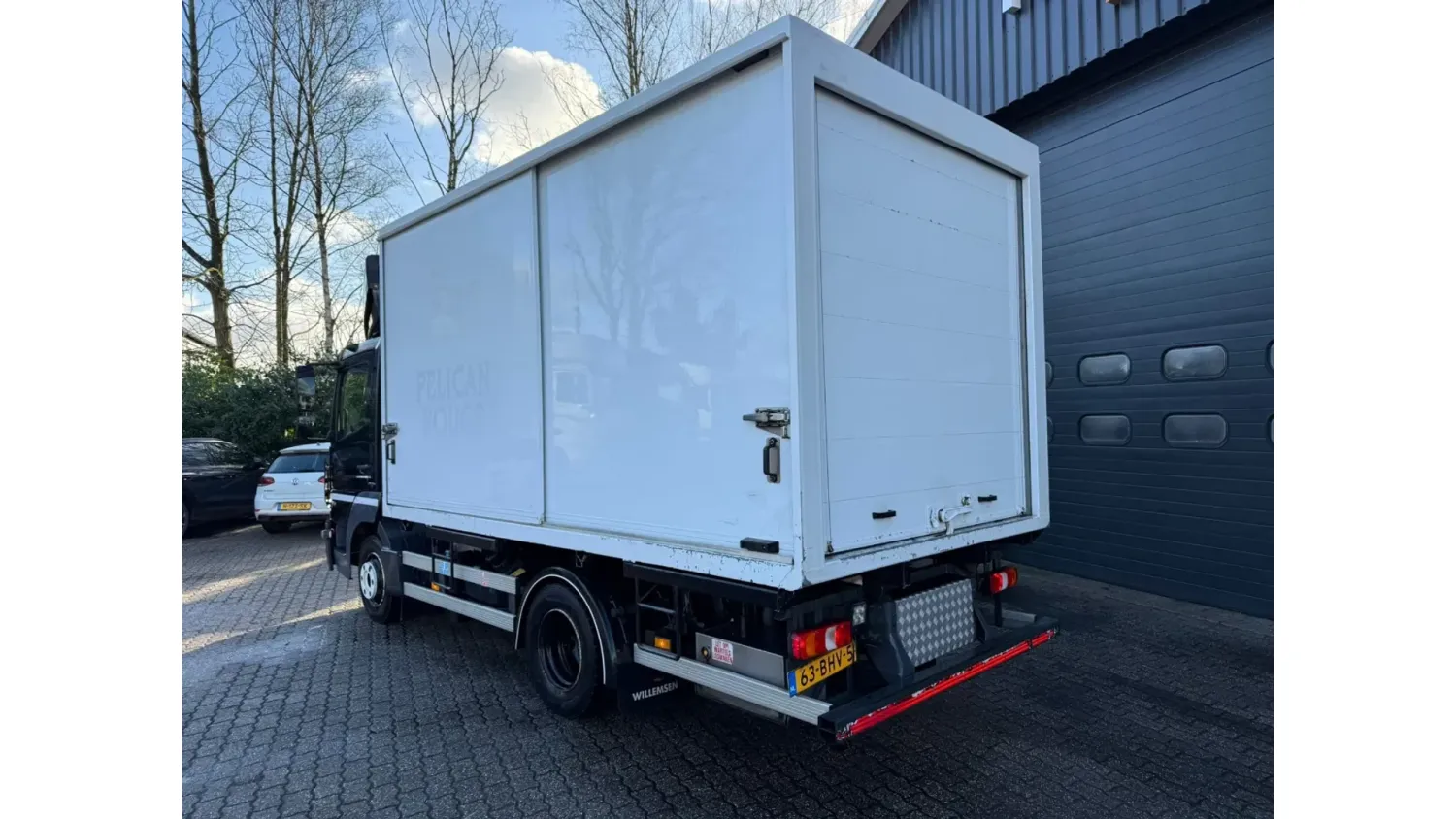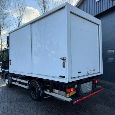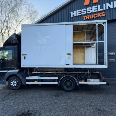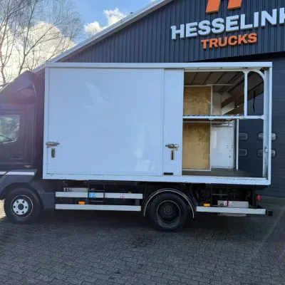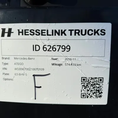 General information Year of construction: 2016 Cab: day Reference number: 626799 Registration number: 63-BHV-5 Technical information Number of cylinders: 4 Drivetrain AdBlue system: Yes Axle configuration Brakes: disc brakes Front axle: Max. axle load: 3600 kg; Steering; Tyre profile left: 40%; Tyre profile right: 40% Rear axle: Max. axle load: 5700 kg; Tyre profile left: 40%; Tyre profile right: 40% Measures and weights Empty weight: 3.975 kg GVW: 8.600 kg Wheelbase: 302 cm Condition General condition: very good Technical condition: very good Visual appearance: very good Damages: none Additional information Please contact John Hesselink (+31610500123, john@hesselink-trucks.nl), Witek Kempa (+31651223758, info@hesselink-trucks.nl) or Christel Hesselink (+31 6 21445092, info@hesselink-trucks.nl) for more information Mercedes-Benz 816 BJ 11-2016 574.833KM BOX/BDF Systeem Hydraulisch Liftsysteem BDF Automaat Airco NL Truck