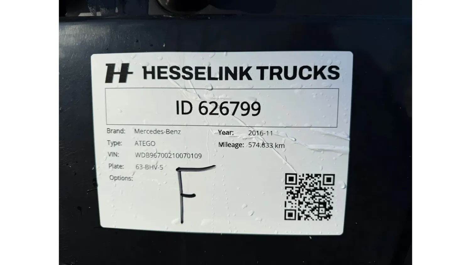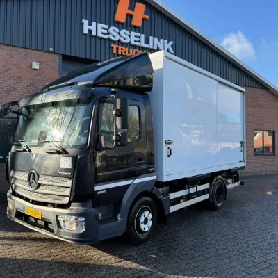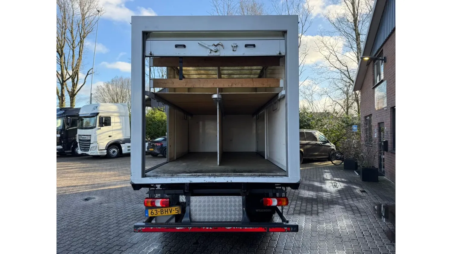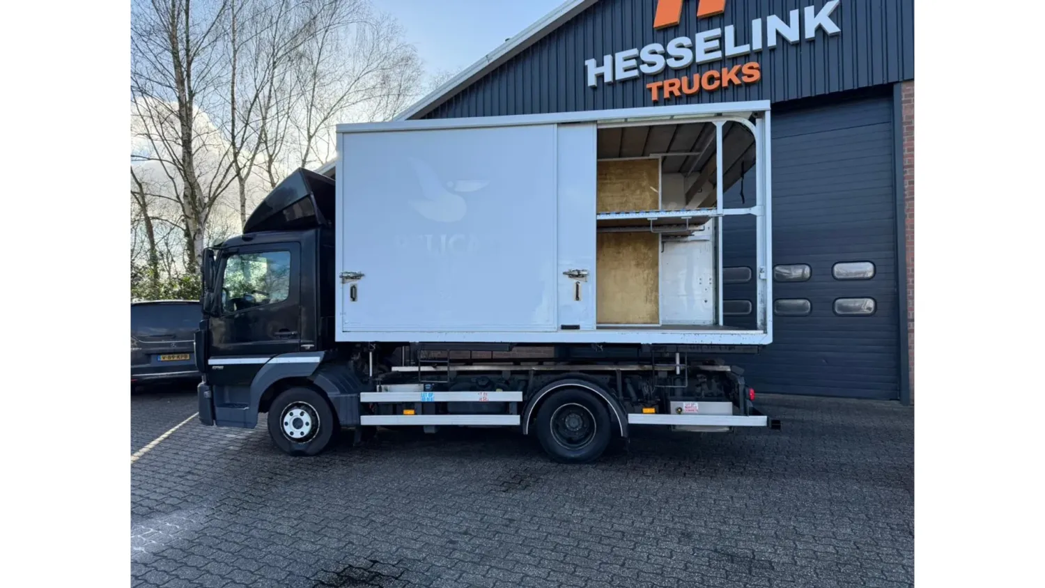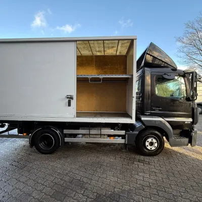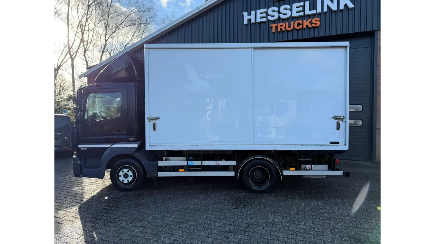 General information Year of construction: 2016 Cab: day Reference number: 626799 Registration number: 63-BHV-5 Technical information Number of cylinders: 4 Drivetrain AdBlue system: Yes Axle configuration Brakes: disc brakes Front axle: Max. axle load: 3600 kg; Steering; Tyre profile left: 40%; Tyre profile right: 40% Rear axle: Max. axle load: 5700 kg; Tyre profile left: 40%; Tyre profile right: 40% Measures and weights Empty weight: 3.975 kg GVW: 8.600 kg Wheelbase: 302 cm Condition General condition: very good Technical condition: very good Visual appearance: very good Damages: none Additional information Please contact John Hesselink (+31610500123, john@hesselink-trucks.nl), Witek Kempa (+31651223758, info@hesselink-trucks.nl) or Christel Hesselink (+31 6 21445092, info@hesselink-trucks.nl) for more information Mercedes-Benz 816 BJ 11-2016 574.833KM BOX/BDF Systeem Hydraulisch Liftsysteem BDF Automaat Airco NL Truck