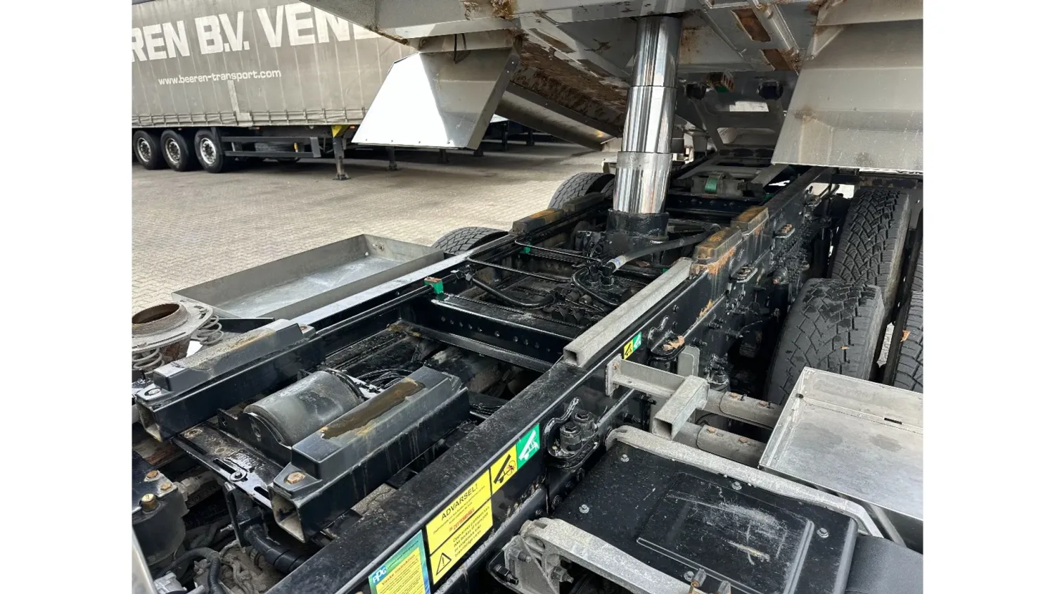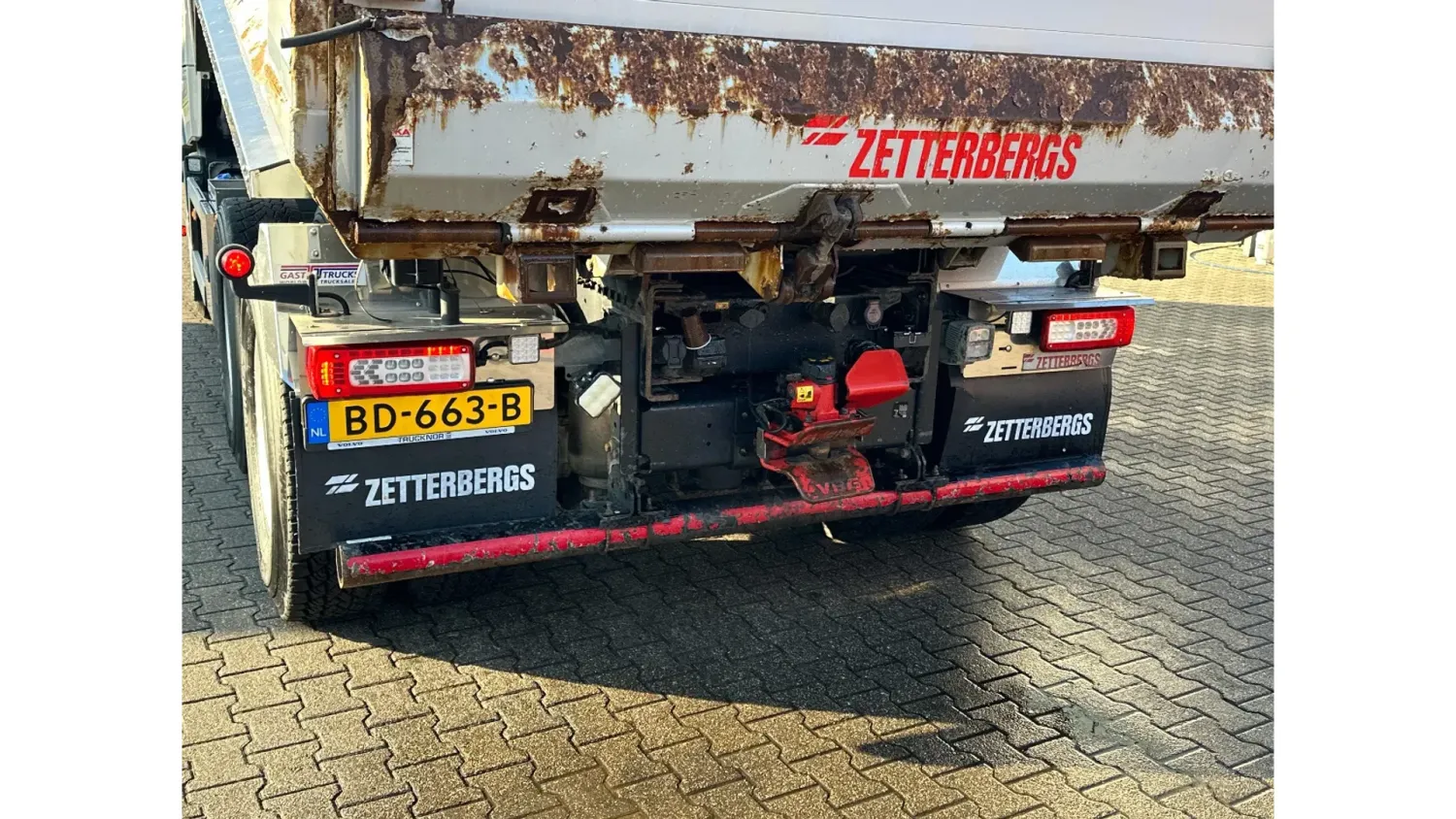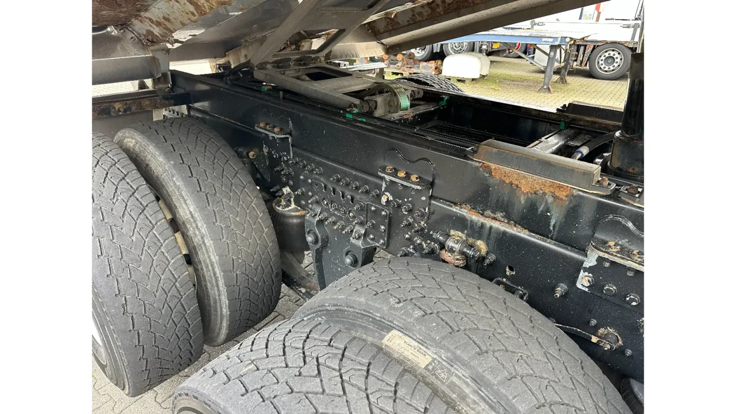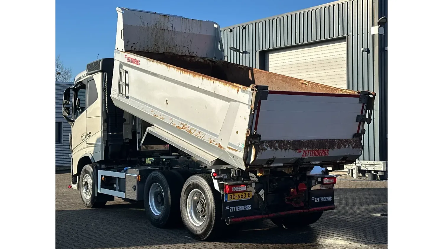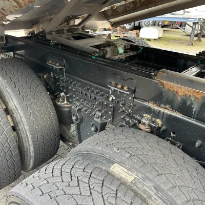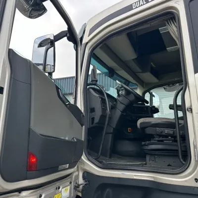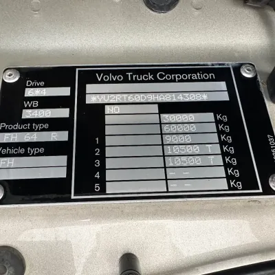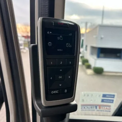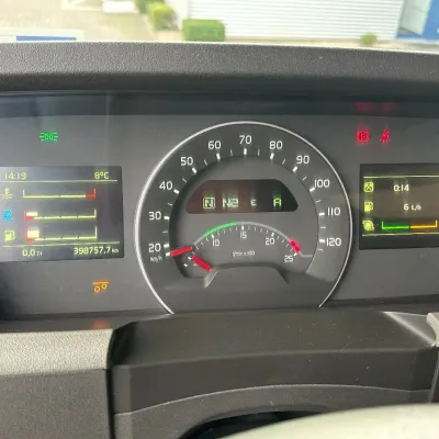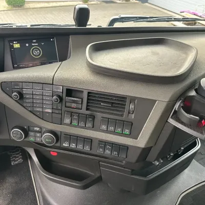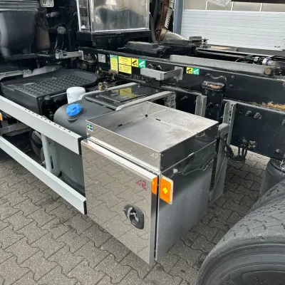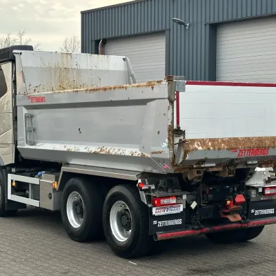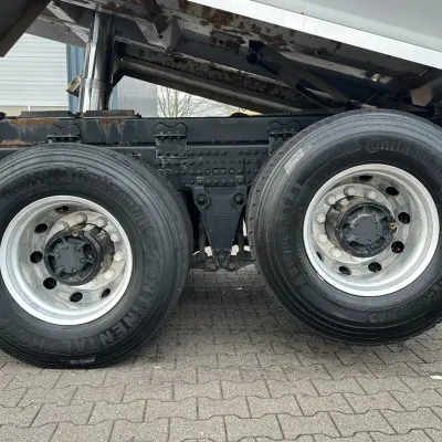 General information Year of construction: 2018 Reference number: 31585 Registration number: BD-663-B Technical information Number of cylinders: 6 Drivetrain AdBlue system: Yes Transmission Transmission: I-SHIFT DUAL CLUTCH, Automatic Axle configuration Front axle: Tyre size: 385/65 R22.5; Alloy wheels; Max. axle load: 9000 kg; Steering; Tyre profile left: 30%; Tyre profile right: 30% Rear axle 1: Tyre size: 315/80 R22.5; Double wheels; Alloy wheels; Max. axle load: 10500 kg; Tyre profile left inner: 20%; Tyre profile left outer: 20%; Tyre profile right outer: 20%; Tyre profile right outer: 20%; Reduction: hub reduction Rear axle 2: Tyre size: 315/80 R22.5; Double wheels; Alloy wheels; Lift axle; Max. axle load: 10500 kg; Tyre profile left inner: 50%; Tyre profile left outer: 50%; Tyre profile right outer: 50%; Tyre profile right outer: 50%; Reduction: hub reduction Measures and weights Empty weight: 13.375 kg GVW: 30.000 kg Wheelbase: 340 cm Functional Tipper: Back Condition General condition: good Technical condition: good Visual appearance: good Damages: none