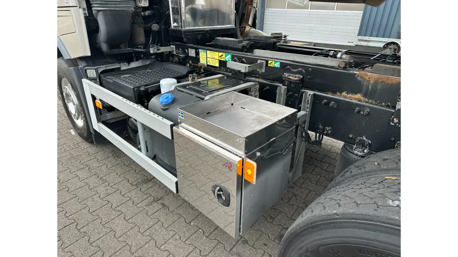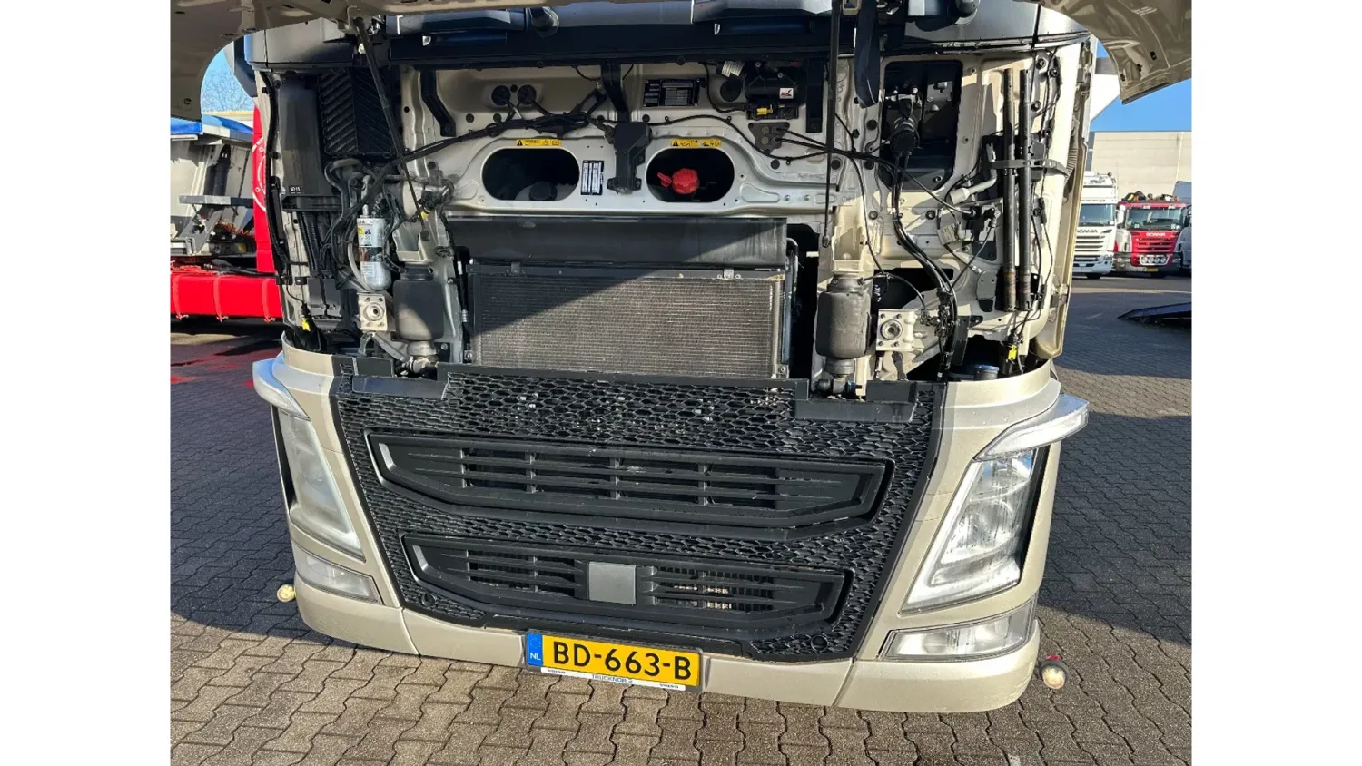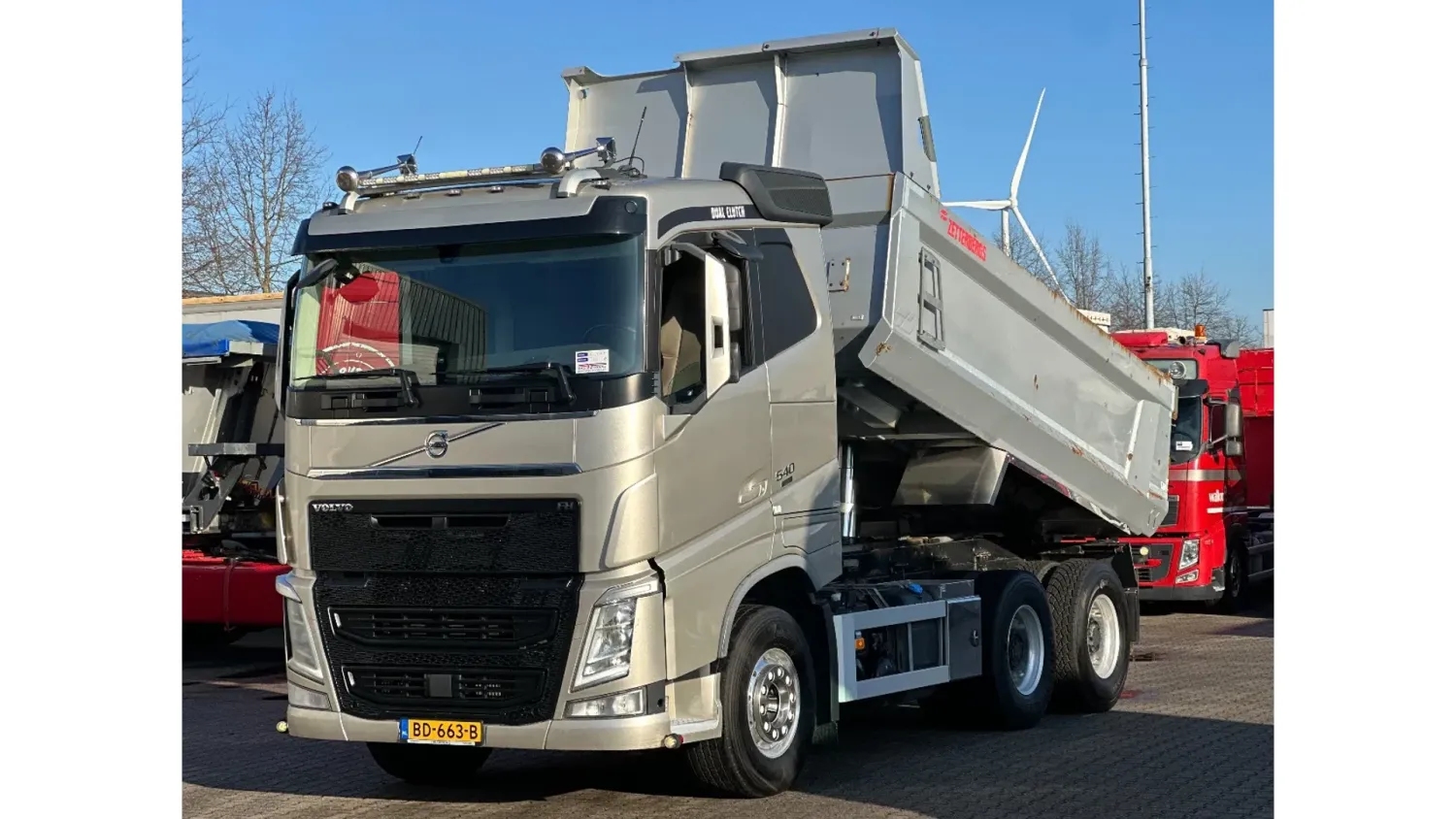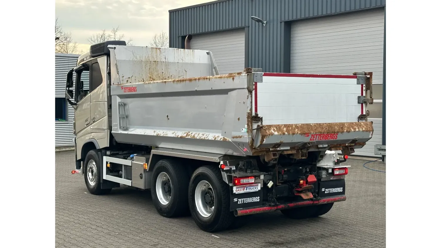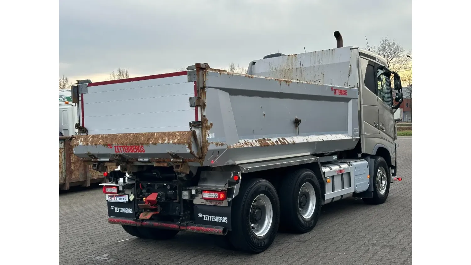 General information Year of construction: 2018 Reference number: 31585 Registration number: BD-663-B Technical information Number of cylinders: 6 Drivetrain AdBlue system: Yes Transmission Transmission: I-SHIFT DUAL CLUTCH, Automatic Axle configuration Front axle: Tyre size: 385/65 R22.5; Alloy wheels; Max. axle load: 9000 kg; Steering; Tyre profile left: 30%; Tyre profile right: 30% Rear axle 1: Tyre size: 315/80 R22.5; Double wheels; Alloy wheels; Max. axle load: 10500 kg; Tyre profile left inner: 20%; Tyre profile left outer: 20%; Tyre profile right outer: 20%; Tyre profile right outer: 20%; Reduction: hub reduction Rear axle 2: Tyre size: 315/80 R22.5; Double wheels; Alloy wheels; Lift axle; Max. axle load: 10500 kg; Tyre profile left inner: 50%; Tyre profile left outer: 50%; Tyre profile right outer: 50%; Tyre profile right outer: 50%; Reduction: hub reduction Measures and weights Empty weight: 13.375 kg GVW: 30.000 kg Wheelbase: 340 cm Functional Tipper: Back Condition General condition: good Technical condition: good Visual appearance: good Damages: none