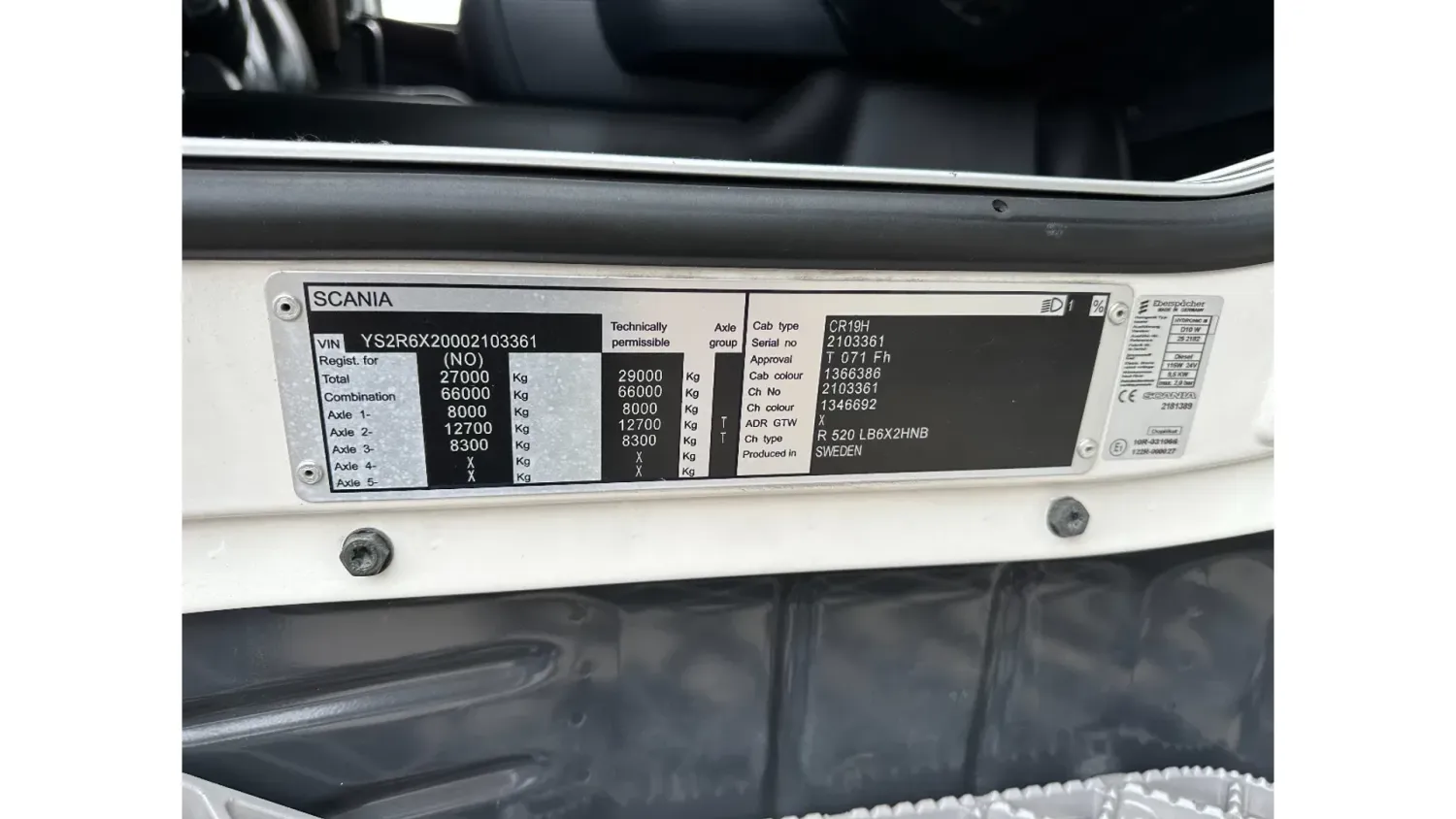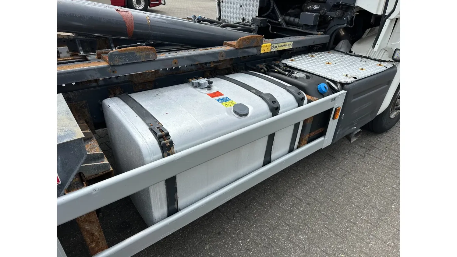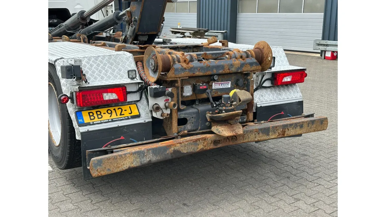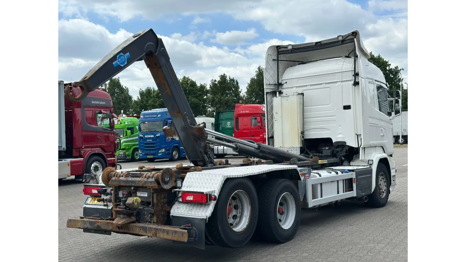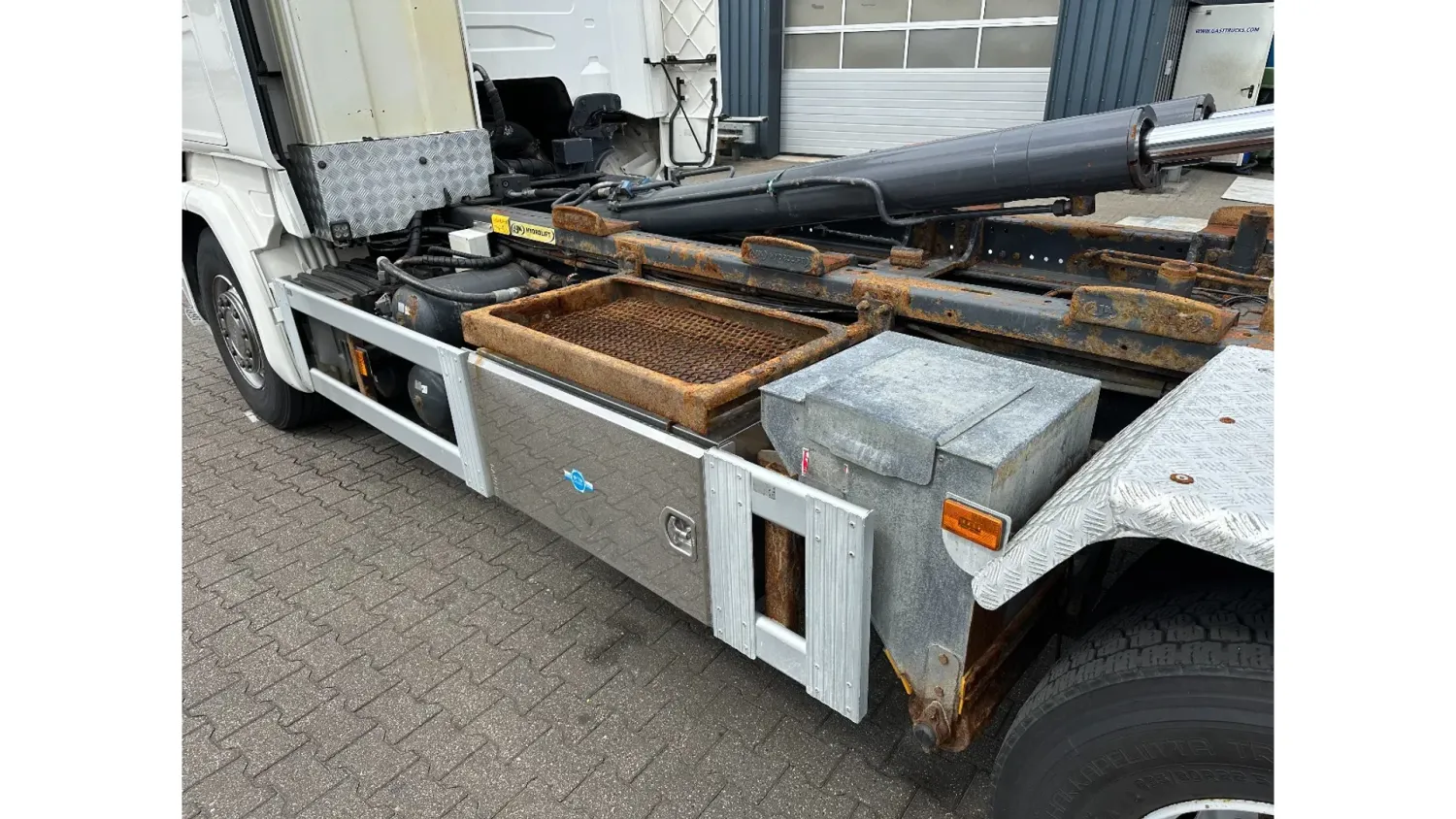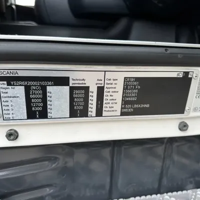 General information Bodywork: Hook arm system Year of construction: 2014 Reference number: 31024 Registration number: BB-912-J Technical information Number of cylinders: 8 Drivetrain AdBlue system: Yes Axle configuration Front axle: Tyre size: 385/65R22.5; Max. axle load: 8000 kg; Steering Rear axle 1: Tyre size: 295/80R22.5; Double wheels; Max. axle load: 11500 kg Rear axle 2: Tyre size: 295/80R22.5; Double wheels; Lift axle; Max. axle load: 7500 kg Measures and weights Empty weight: 13.155 kg GVW: 29.000 kg Wheelbase: 450 cm Condition General condition: good Technical condition: good Visual appearance: good Additional information Please contact Dave Dorssers (+31611825518, dave@gasttrucks.com), Mike Broere (+31622221710, mike@gasttrucks.com) or Laurens Reiniers (+31646755610, laurens@gasttrucks.com) for more information