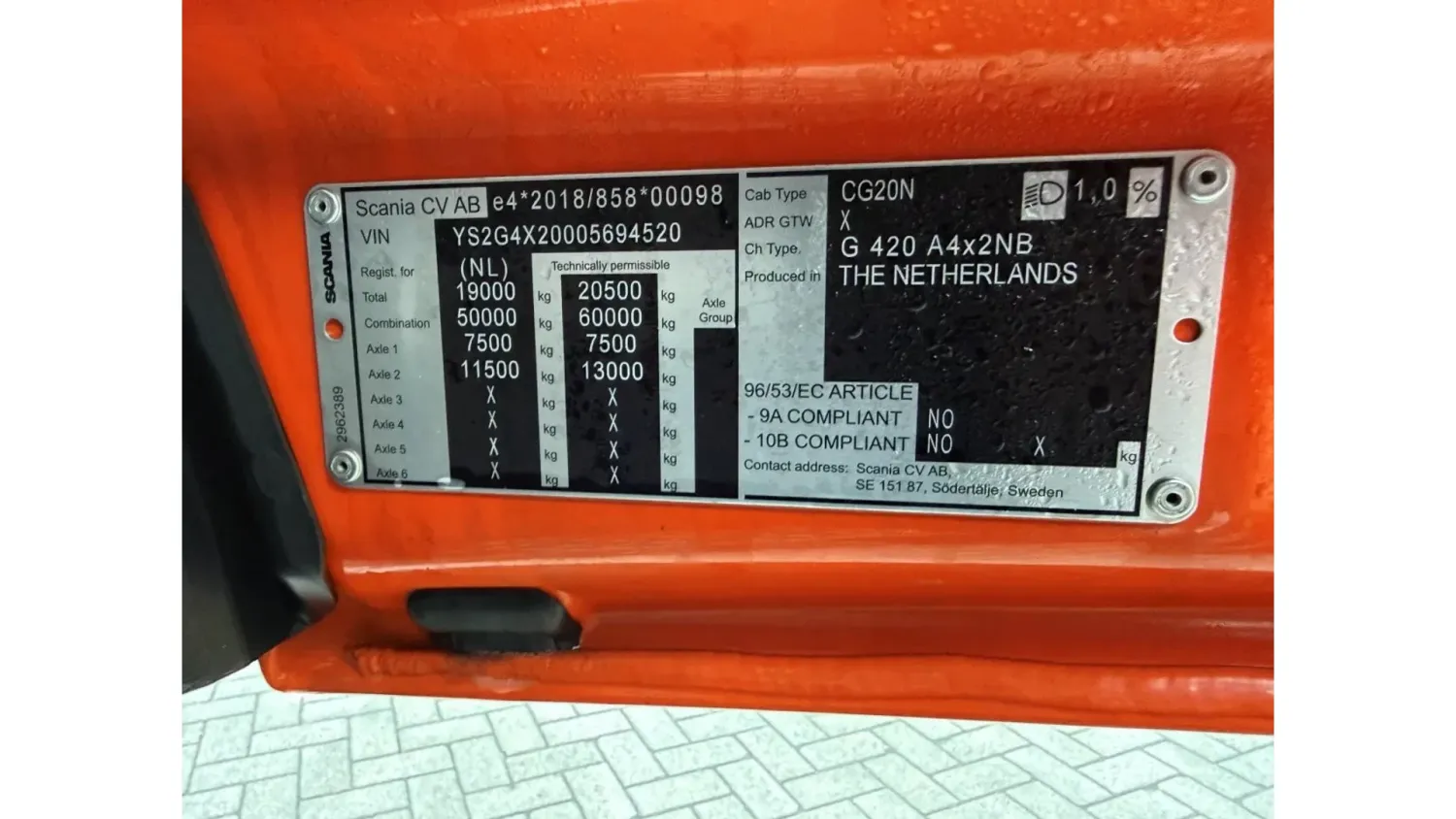 General information Bodywork: Standard tractor Year of construction: 2023 Reference number: T261007688 Registration number: 47-BVD-9 Technical information Number of cylinders: 6 Drivetrain AdBlue system: Yes Transmission Transmission: G25CM1 R O, Automatic Axle configuration Tyre size: 315/70*R22.5 Brakes: disc brakes Front axle: Max. axle load: 7500 kg; Steering; Tyre profile left: 60%; Tyre profile right: 60% Rear axle: Double wheels; Differential lock; Max. axle load: 11500 kg; Tyre profile left inner: 50%; Tyre profile left outer: 50%; Tyre profile right outer: 50%; Tyre profile right outer: 50% Measures and weights Empty weight: 7.567 kg GVW: 20.500 kg Wheelbase: 375 cm Condition Damages: damaged vehicle (not roadworthy) https://youtube.com/shorts/A3YC5Ljl7R0