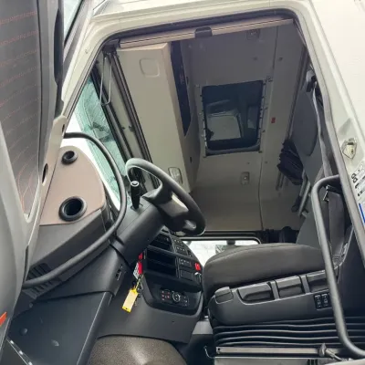 General information Bodywork: Standard tractor Year of construction: 2022 Reference number: 3853113 Technical information Number of cylinders: 6 Drivetrain AdBlue system: Yes Transmission Transmission: TRAXON, 12 gears, Automatic Axle configuration Tyre size: 315/80 R22,5 Brakes: disc brakes Front axle: Steering; Tyre profile left: 50%; Tyre profile right: 50%; Suspension: parabolic suspension Rear axle: Double wheels; Differential lock; Tyre profile left inner: 50%; Tyre profile left outer: 50%; Tyre profile right outer: 50%; Tyre profile right outer: 50%; Suspension: air suspension Measures and weights GVW: 20.500 kg Wheelbase: 380 cm