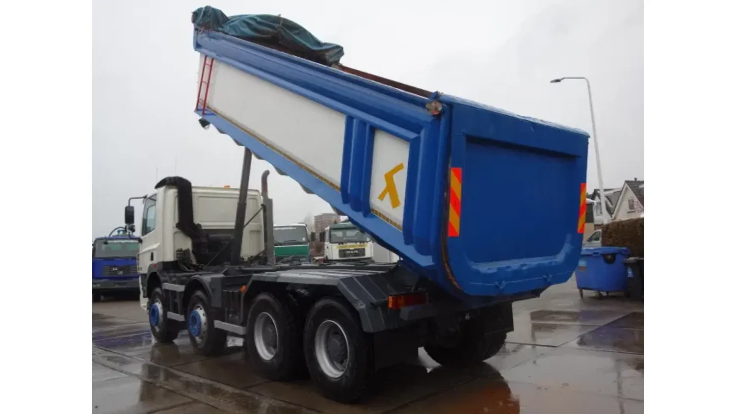 General information Year of construction: 2005 Axle configuration Front axle 1: Steering; Tyre profile left: 80%; Tyre profile right: 80% Front axle 2: Steering; Tyre profile left: 80%; Tyre profile right: 80% Rear axle 1: Double wheels; Tyre profile left inner: 80%; Tyre profile left outer: 80%; Tyre profile right outer: 80%; Tyre profile right outer: 80%; Reduction: hub reduction Rear axle 2: Double wheels; Tyre profile left inner: 80%; Tyre profile left outer: 80%; Tyre profile right outer: 80%; Tyre profile right outer: 80%; Reduction: hub reduction Functional Tipper: Back Condition General condition: very good Technical condition: very good Visual appearance: very good Additional information Please contact Andre (+31653172919), Henri (+31622203712) or Andre (+31102222200) for more information BACKSITE TIPPER