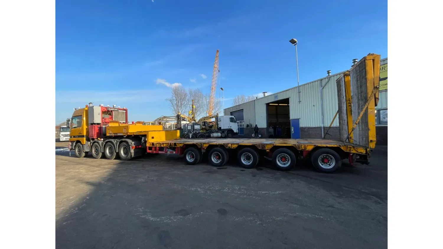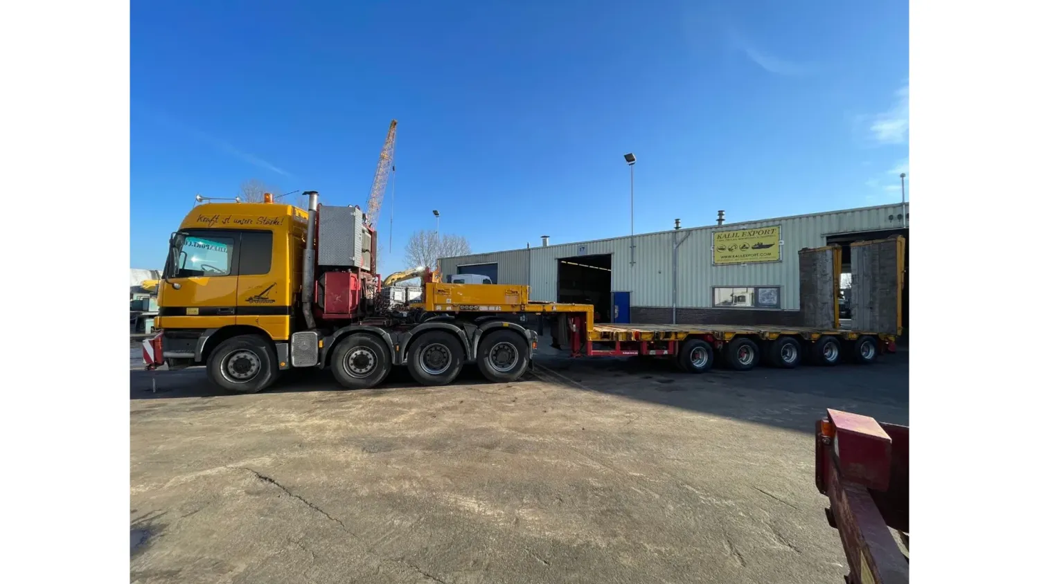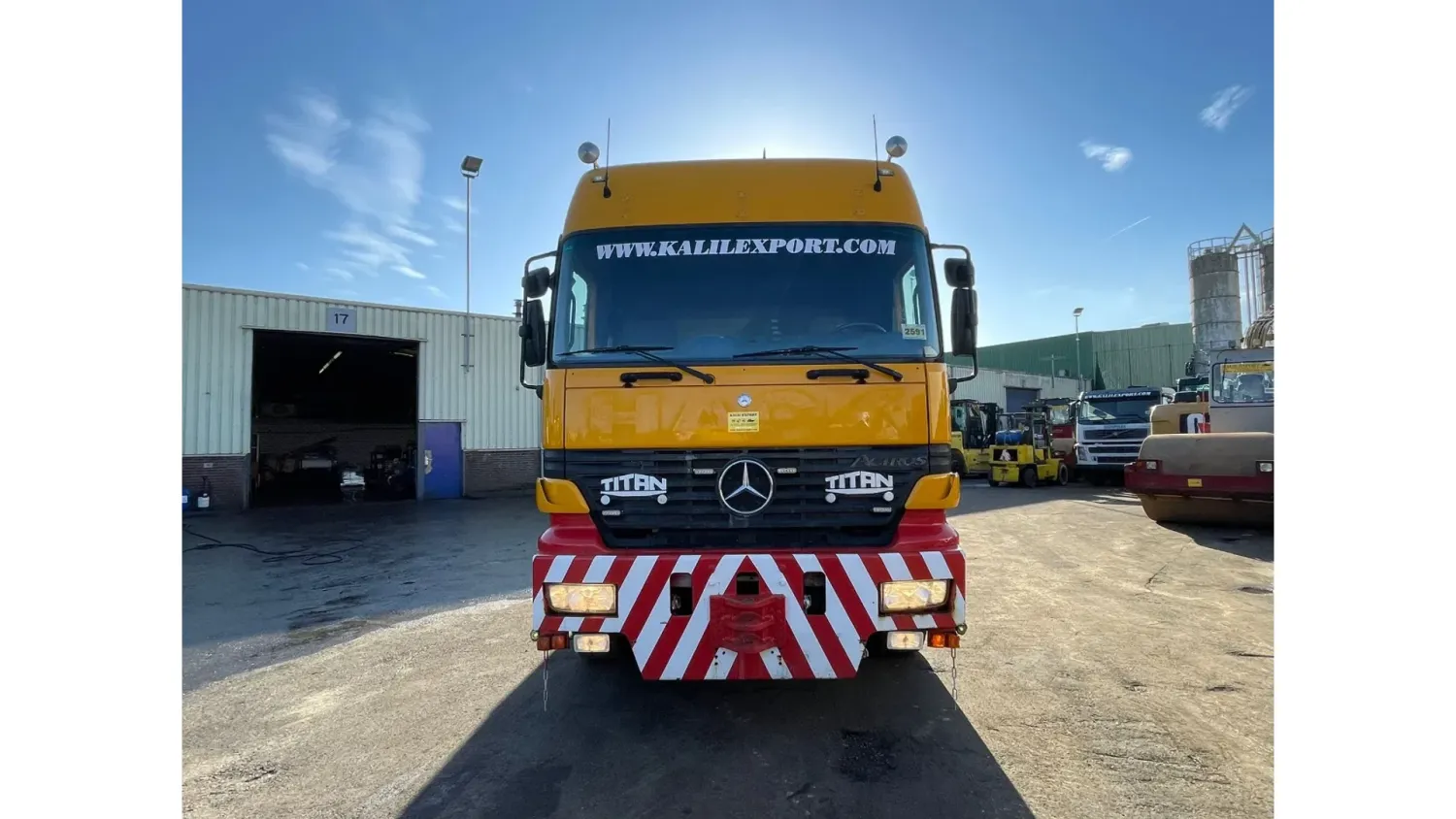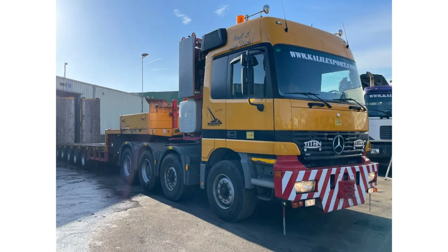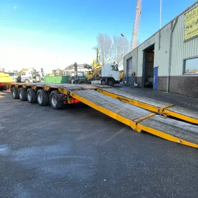 General information Bodywork: Standard tractor Year of construction: 1999 Reference number: 2591 Technical information Number of cylinders: 8 Transmission Transmission: ZF, Manual gearbox Axle configuration Suspension: leaf suspension Front axle: Max. axle load: 7500 kg; Steering Rear axle 1: Max. axle load: 6000 kg; Steering Rear axle 2: Double wheels; Max. axle load: 9000 kg; Reduction: hub reduction Rear axle 3: Double wheels; Max. axle load: 9000 kg; Reduction: hub reduction Condition General condition: good Technical condition: good Visual appearance: good Financial information VAT/margin: VAT not deductable (margin scheme) Additional information Please contact Sales Department (+31682062695, sales@kalilexport.com) for more information Mercedes-Benz 4153 Actros Titan Heavy Duty Tractor V8 Engine 530HP 8x4 Full Steel Suspension 12 Tyre's !!!ONLY 195.000KM!!! Big Axle's German Truck +++ Goldhofer STZ-L5-54 Lowbed 5 Axle 4 Steering Axle's 20 Tyre's 70.000KG Loading Ramps German Registration Extendable We can ship this truck to all destinations FOR MORE INFO: WWW.KALILEXPORT.COM Sales Department : 00 31 6 82 06 26 95