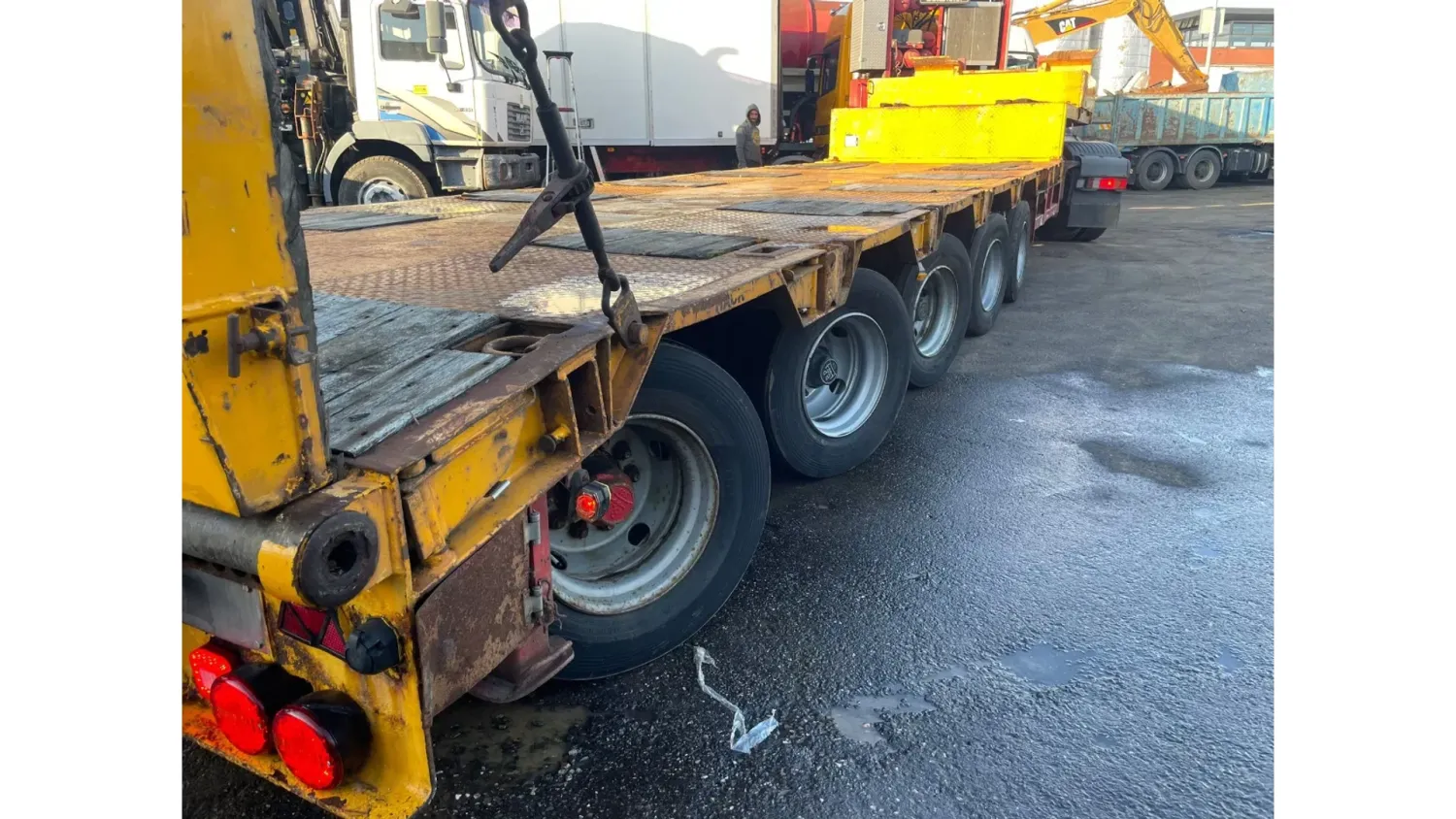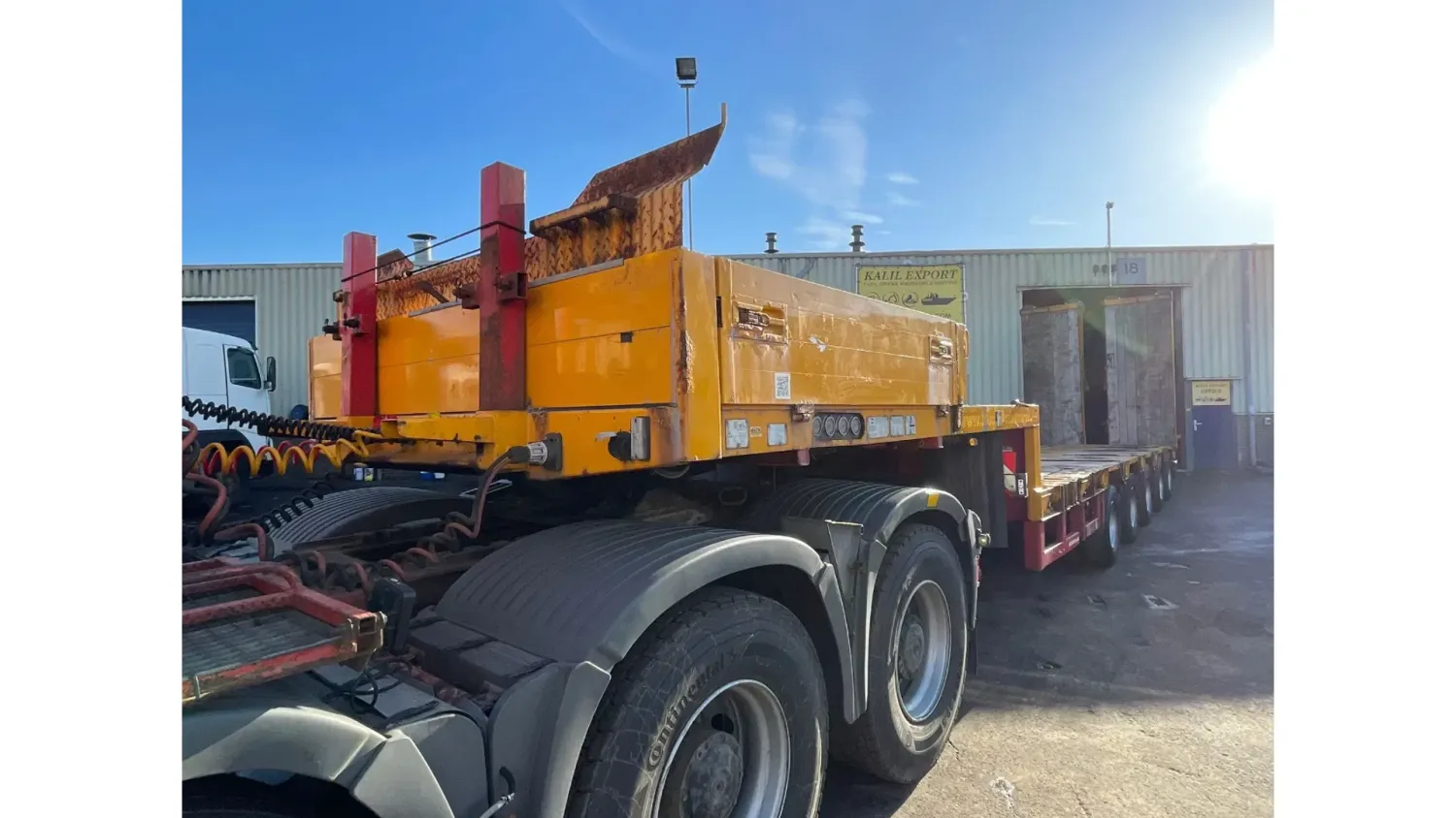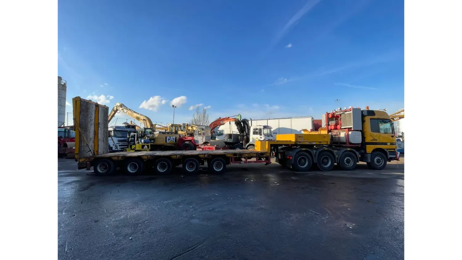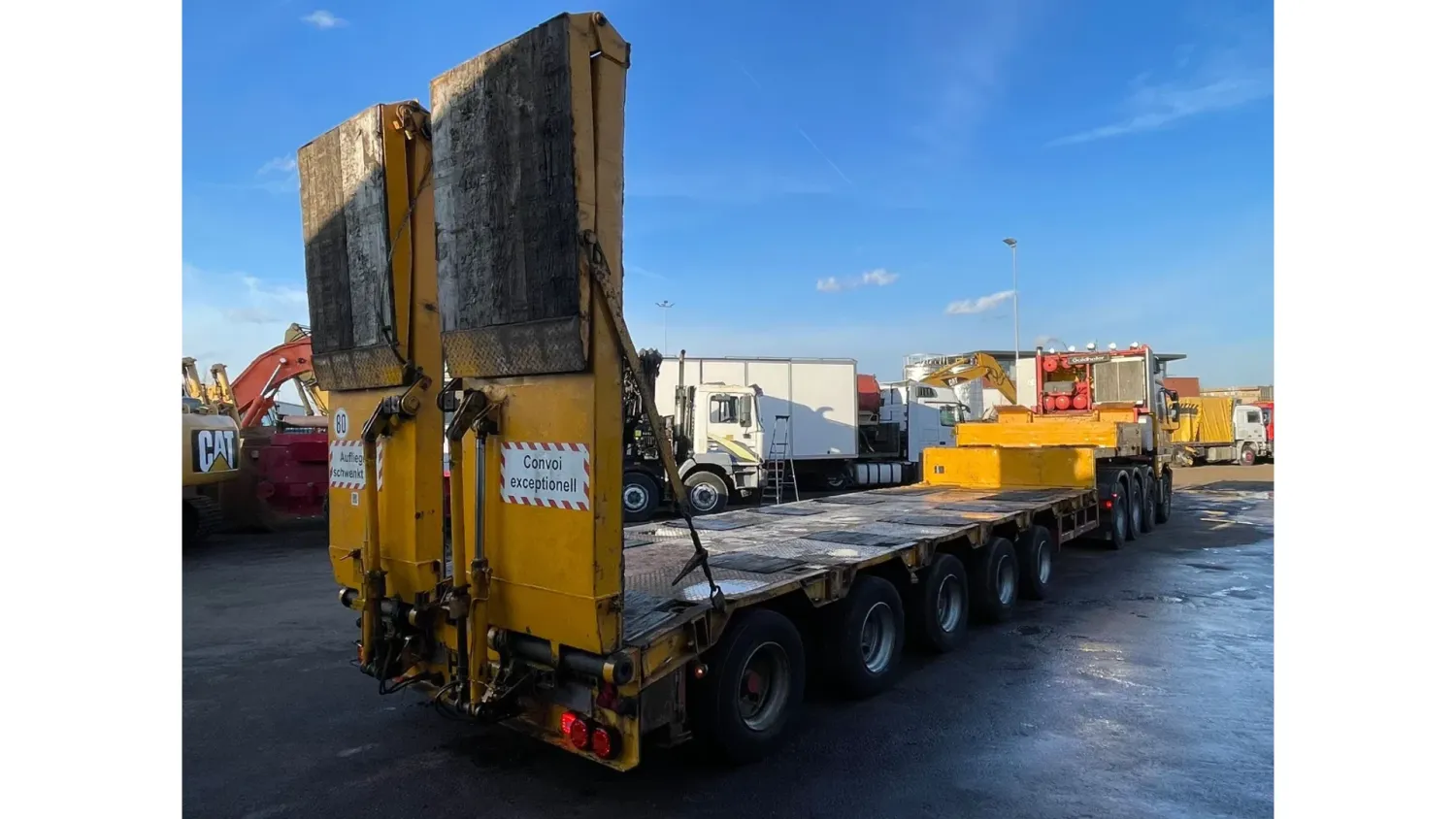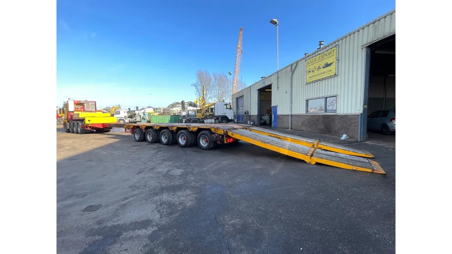 General information Bodywork: Standard tractor Year of construction: 1999 Reference number: 2591 Technical information Number of cylinders: 8 Transmission Transmission: ZF, Manual gearbox Axle configuration Suspension: leaf suspension Front axle: Max. axle load: 7500 kg; Steering Rear axle 1: Max. axle load: 6000 kg; Steering Rear axle 2: Double wheels; Max. axle load: 9000 kg; Reduction: hub reduction Rear axle 3: Double wheels; Max. axle load: 9000 kg; Reduction: hub reduction Condition General condition: good Technical condition: good Visual appearance: good Financial information VAT/margin: VAT not deductable (margin scheme) Additional information Please contact Sales Department (+31682062695, sales@kalilexport.com) for more information Mercedes-Benz 4153 Actros Titan Heavy Duty Tractor V8 Engine 530HP 8x4 Full Steel Suspension 12 Tyre's !!!ONLY 195.000KM!!! Big Axle's German Truck +++ Goldhofer STZ-L5-54 Lowbed 5 Axle 4 Steering Axle's 20 Tyre's 70.000KG Loading Ramps German Registration Extendable We can ship this truck to all destinations FOR MORE INFO: WWW.KALILEXPORT.COM Sales Department : 00 31 6 82 06 26 95