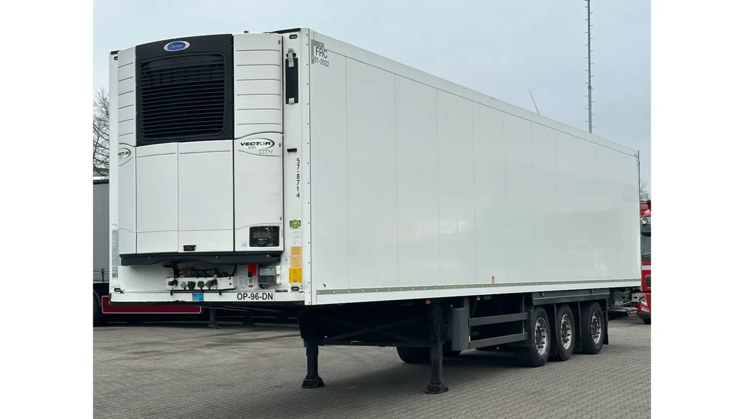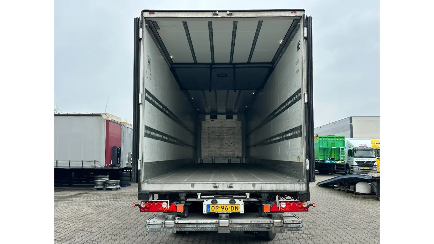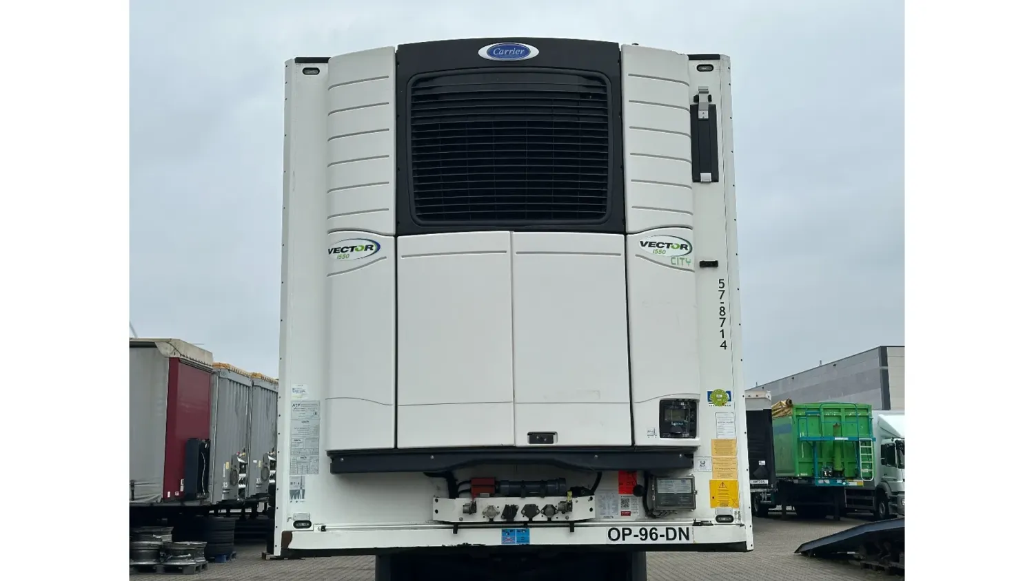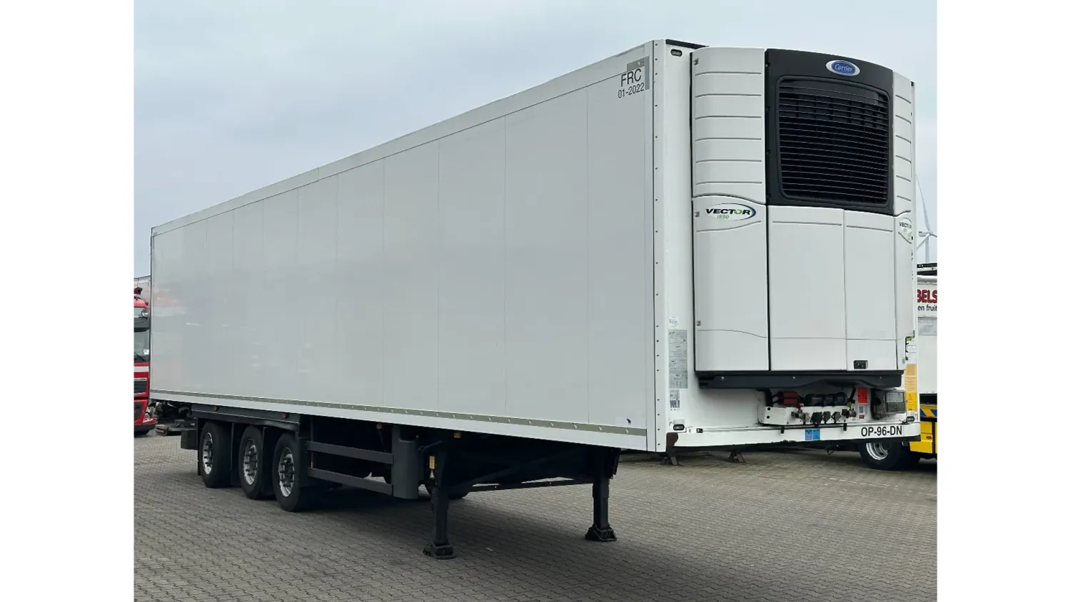 General information Year of construction: 2016 Reference number: 31708 Registration number: OP-96-DN Axle configuration Tyre size: 385/55 R22.5 Make axles: SAF Rear axle 1: Max. axle load: 9000 kg Rear axle 2: Lift axle; Max. axle load: 9000 kg Rear axle 3: Max. axle load: 9000 kg; Steering Measures and weights Empty weight: 8.190 kg GVW: 42.000 kg Wheelbase: 898 cm Functional Dimensions of cargo space: 1330 x 250 x 260 cm Tail lift: DHOLLANDIA DHSM.30, slider lift, 3000 kg Cooling: -30 °C to 35 °C Make of bodywork: CARRIER Vector 1550 Cooling engine: diesel and electric (7710 operating hours diesel) Maintenance APK (MOT): tested until 03/2027 Condition General condition: good Technical condition: good Visual appearance: good Other information Cool unit make: Carrier Cool unit brand: Carrier