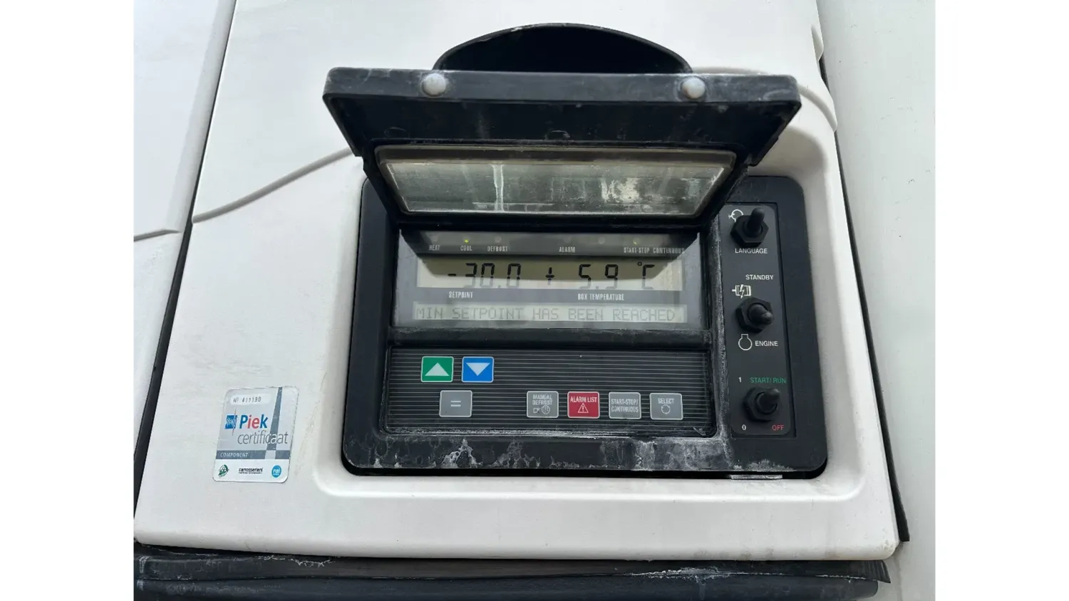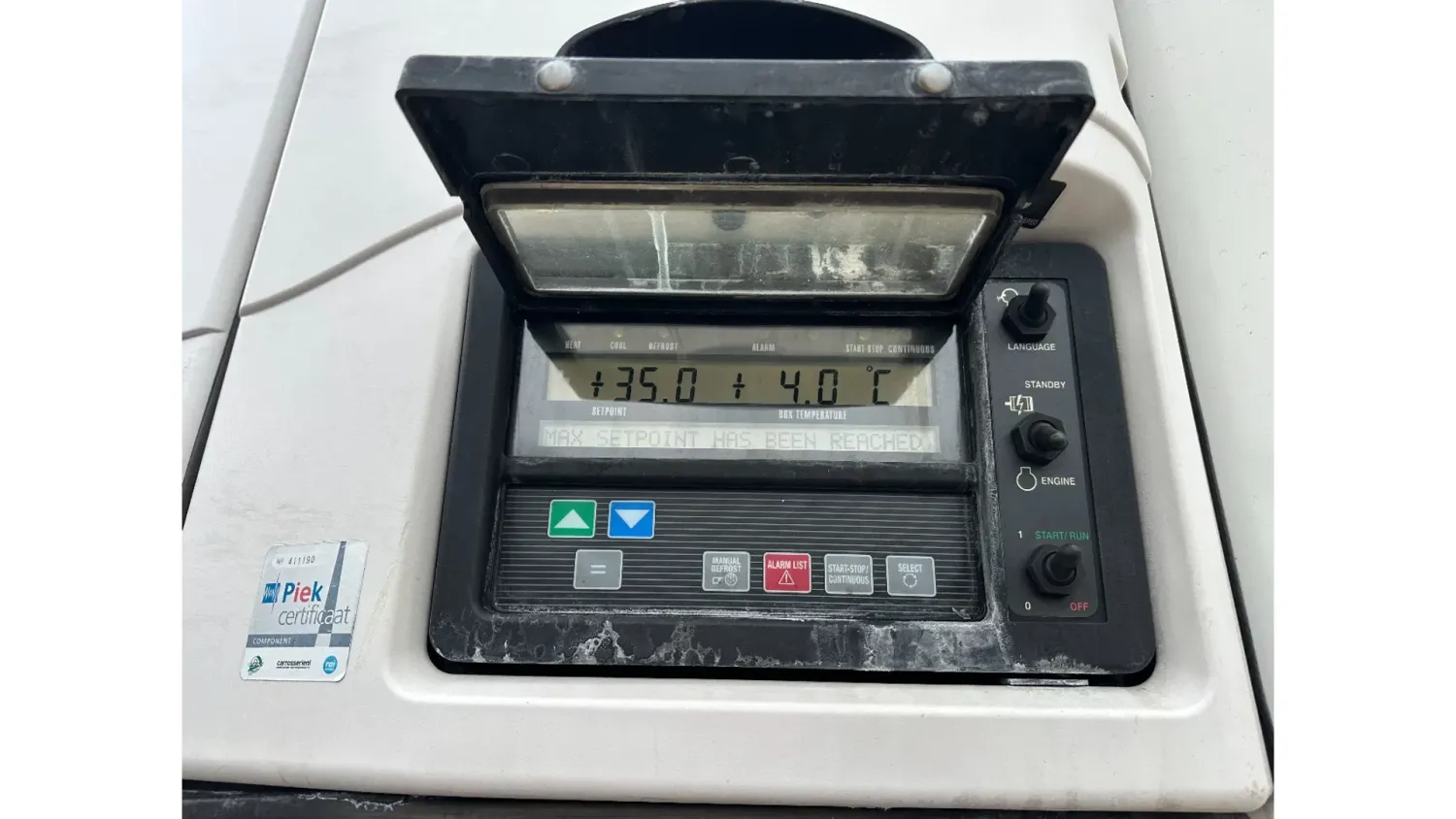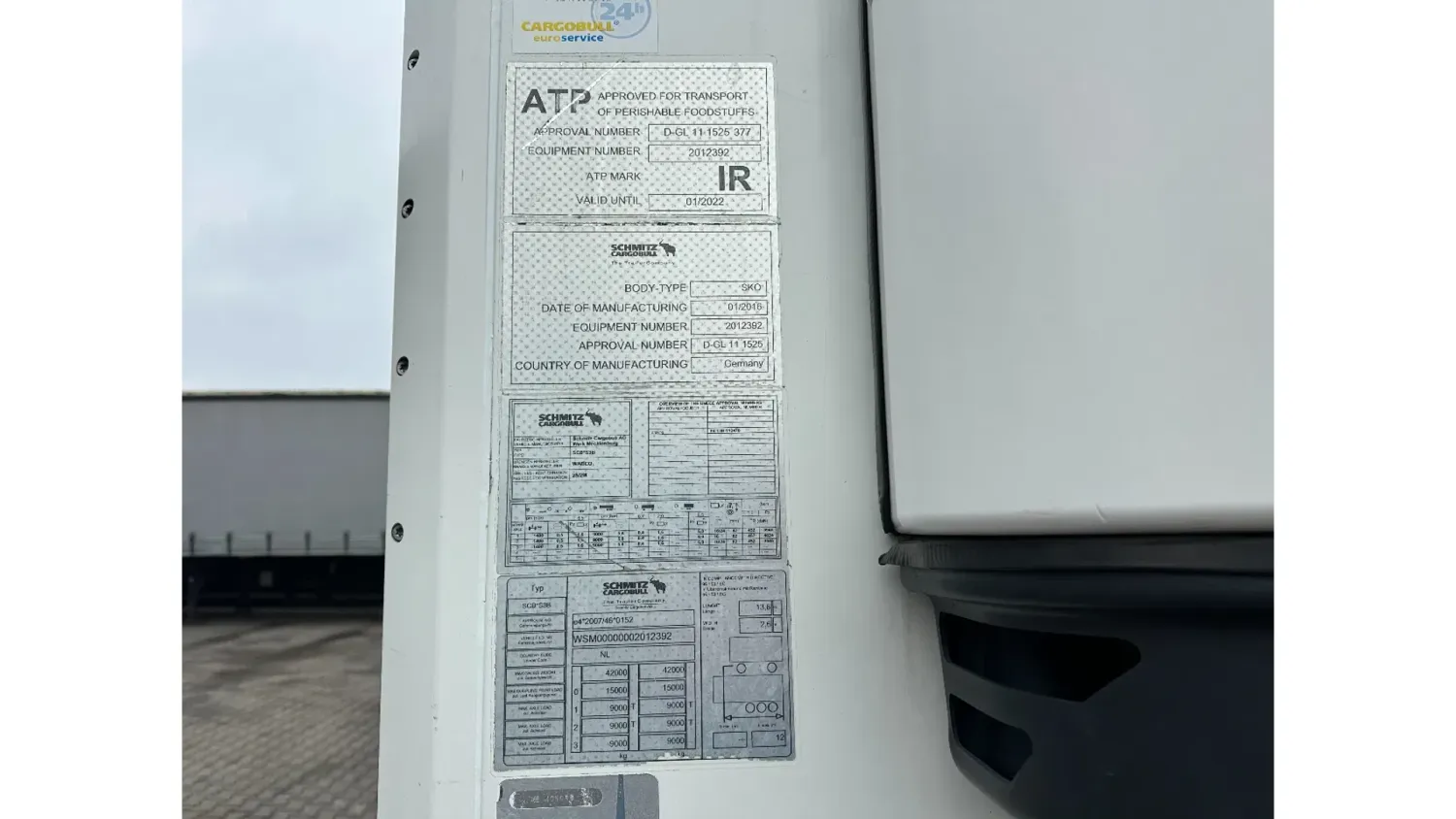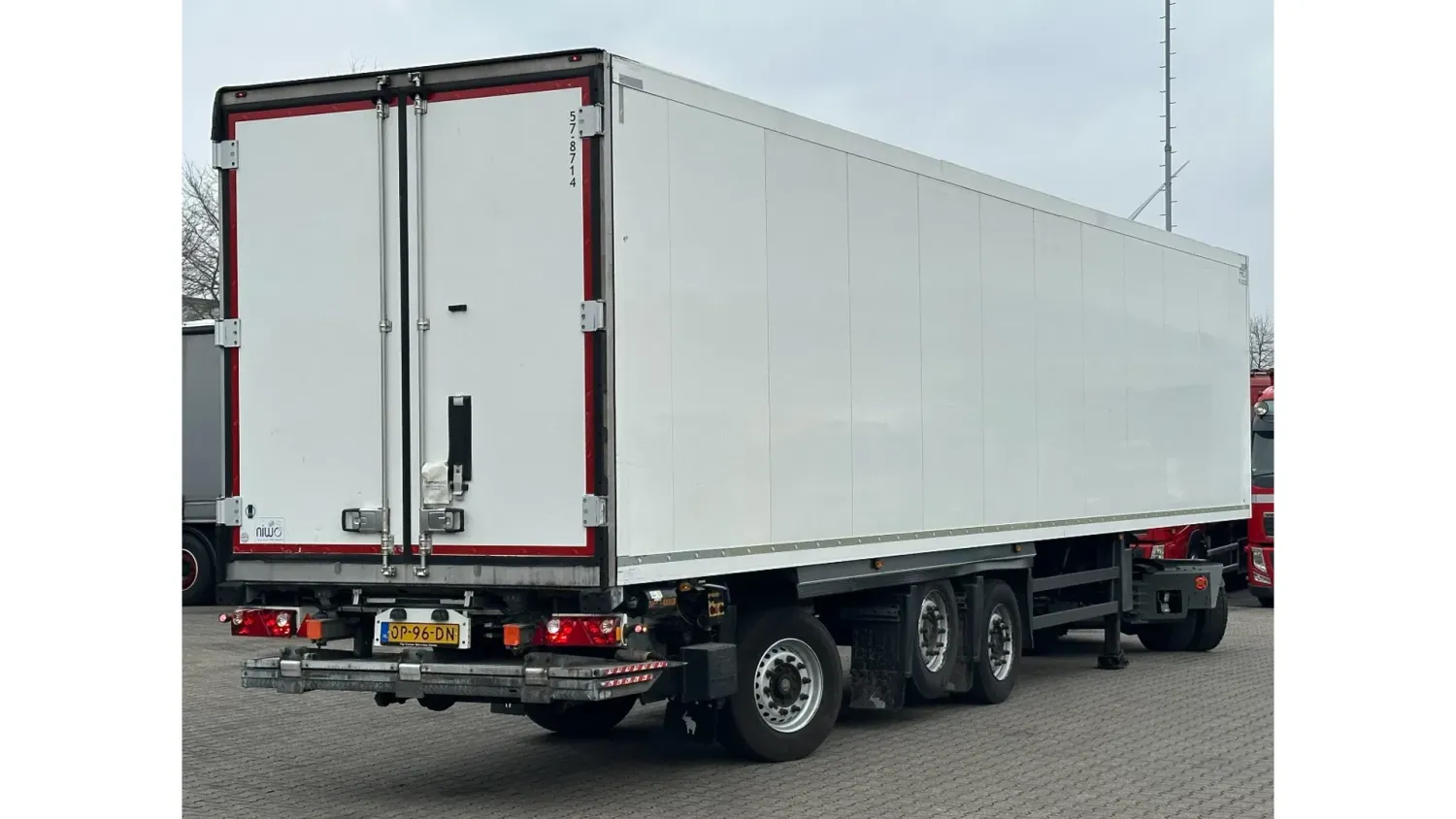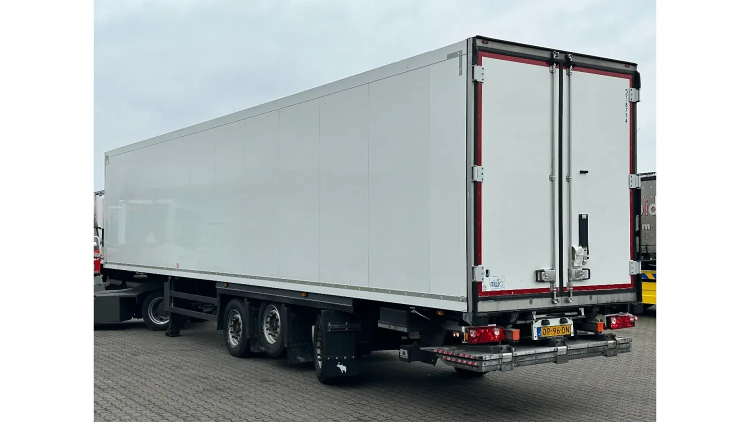 General information Year of construction: 2016 Reference number: 31708 Registration number: OP-96-DN Axle configuration Tyre size: 385/55 R22.5 Make axles: SAF Rear axle 1: Max. axle load: 9000 kg Rear axle 2: Lift axle; Max. axle load: 9000 kg Rear axle 3: Max. axle load: 9000 kg; Steering Measures and weights Empty weight: 8.190 kg GVW: 42.000 kg Wheelbase: 898 cm Functional Dimensions of cargo space: 1330 x 250 x 260 cm Tail lift: DHOLLANDIA DHSM.30, slider lift, 3000 kg Cooling: -30 °C to 35 °C Make of bodywork: CARRIER Vector 1550 Cooling engine: diesel and electric (7710 operating hours diesel) Maintenance APK (MOT): tested until 03/2027 Condition General condition: good Technical condition: good Visual appearance: good Other information Cool unit make: Carrier Cool unit brand: Carrier